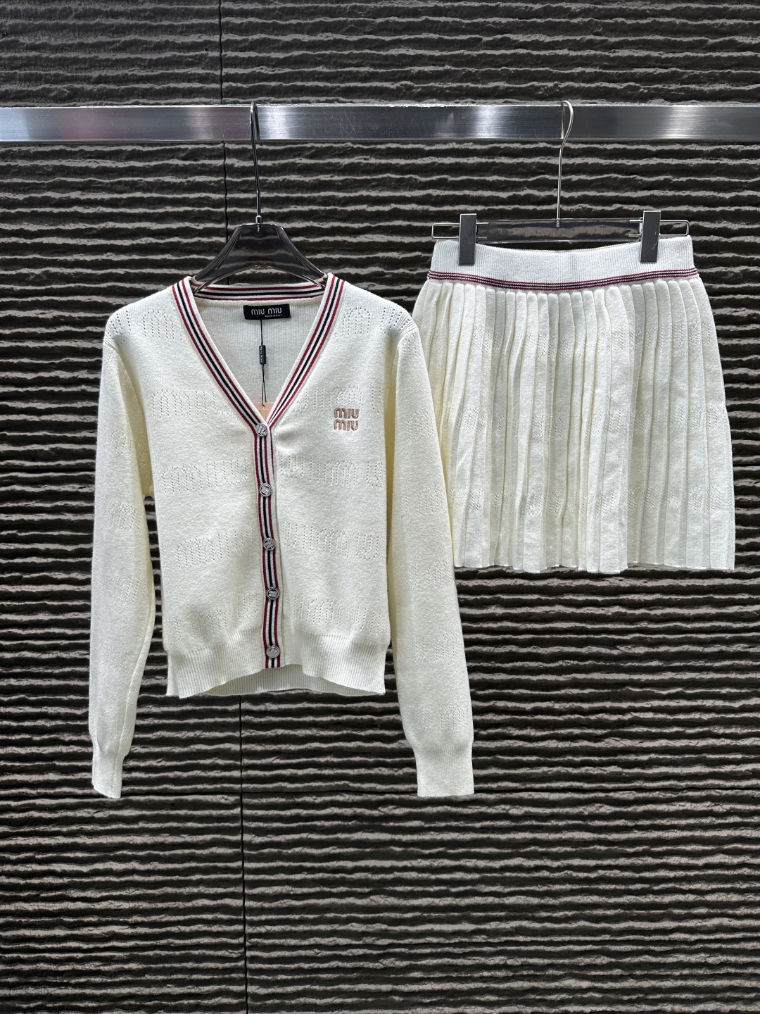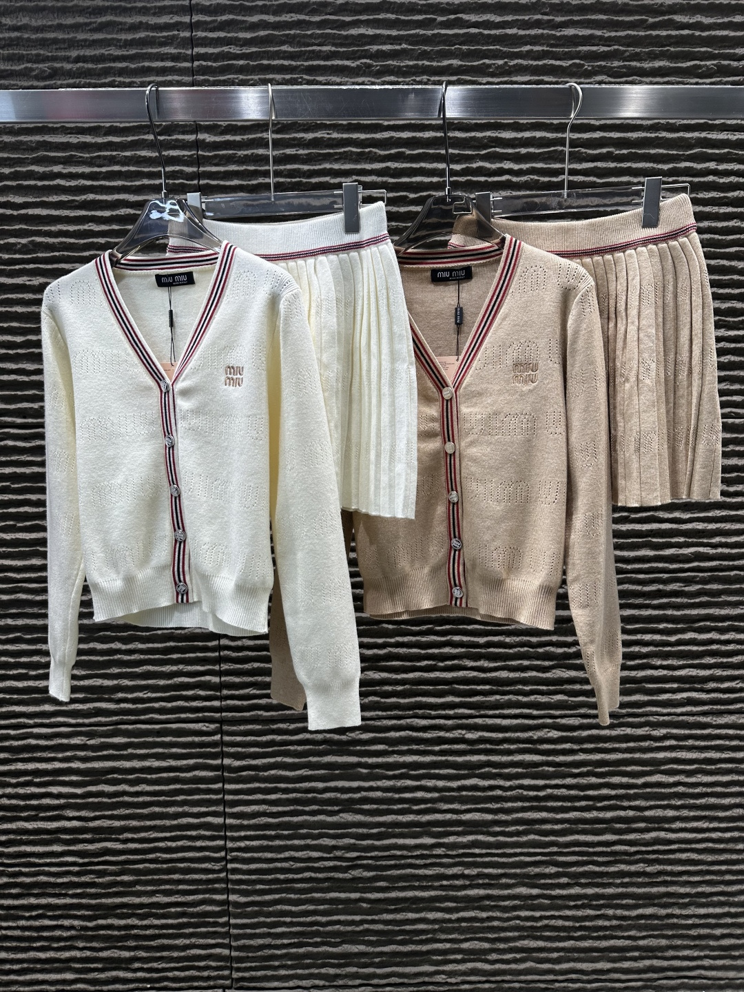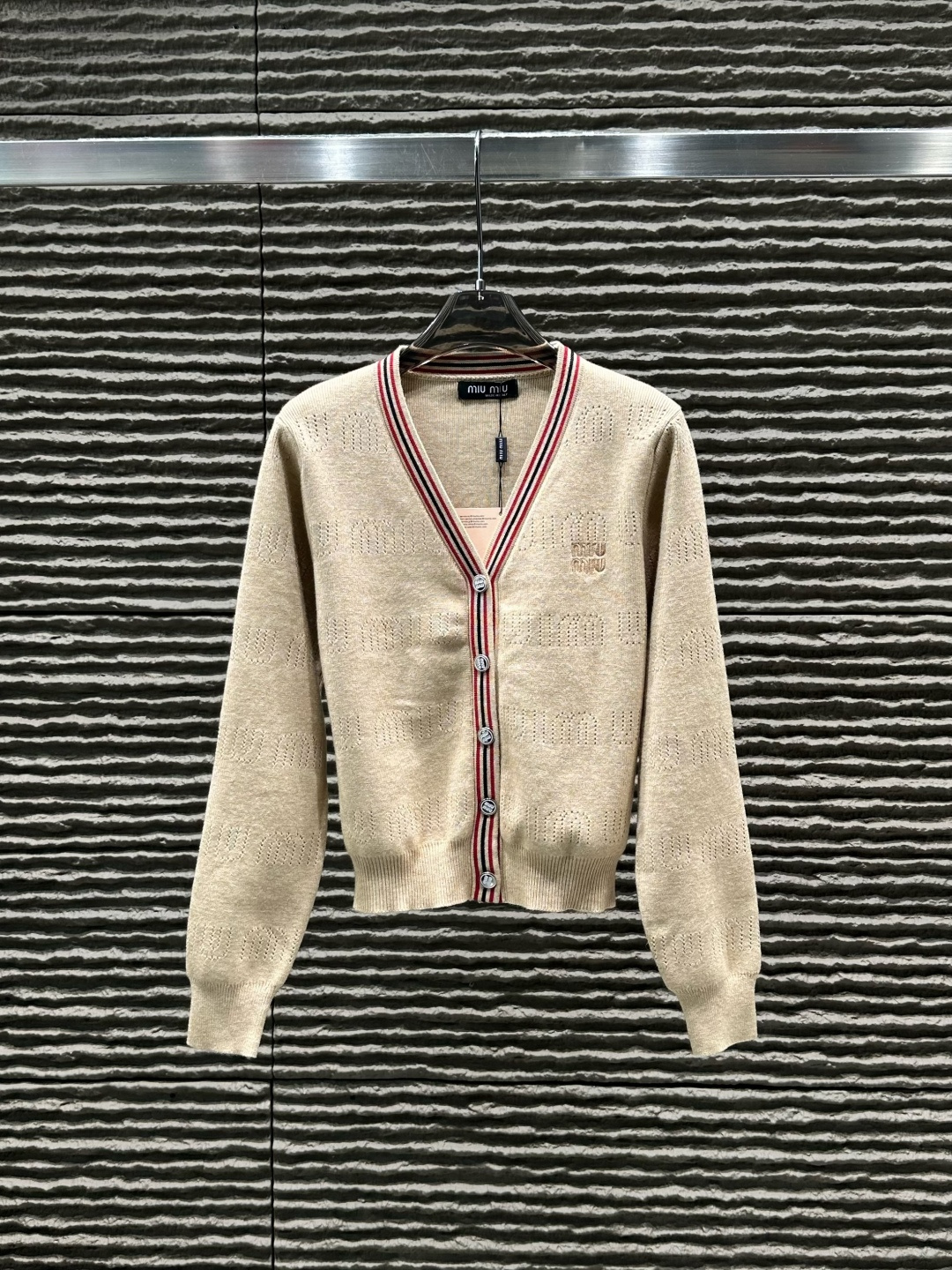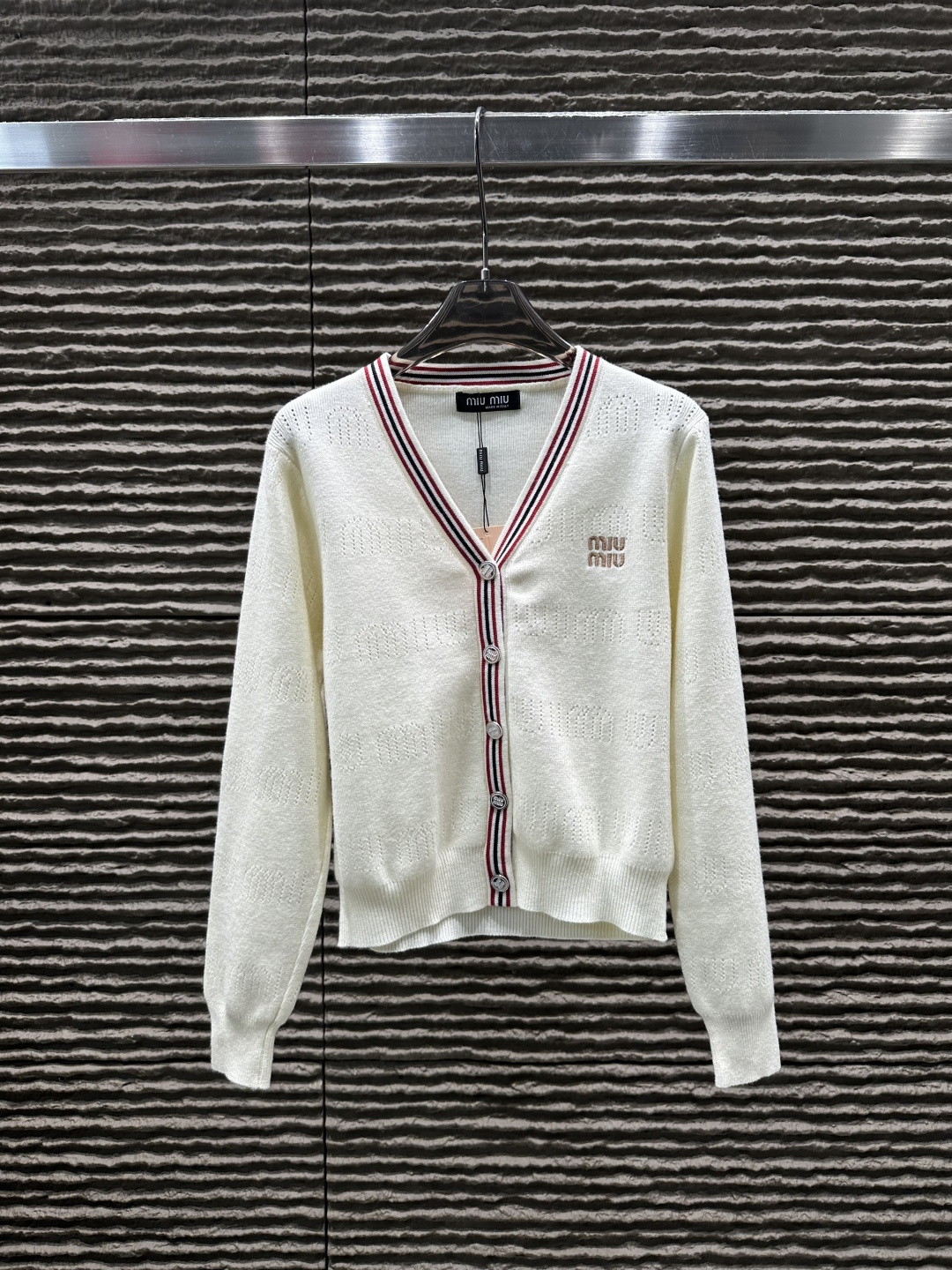 這款衣服是AAAAA 1:1 質量(非常棒). 使用了和原版一模一樣的材料. 商標部分也保持了和繆繆/Miu Miu一樣. 圖片拍攝是實物衣服拍攝, 您所收到的實物保證和我們圖片一模一樣.
