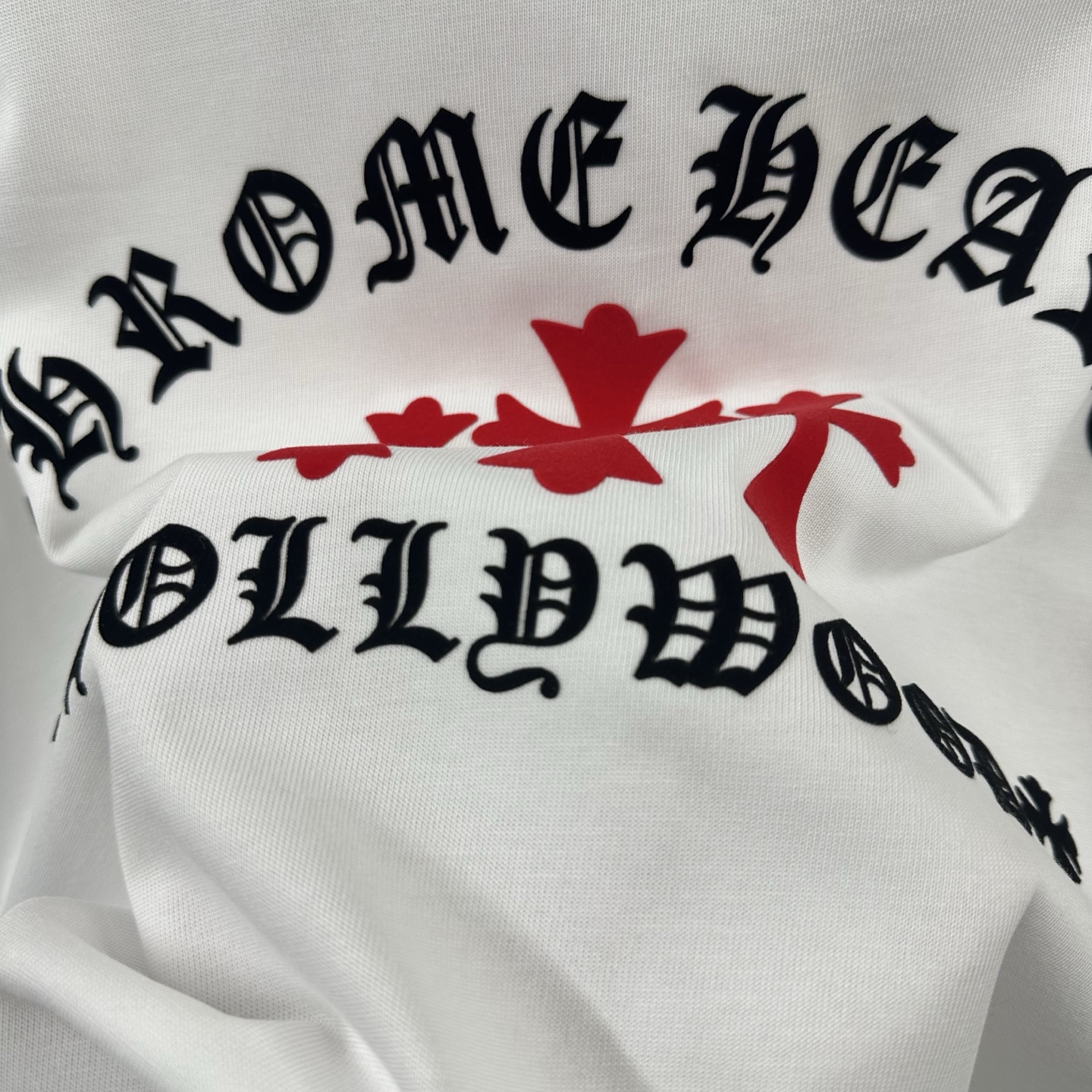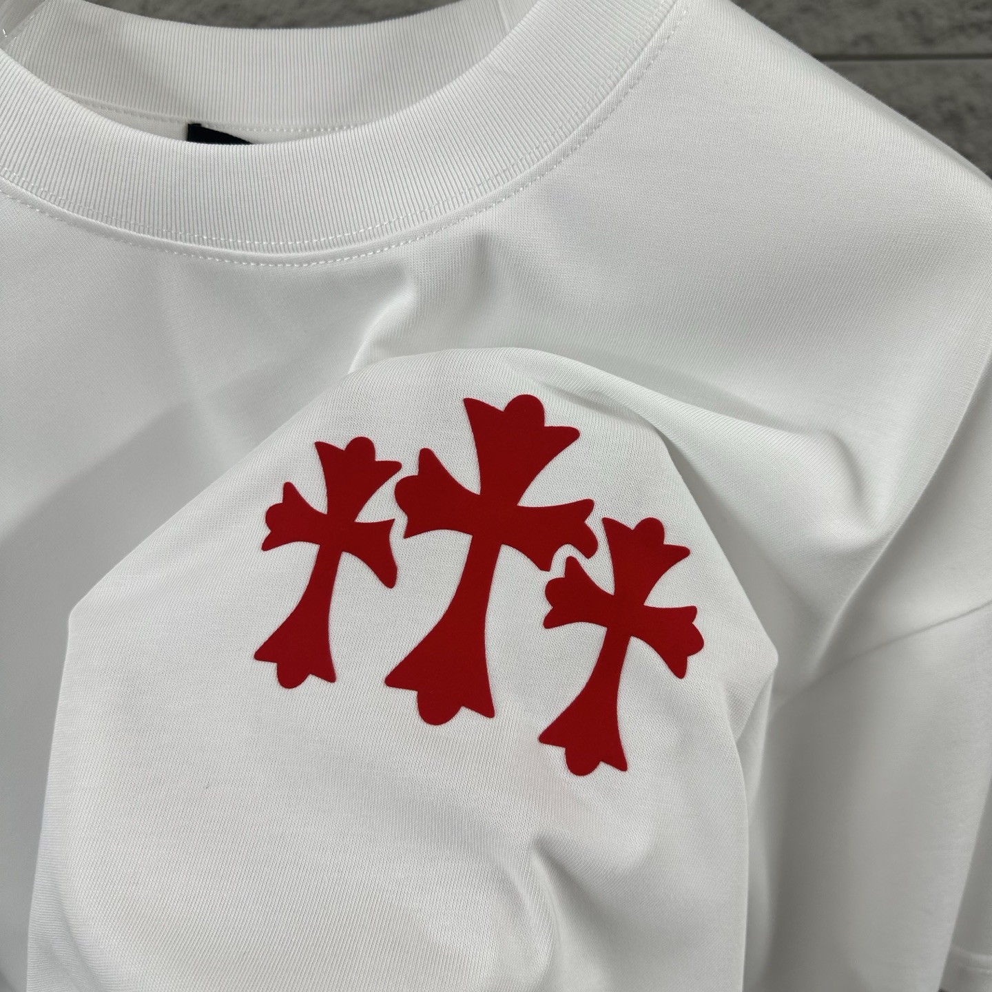 這款衣服是AAAAA 1:1 質量(非常棒). 使用了和原版一模一樣的材料. 商標部分也保持了和鉻心/Chrome Hearts一樣. 圖片拍攝是實物衣服拍攝, 您所收到的實物保證和我們圖片一模一樣.