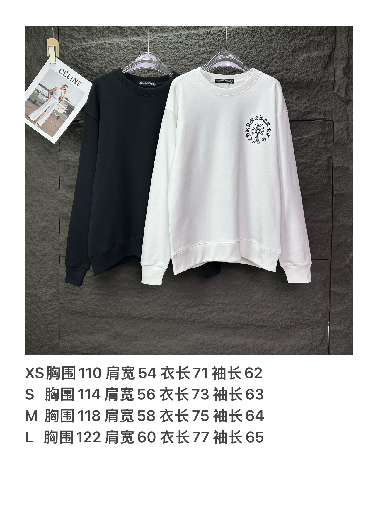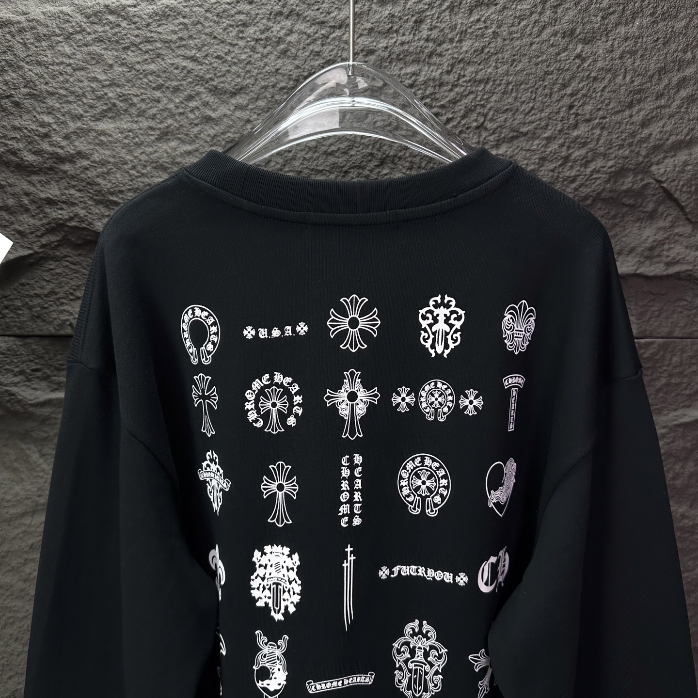 這款衣服是AAAAA 1:1 質量(非常棒). 使用了和原版一模一樣的材料. 商標部分也保持了和鉻心/Chrome Hearts一樣. 圖片拍攝是實物衣服拍攝, 您所收到的實物保證和我們圖片一模一樣.