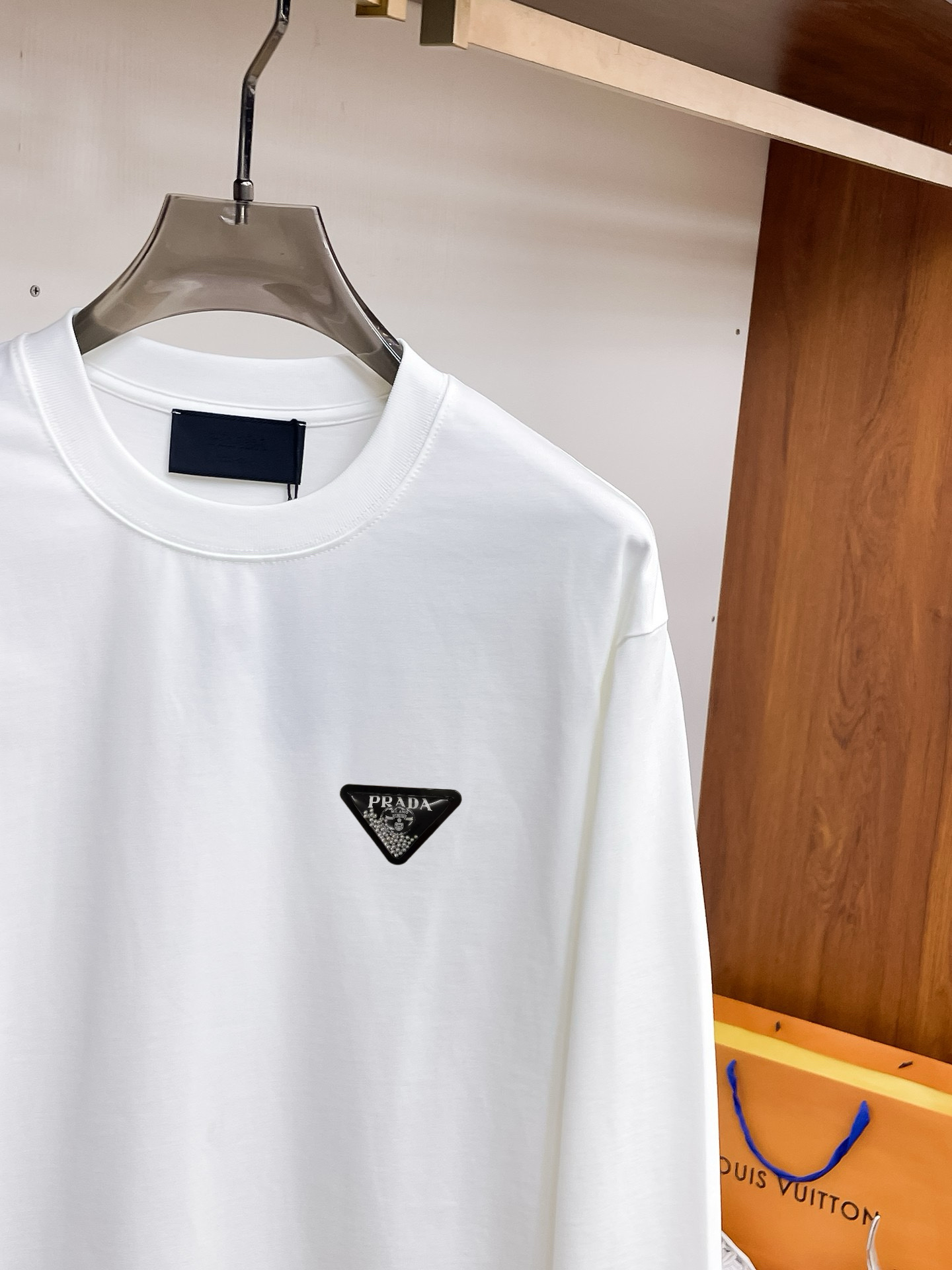 這款衣服是AAAAA 1:1 質量(非常棒). 使用了和原版一模一樣的材料. 商標部分也保持了和普拉達/Prada一樣. 圖片拍攝是實物衣服拍攝, 您所收到的實物保證和我們圖片一模一樣.