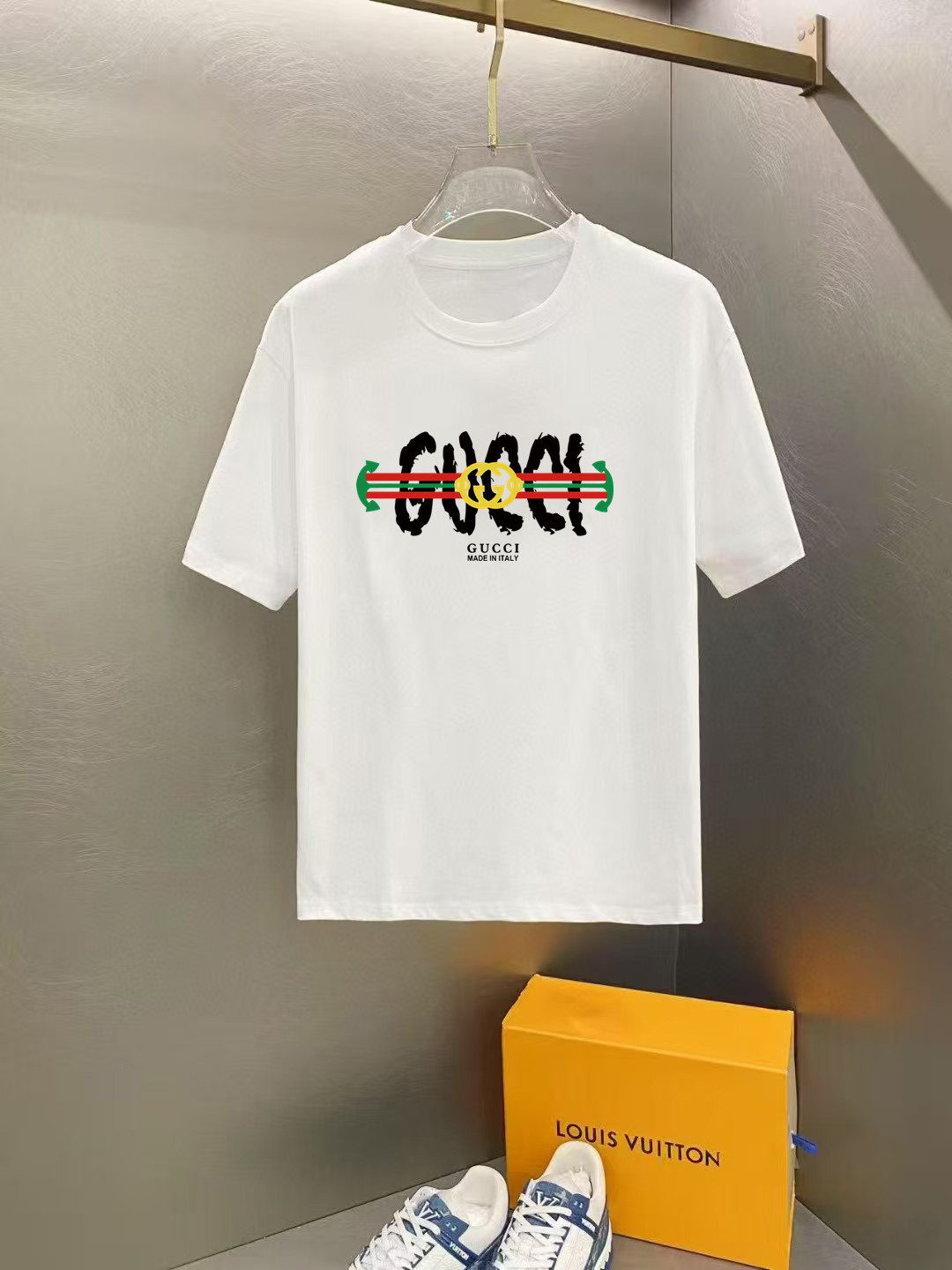 這款衣服是AAAAA 1:1 質量(非常棒). 使用了和原版一模一樣的材料. 商標部分也保持了和古奇/Gucci一樣. 圖片拍攝是實物衣服拍攝, 您所收到的實物保證和我們圖片一模一樣.