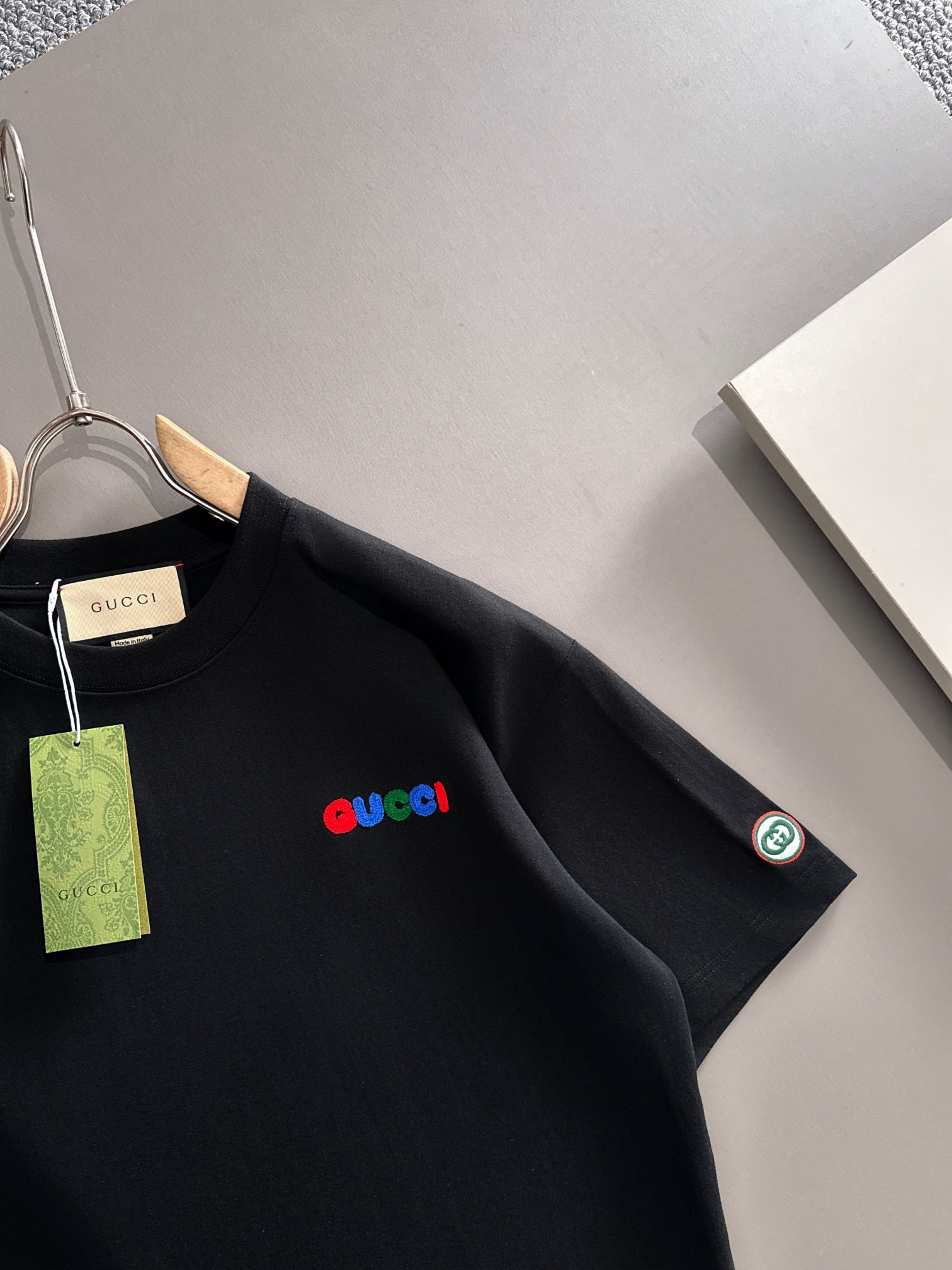 這款衣服是AAAAA 1:1 質量(非常棒). 使用了和原版一模一樣的材料. 商標部分也保持了和古奇/Gucci一樣. 圖片拍攝是實物衣服拍攝, 您所收到的實物保證和我們圖片一模一樣.