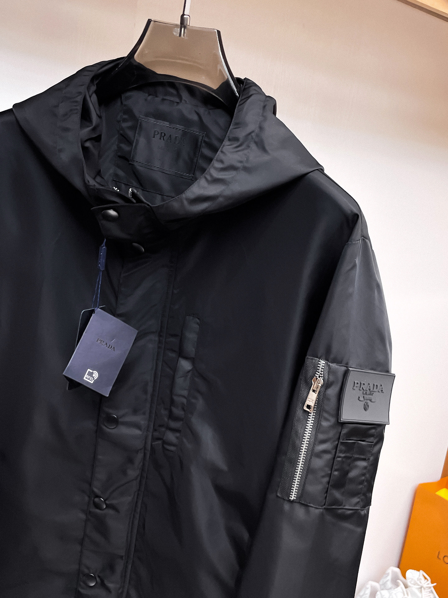 這款衣服是AAAAA 1:1 質量(非常棒). 使用了和原版一模一樣的材料. 商標部分也保持了和普拉達/Prada一樣. 圖片拍攝是實物衣服拍攝, 您所收到的實物保證和我們圖片一模一樣.