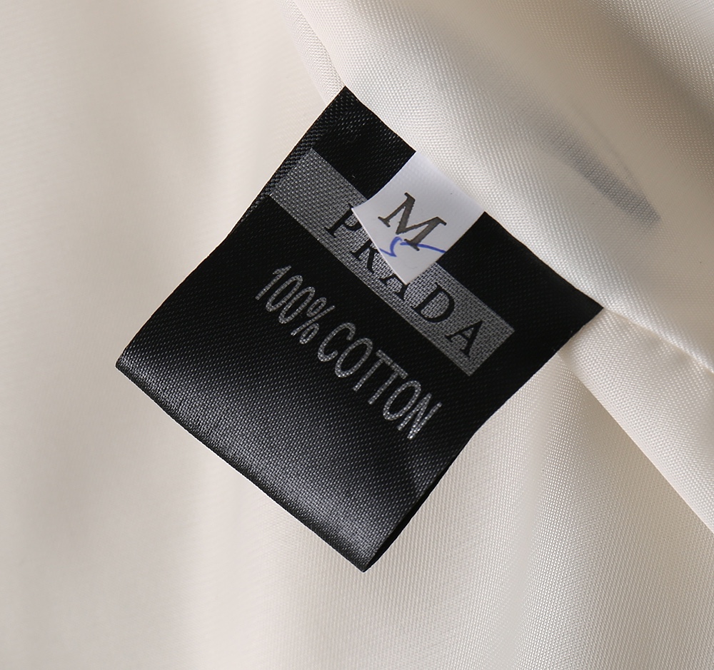 這款衣服是AAAAA 1:1 質量(非常棒). 使用了和原版一模一樣的材料. 商標部分也保持了和普拉達/Prada一樣. 圖片拍攝是實物衣服拍攝, 您所收到的實物保證和我們圖片一模一樣.