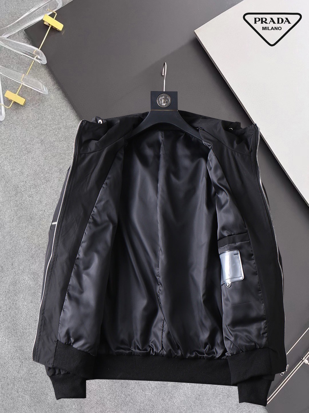 這款衣服是AAAAA 1:1 質量(非常棒). 使用了和原版一模一樣的材料. 商標部分也保持了和普拉達/Prada一樣. 圖片拍攝是實物衣服拍攝, 您所收到的實物保證和我們圖片一模一樣.