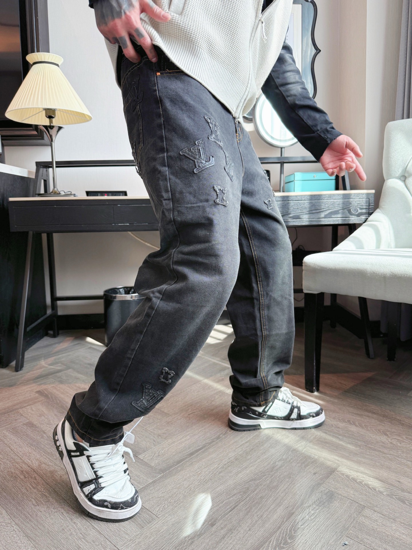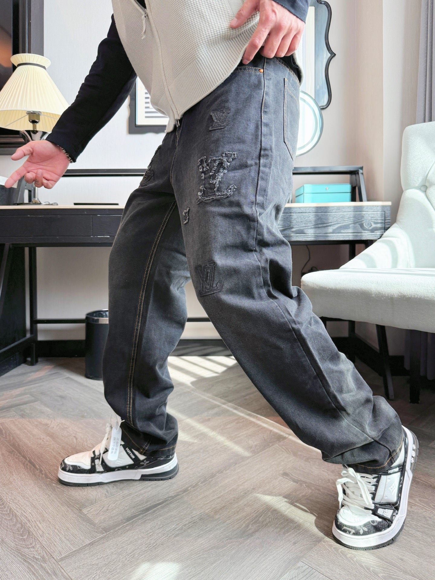 這款衣服是AAAAA 1:1 質量(非常棒). 使用了和原版一模一樣的材料. 商標部分也保持了和路易威登/Louis Vuitton一樣. 圖片拍攝是實物衣服拍攝, 您所收到的實物保證和我們圖片一模一樣.