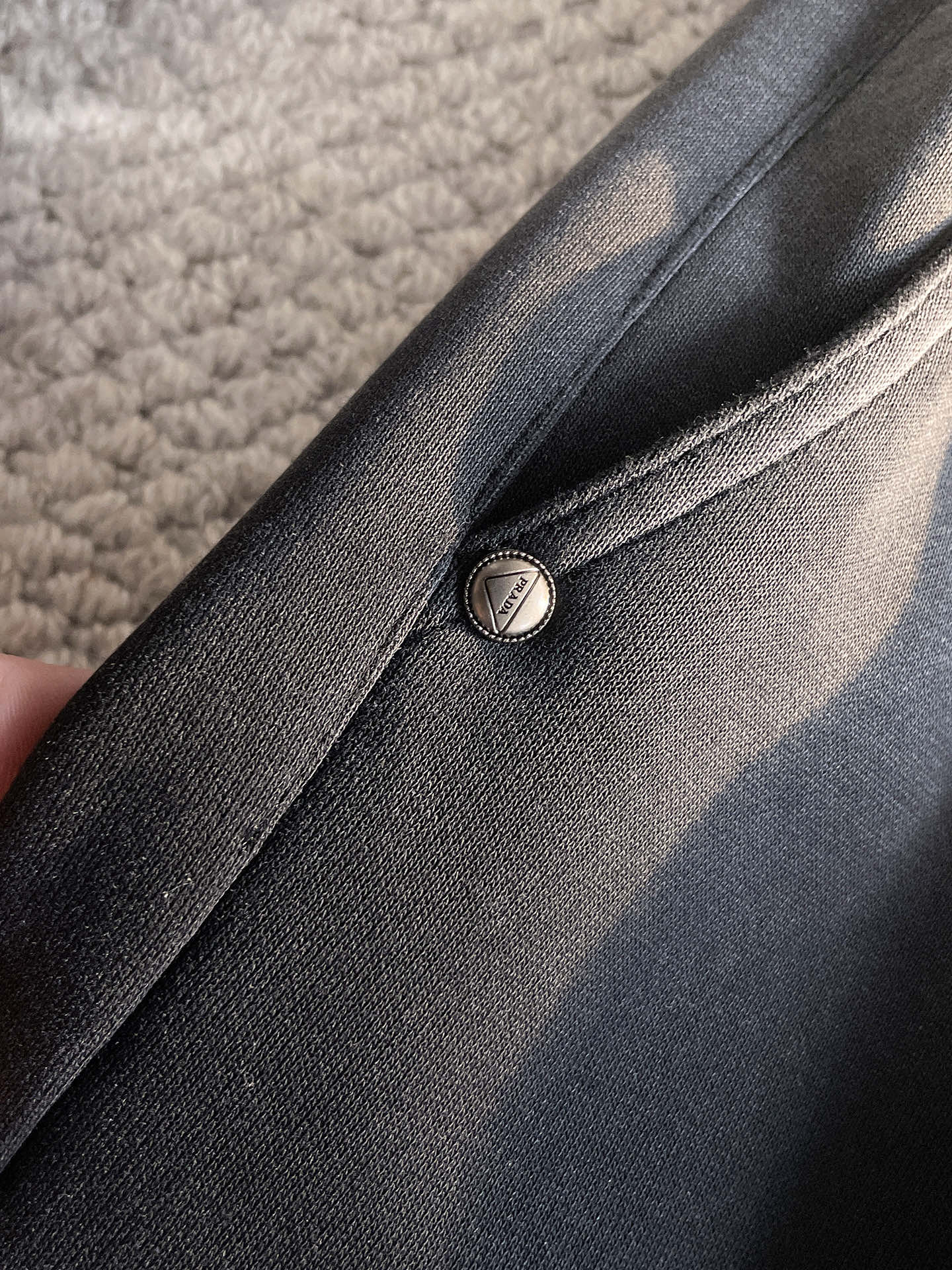這款衣服是AAAAA 1:1 質量(非常棒). 使用了和原版一模一樣的材料. 商標部分也保持了和普拉達/Prada一樣. 圖片拍攝是實物衣服拍攝, 您所收到的實物保證和我們圖片一模一樣.