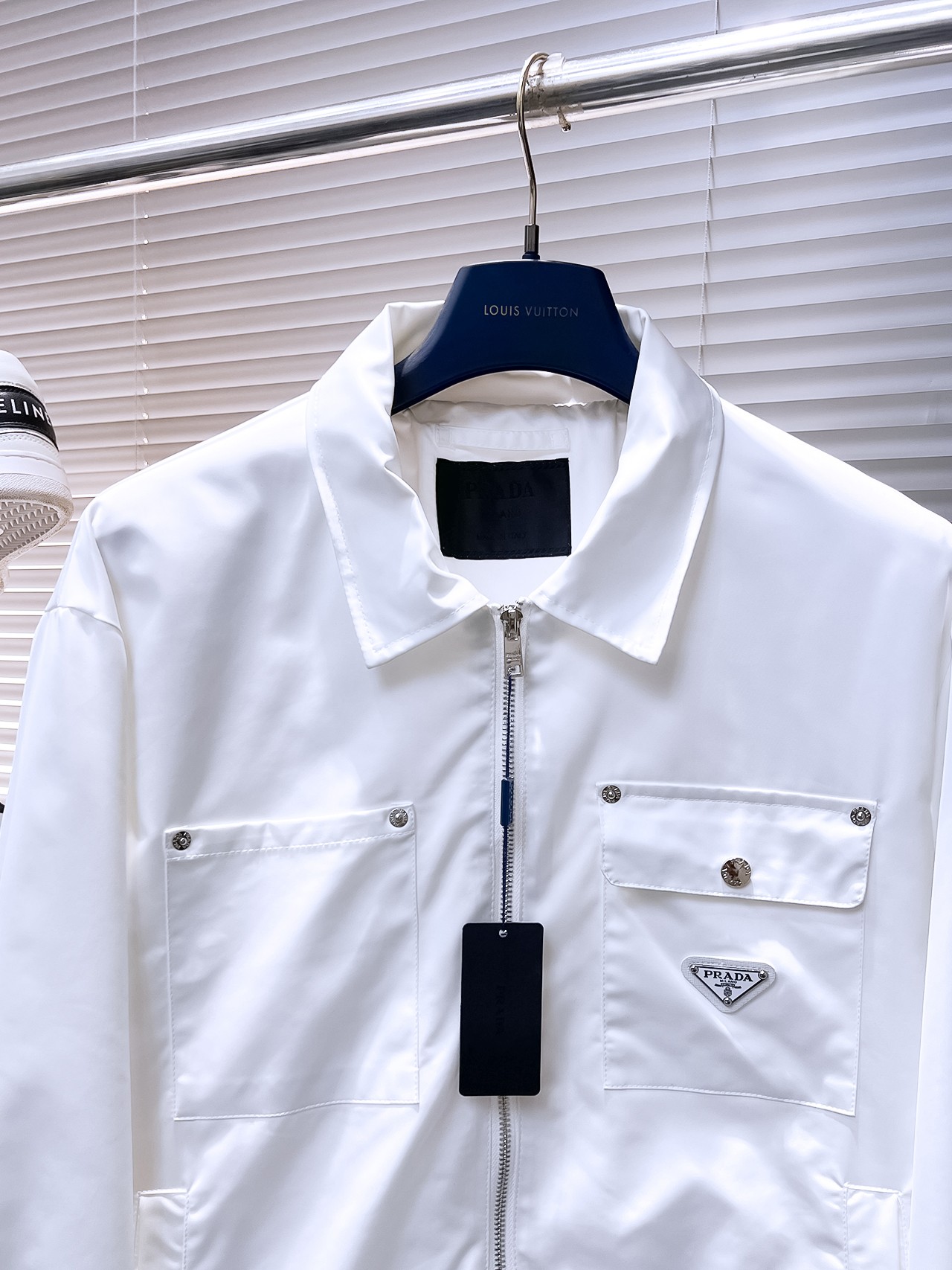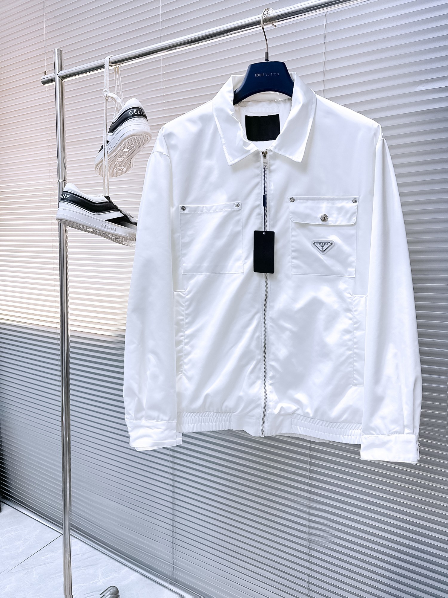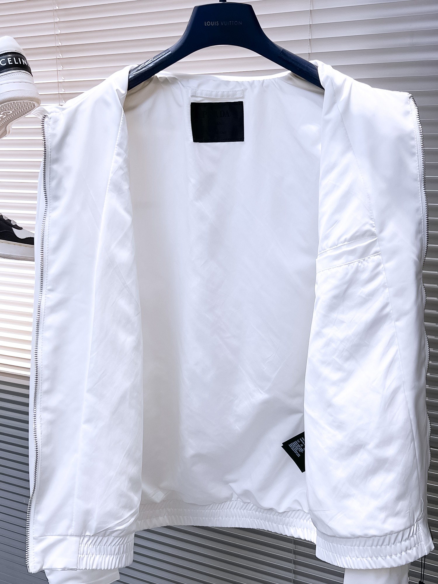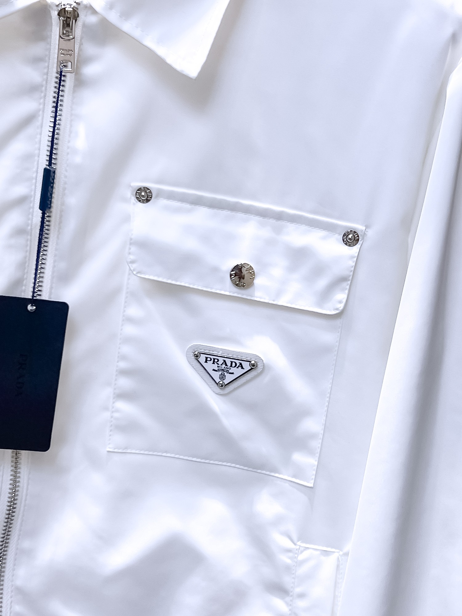這款衣服是AAAAA 1:1 質量(非常棒). 使用了和原版一模一樣的材料. 商標部分也保持了和普拉達/Prada一樣. 圖片拍攝是實物衣服拍攝, 您所收到的實物保證和我們圖片一模一樣.