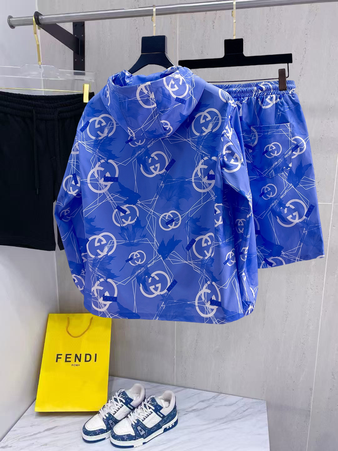 這款衣服是AAAAA 1:1 質量(非常棒). 使用了和原版一模一樣的材料. 商標部分也保持了和古奇/Gucci一樣. 圖片拍攝是實物衣服拍攝, 您所收到的實物保證和我們圖片一模一樣.