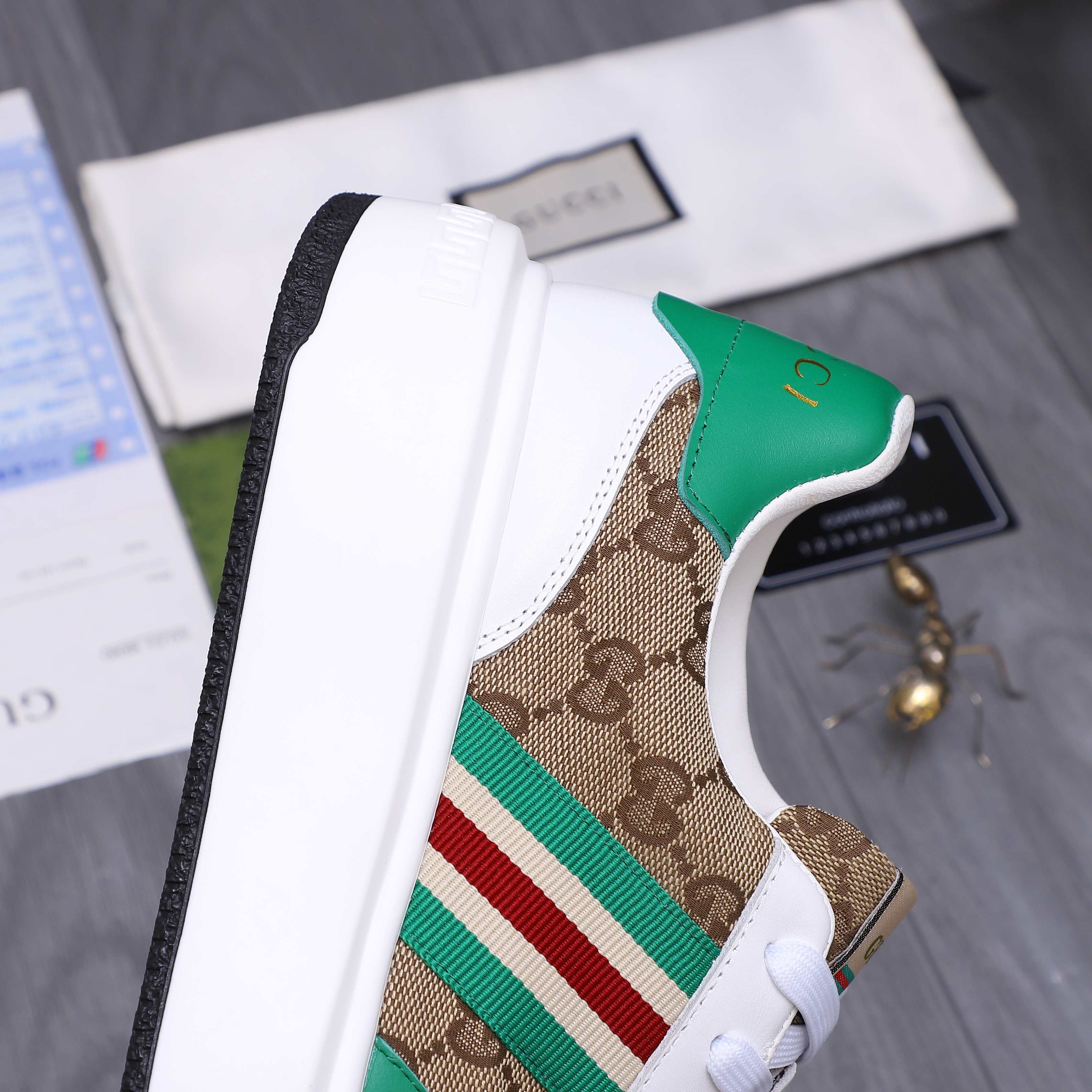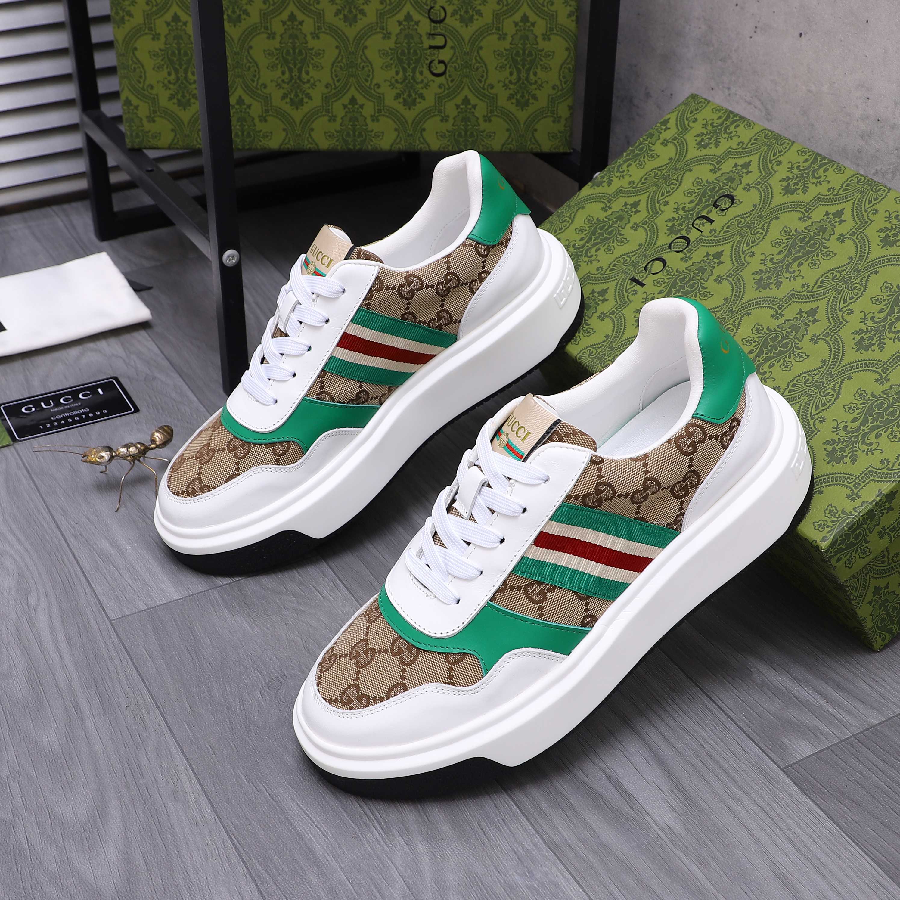 這款鞋子是AAAAA 1:1 質量(非常棒). 使用了和原版一模一樣的材料. 商標部分也保持了和古奇/Gucci一樣. 圖片拍攝是實物鞋子拍攝, 您所收到的實物保證和我們圖片一模一樣.