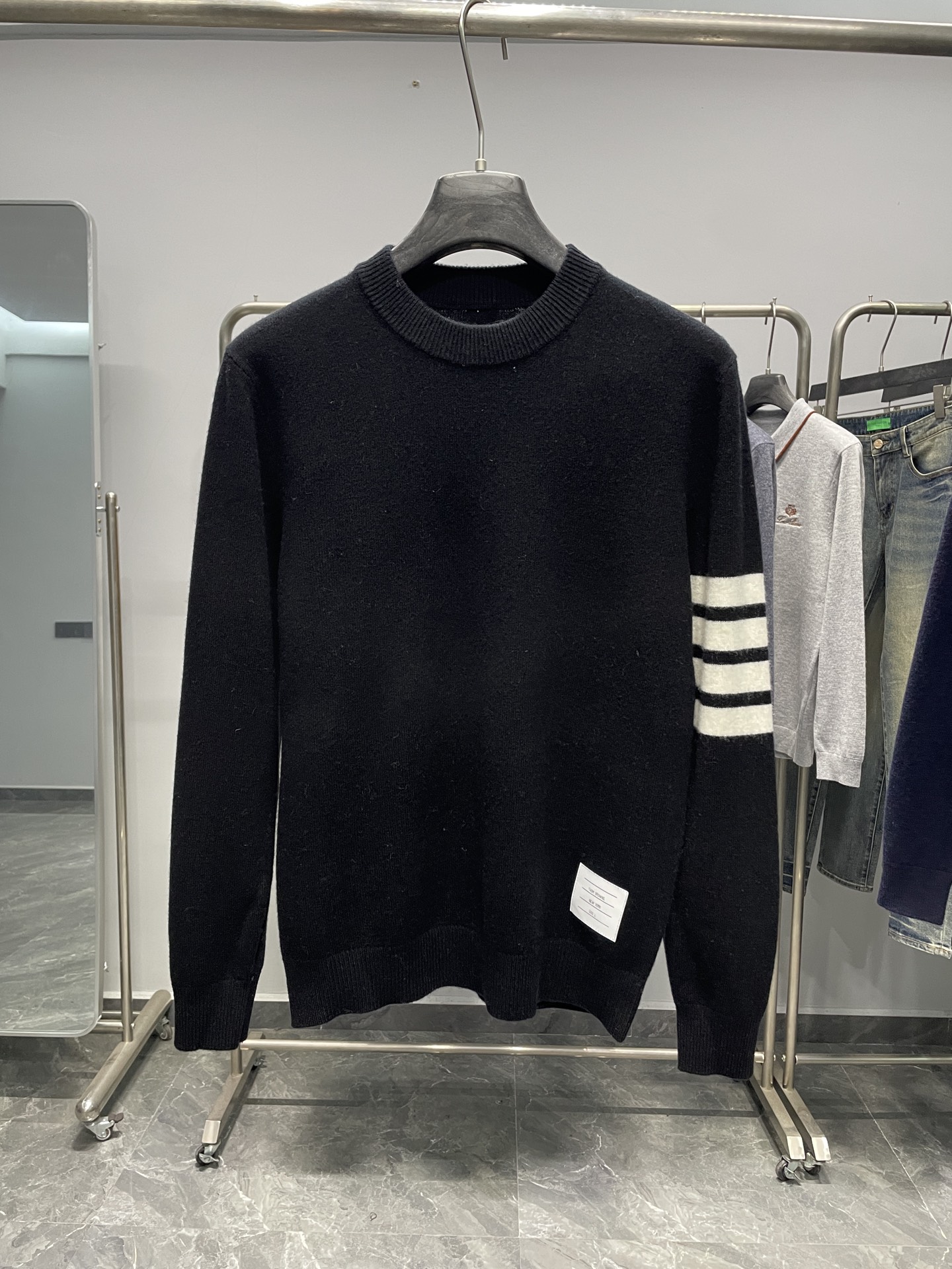 這款衣服是AAAAA 1:1 質量(非常棒). 使用了和原版一模一樣的材料. 商標部分也保持了和湯姆布朗/Thom Browne一樣. 圖片拍攝是實物衣服拍攝, 您所收到的實物保證和我們圖片一模一樣.