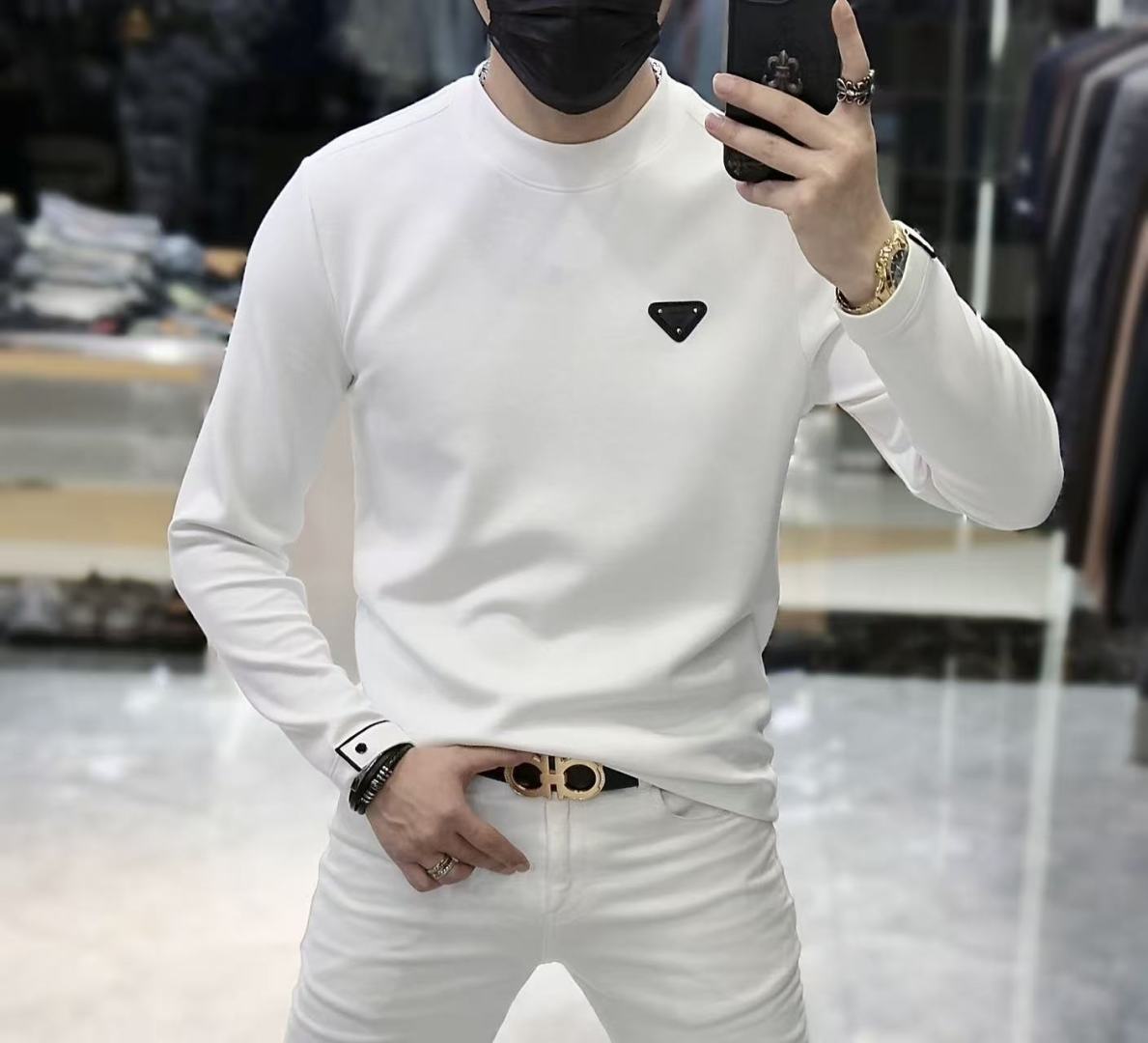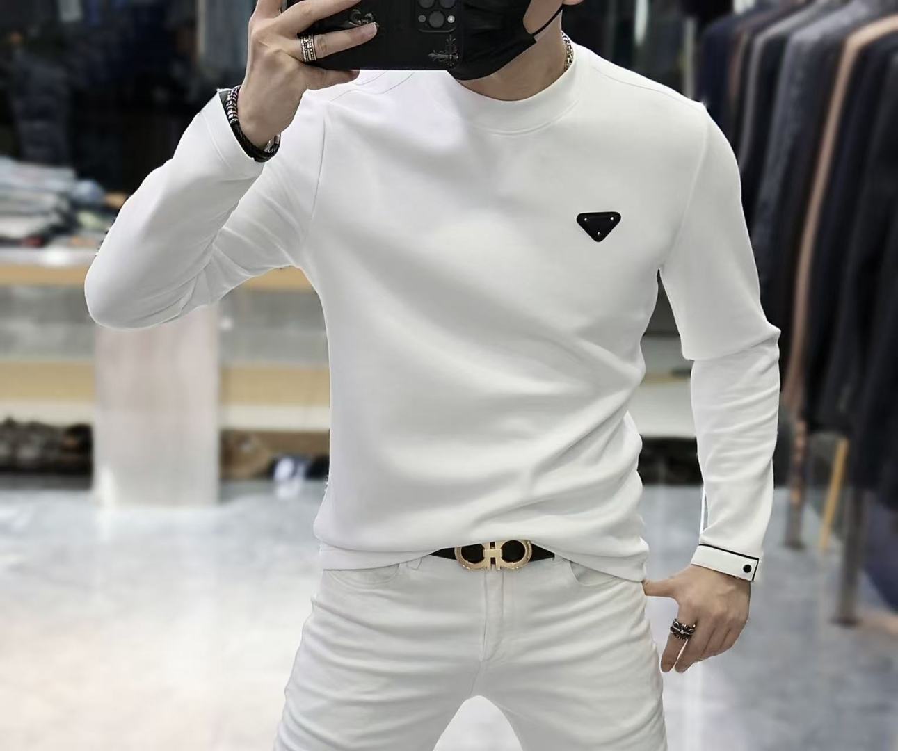 這款衣服是AAAAA 1:1 質量(非常棒). 使用了和原版一模一樣的材料. 商標部分也保持了和普拉達/Prada一樣. 圖片拍攝是實物衣服拍攝, 您所收到的實物保證和我們圖片一模一樣.