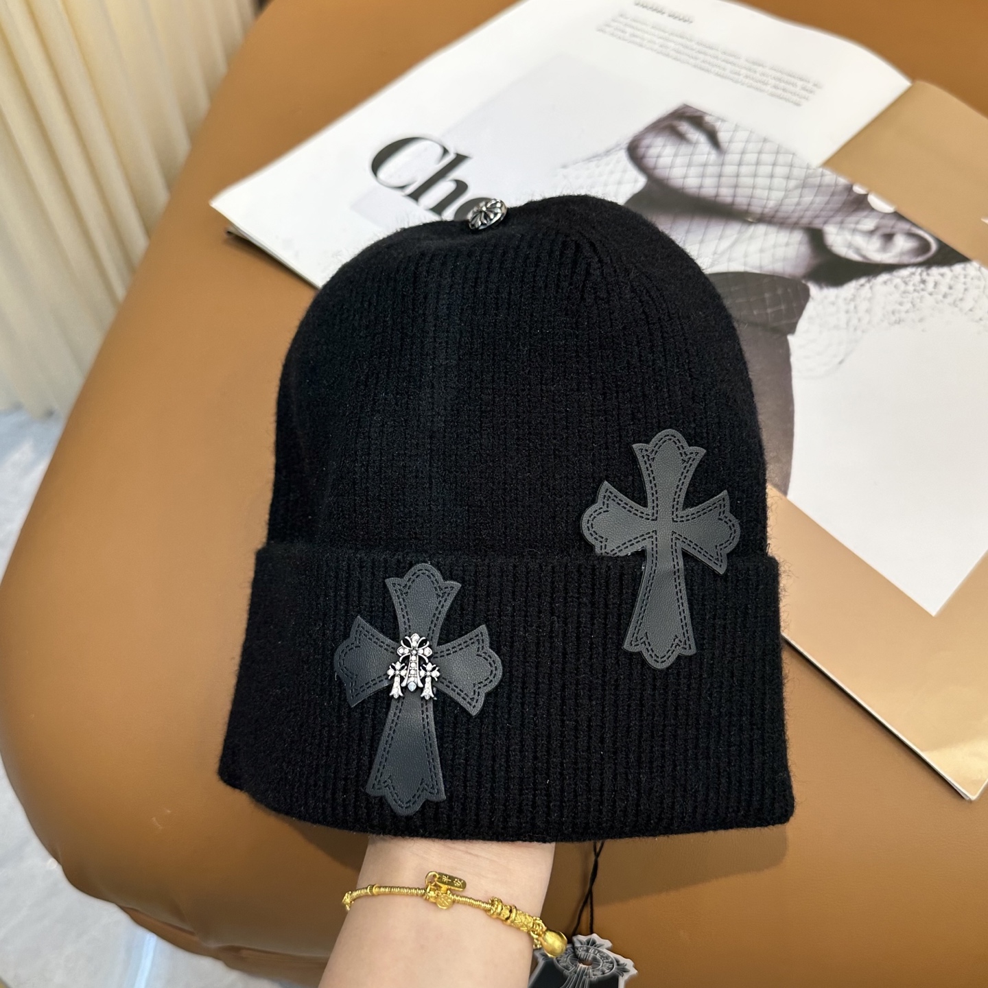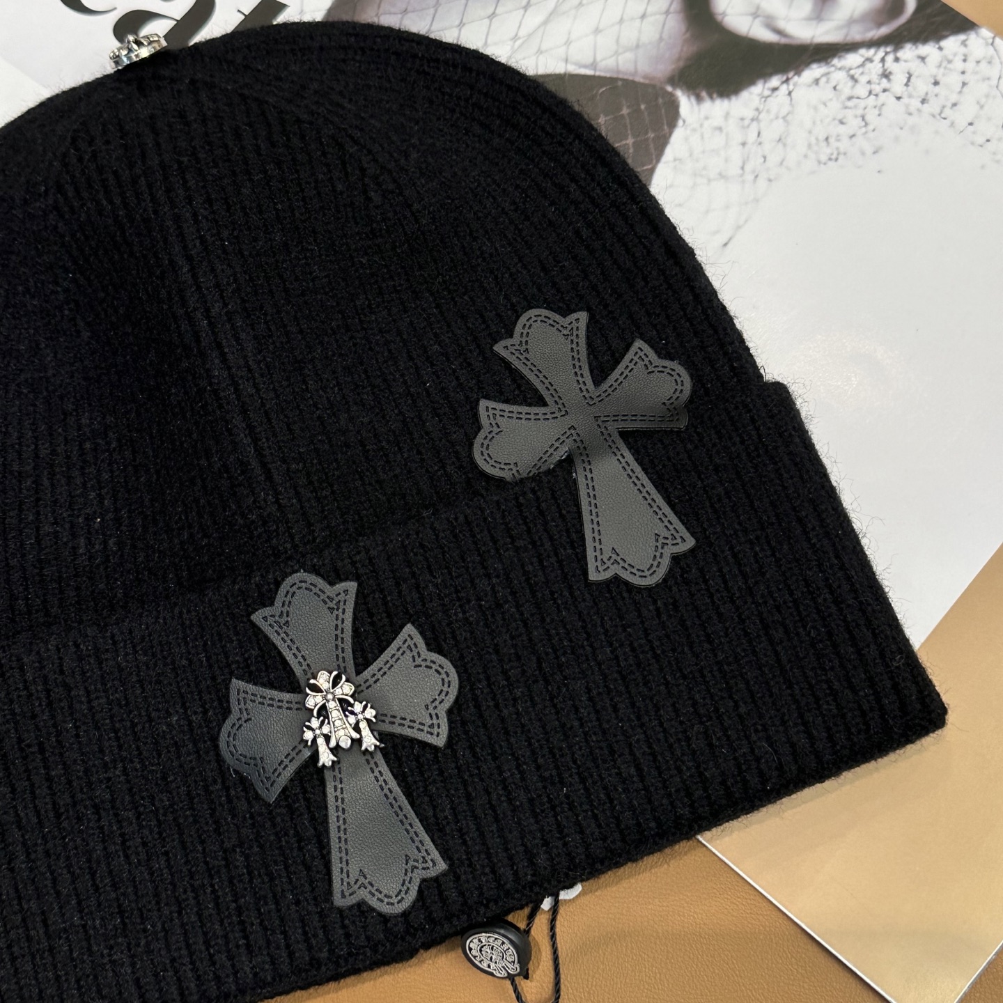 這款帽子是AAAAA 1:1 質量(非常棒). 使用了和原版一模一樣的材料. 商標部分也保持了和鉻心/Chrome Hearts一樣. 圖片拍攝是實物帽子拍攝, 您所收到的實物保證和我們圖片一模一樣.