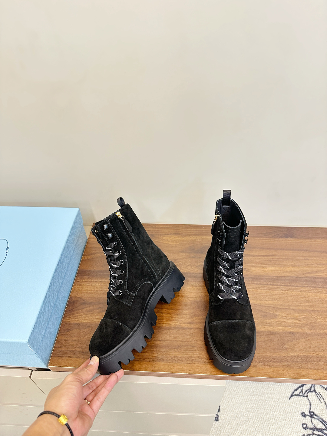 這款鞋子是AAAAA 1:1 質量(非常棒). 使用了和原版一模一樣的材料. 商標部分也保持了和普拉達/Prada一樣. 圖片拍攝是實物鞋子拍攝, 您所收到的實物保證和我們圖片一模一樣.