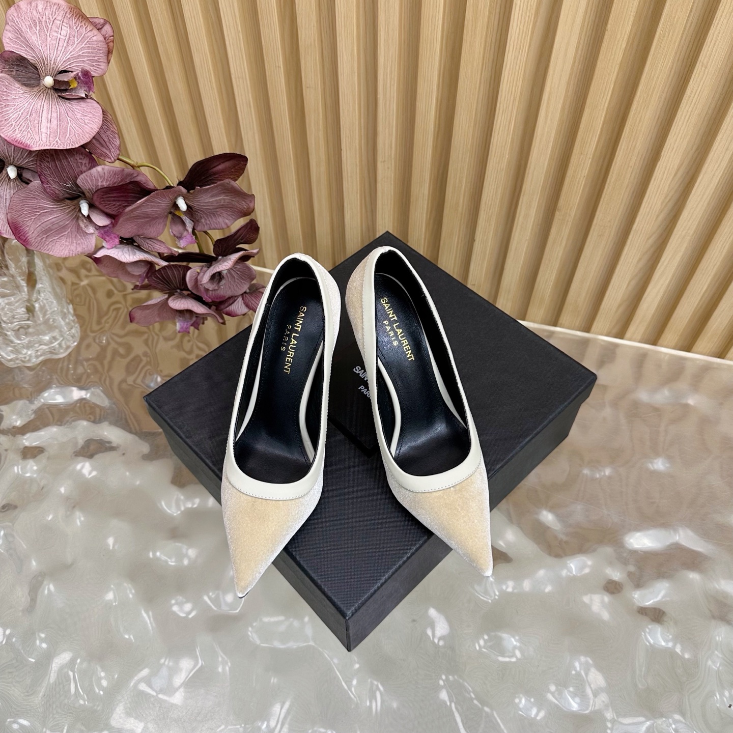 這款鞋子是AAAAA 1:1 質量(非常棒). 使用了和原版一模一樣的材料. 商標部分也保持了和聖羅蘭/Saint Laurent一樣. 圖片拍攝是實物鞋子拍攝, 您所收到的實物保證和我們圖片一模一樣.