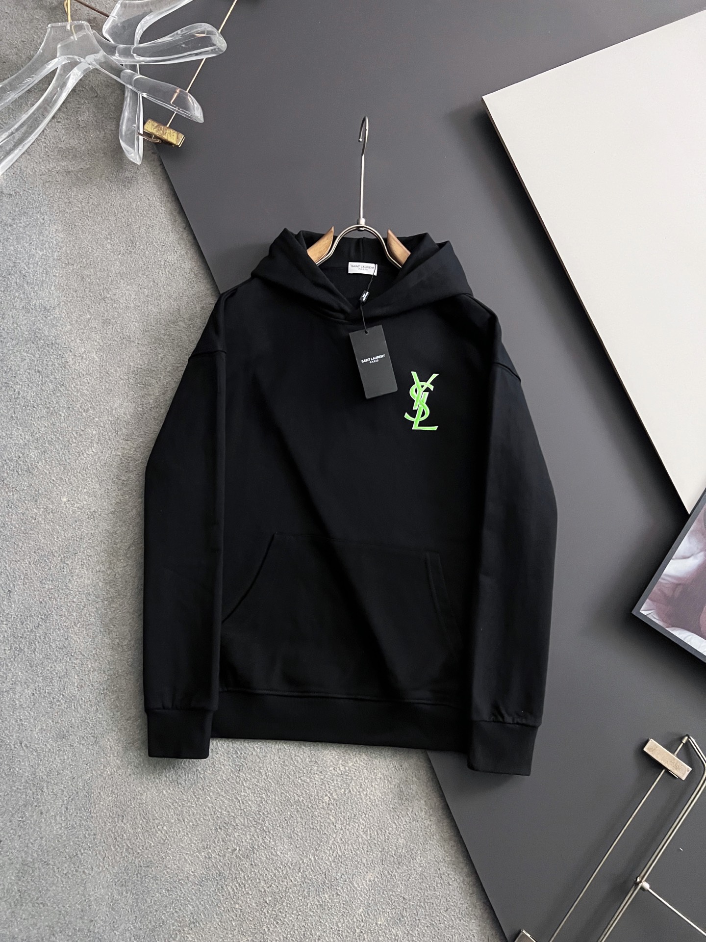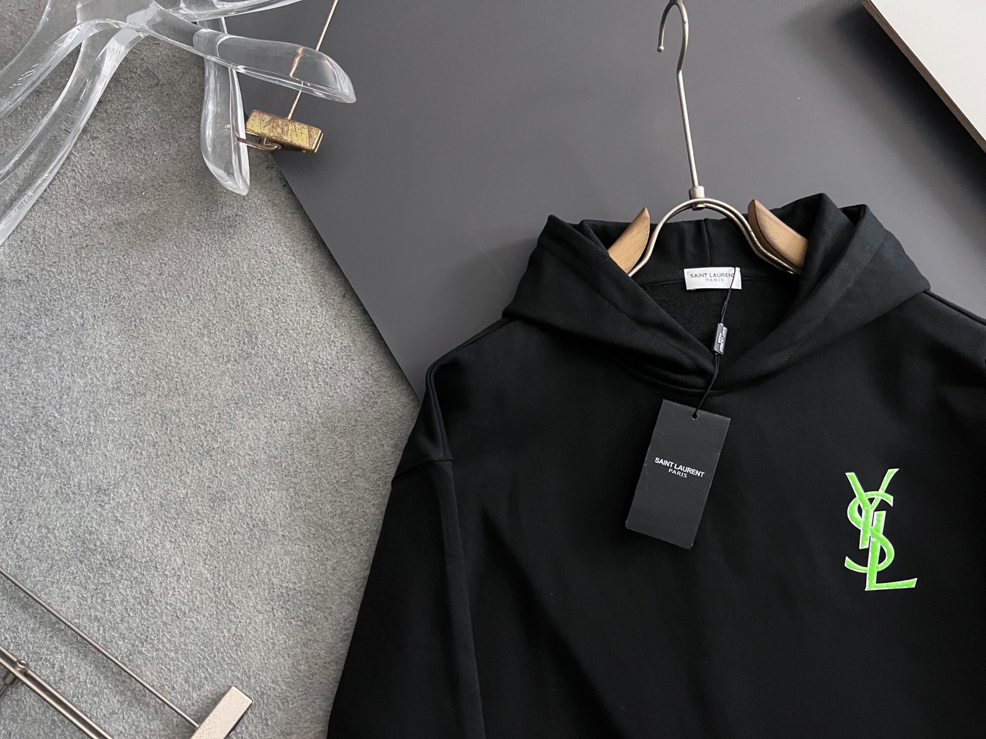 這款衣服是AAAAA 1:1 質量(非常棒). 使用了和原版一模一樣的材料. 商標部分也保持了和聖羅蘭/Saint Laurent一樣. 圖片拍攝是實物衣服拍攝, 您所收到的實物保證和我們圖片一模一樣.