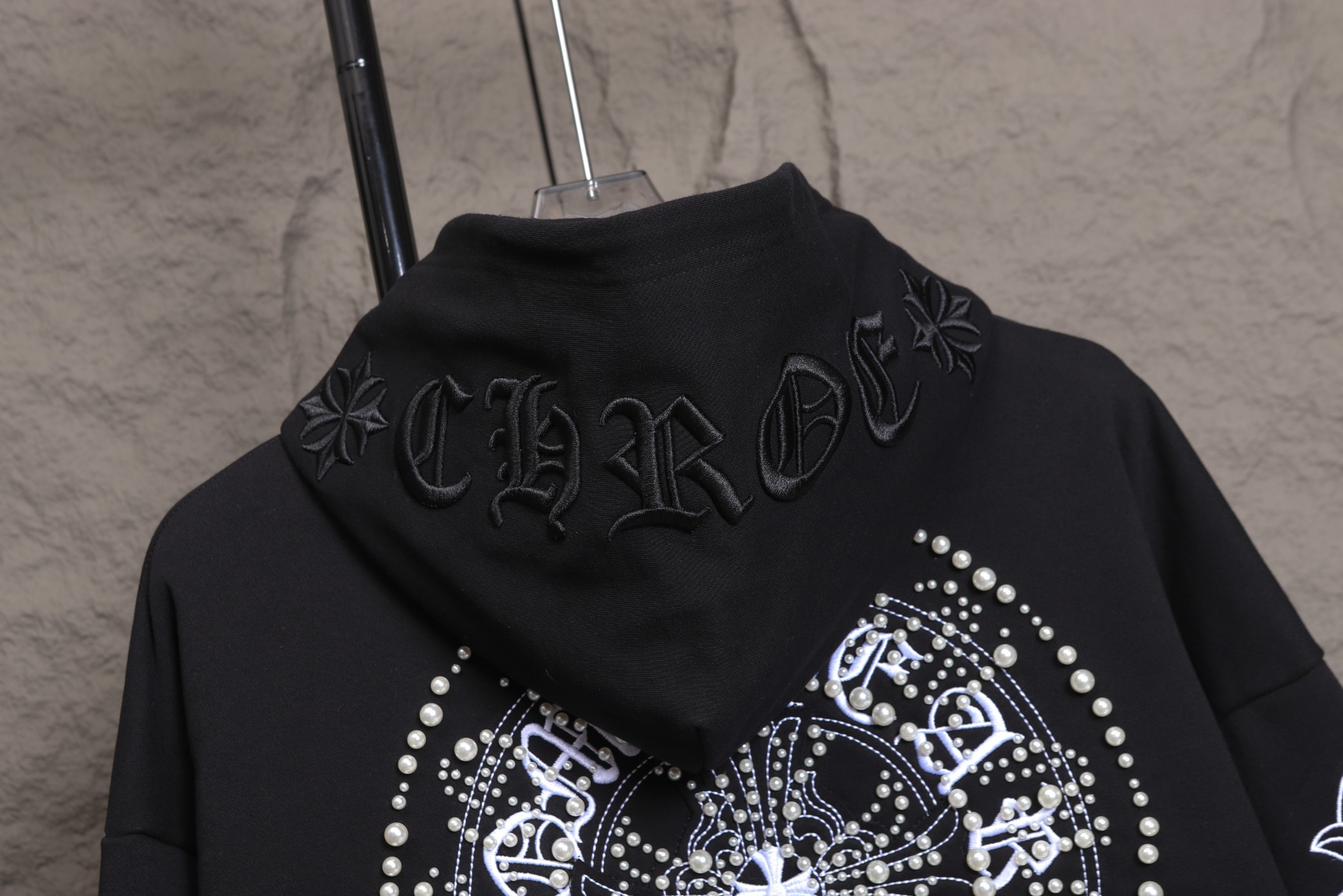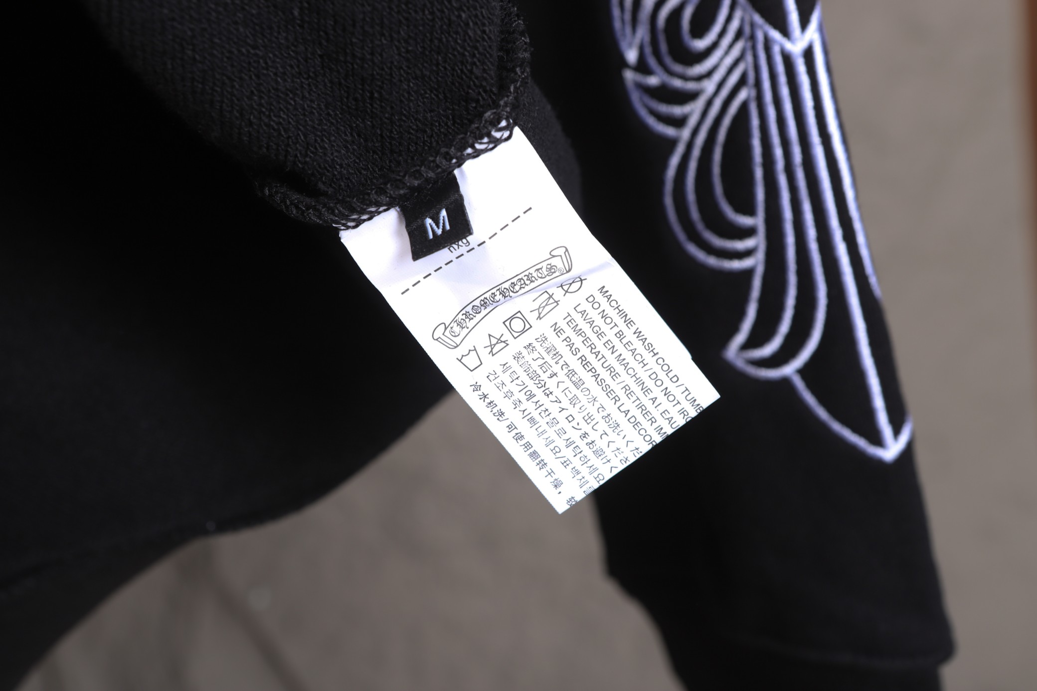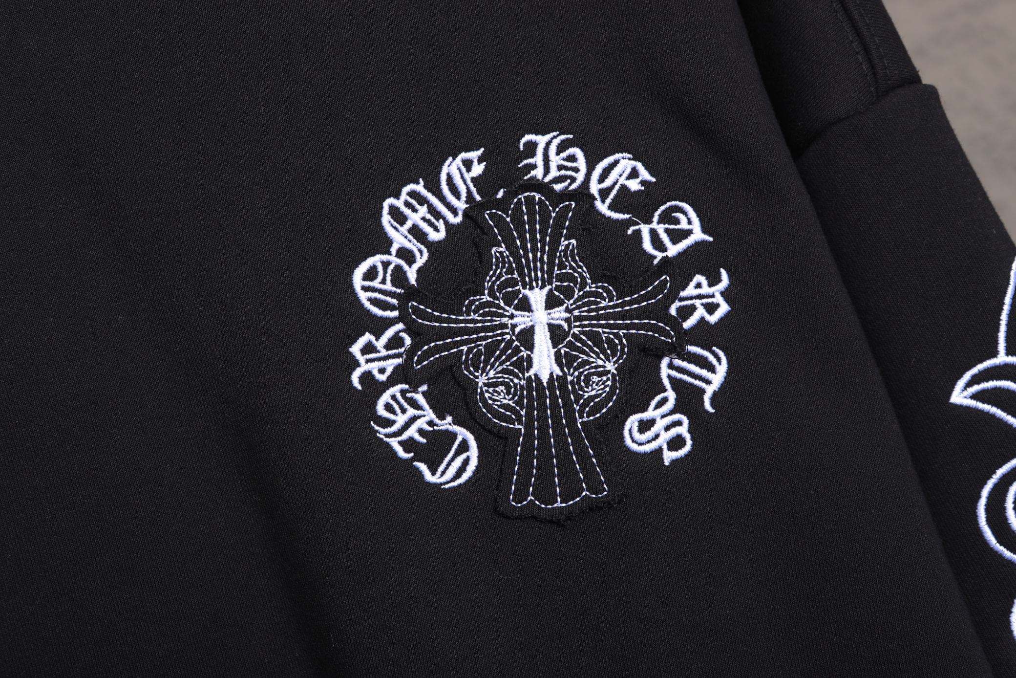 這款衣服是AAAAA 1:1 質量(非常棒). 使用了和原版一模一樣的材料. 商標部分也保持了和鉻心/Chrome Hearts一樣. 圖片拍攝是實物衣服拍攝, 您所收到的實物保證和我們圖片一模一樣.