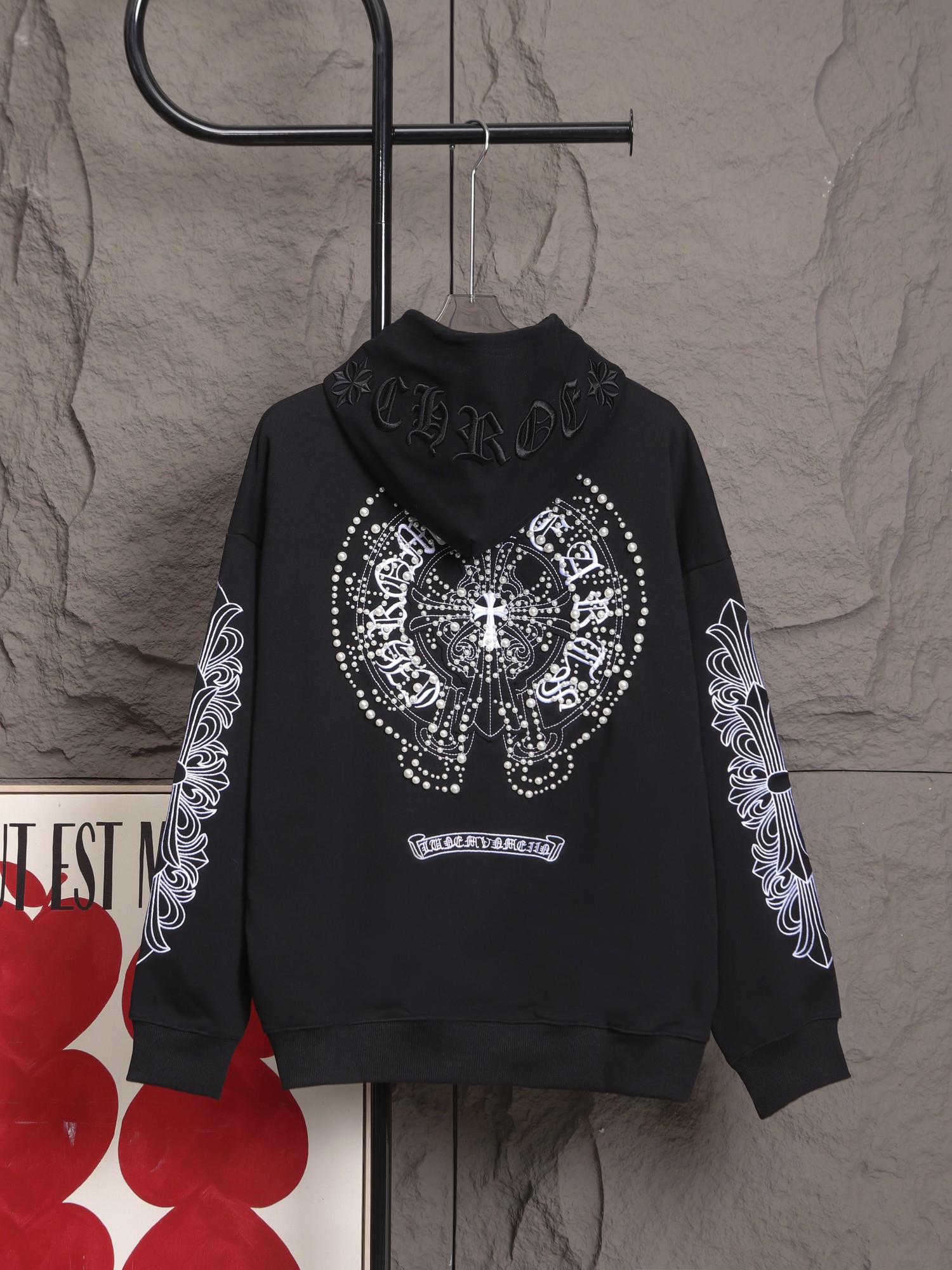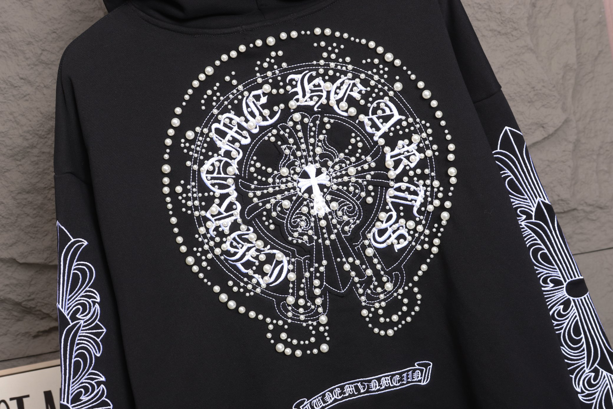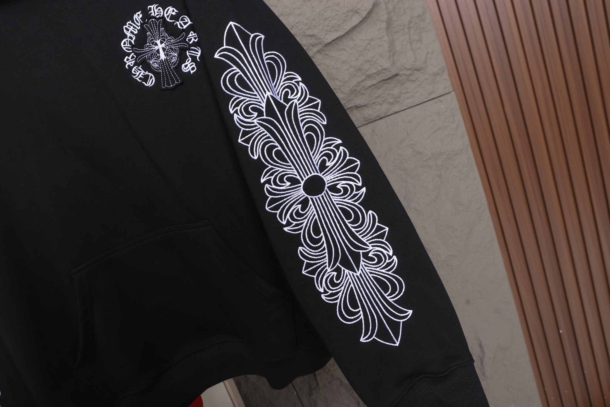 這款衣服是AAAAA 1:1 質量(非常棒). 使用了和原版一模一樣的材料. 商標部分也保持了和鉻心/Chrome Hearts一樣. 圖片拍攝是實物衣服拍攝, 您所收到的實物保證和我們圖片一模一樣.