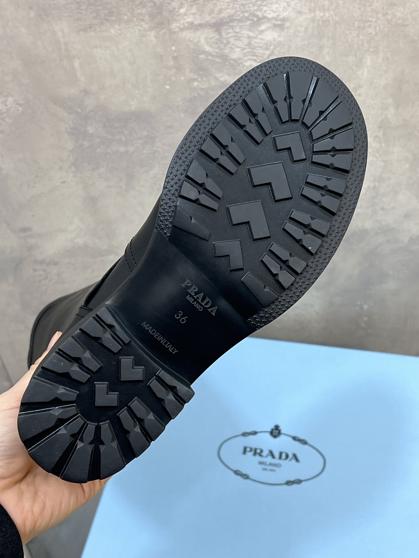 這款鞋子是AAAAA 1:1 質量(非常棒). 使用了和原版一模一樣的材料. 商標部分也保持了和普拉達/Prada一樣. 圖片拍攝是實物鞋子拍攝, 您所收到的實物保證和我們圖片一模一樣.