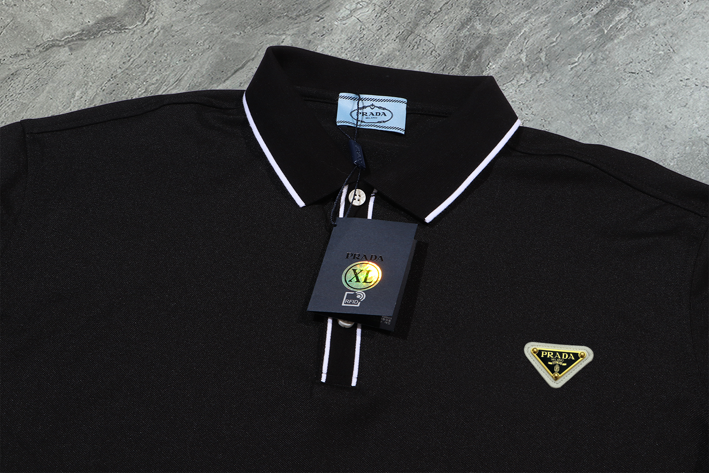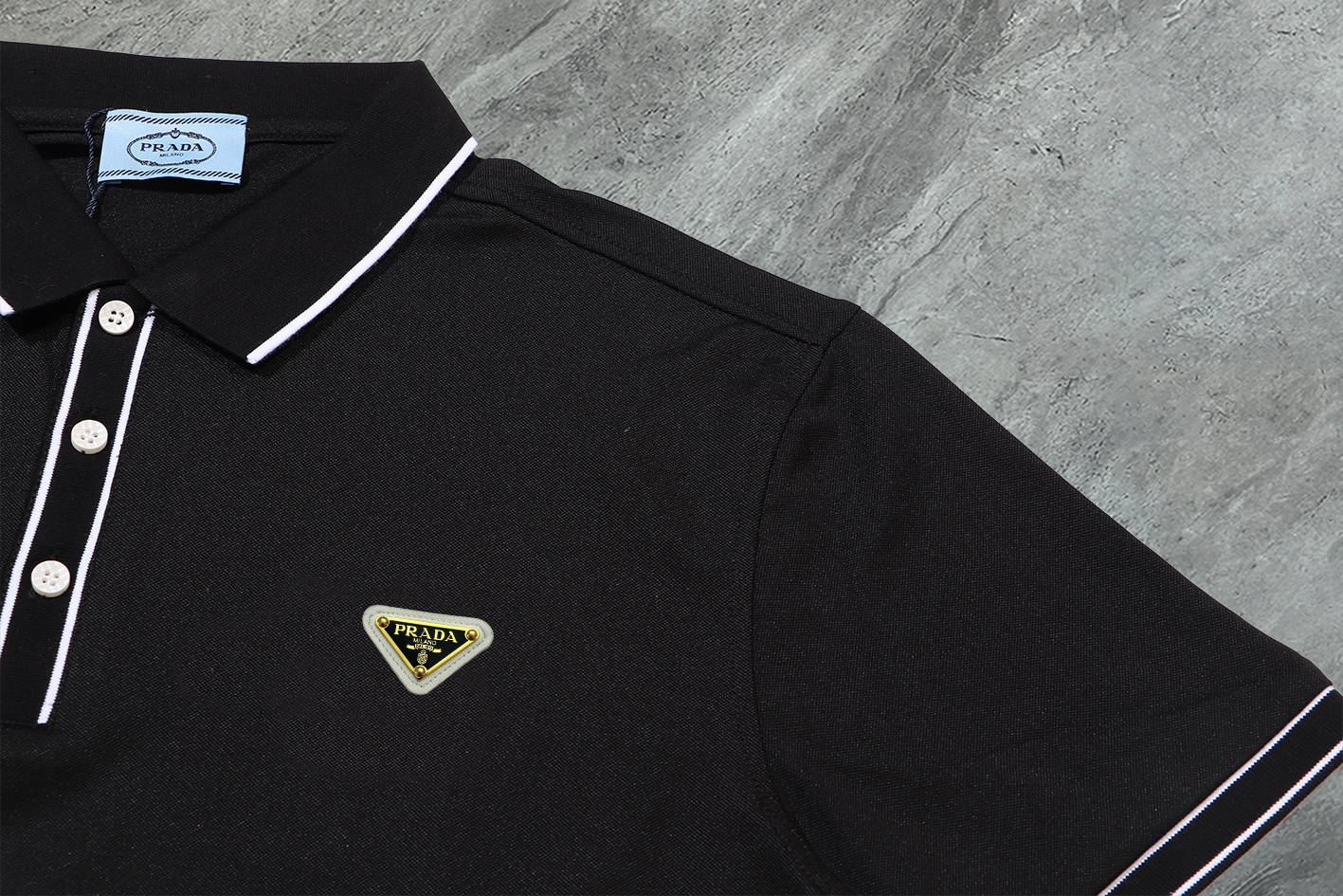 這款衣服是AAAAA 1:1 質量(非常棒). 使用了和原版一模一樣的材料. 商標部分也保持了和普拉達/Prada一樣. 圖片拍攝是實物衣服拍攝, 您所收到的實物保證和我們圖片一模一樣.