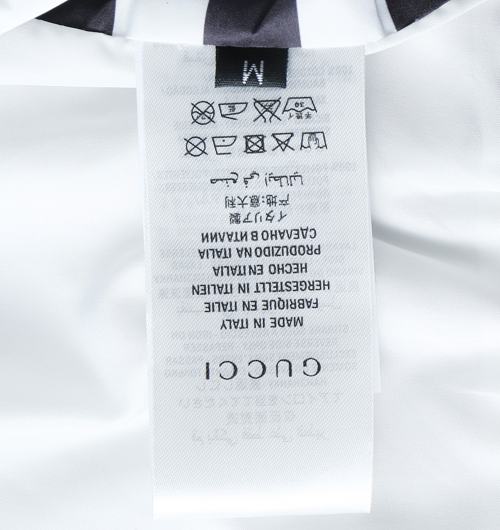 這款衣服是AAAAA 1:1 質量(非常棒). 使用了和原版一模一樣的材料. 商標部分也保持了和古奇/Gucci一樣. 圖片拍攝是實物衣服拍攝, 您所收到的實物保證和我們圖片一模一樣.