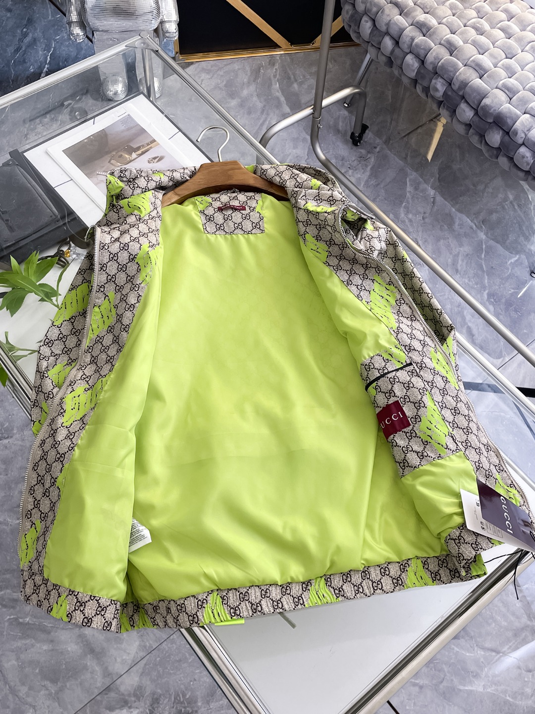 這款衣服是AAAAA 1:1 質量(非常棒). 使用了和原版一模一樣的材料. 商標部分也保持了和古奇/Gucci一樣. 圖片拍攝是實物衣服拍攝, 您所收到的實物保證和我們圖片一模一樣.