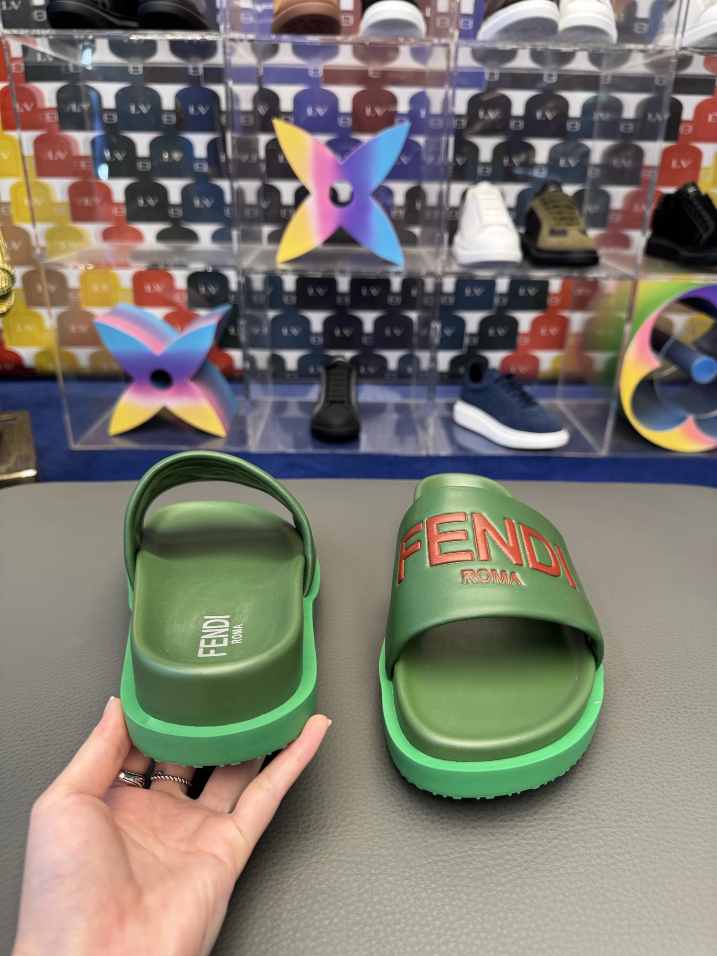 這款鞋子是AAAAA 1:1 質量(非常棒). 使用了和原版一模一樣的材料. 商標部分也保持了和芬迪/Fendi一樣. 圖片拍攝是實物鞋子拍攝, 您所收到的實物保證和我們圖片一模一樣.