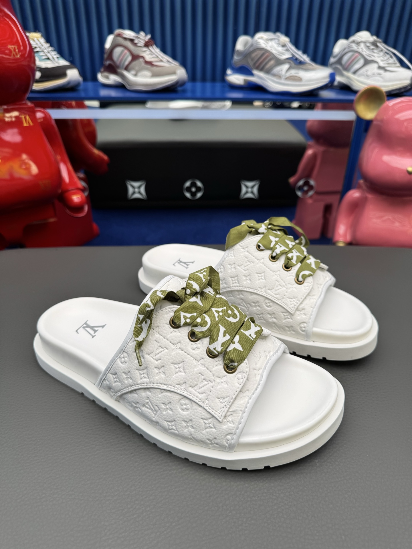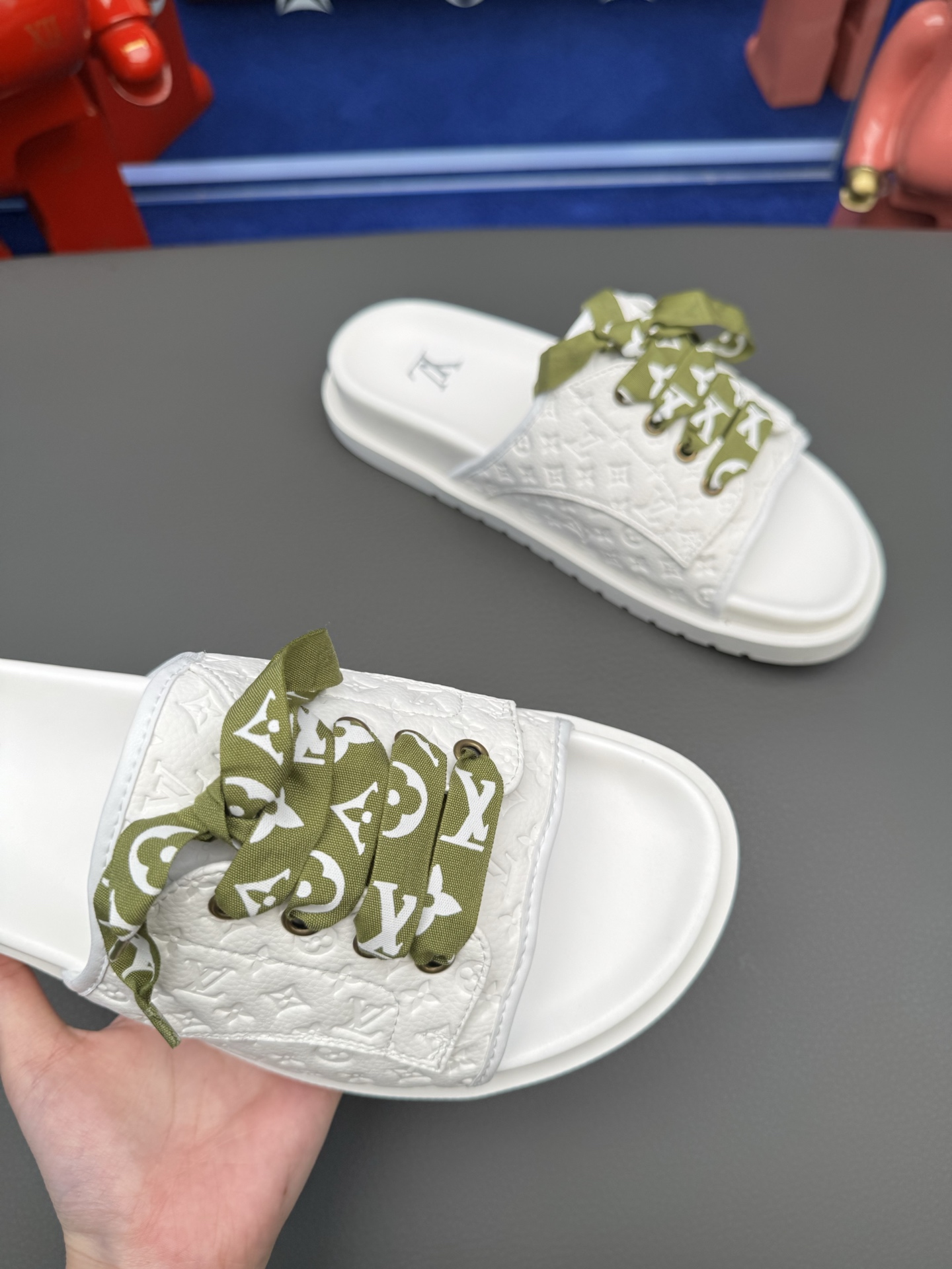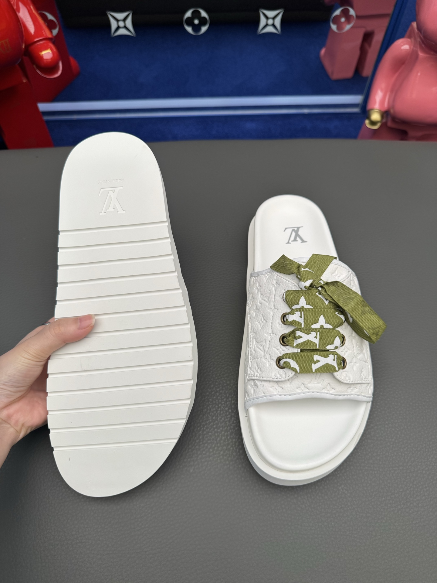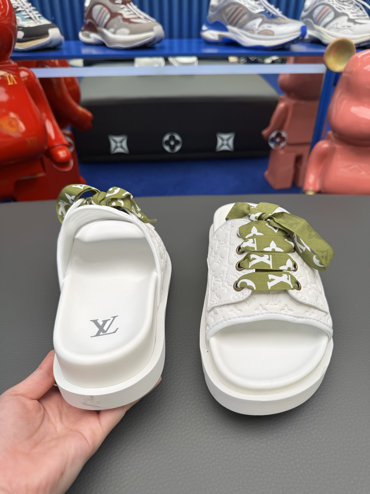 這款鞋子是AAAAA 1:1 質量(非常棒). 使用了和原版一模一樣的材料. 商標部分也保持了和路易威登/Louis Vuitton一樣. 圖片拍攝是實物鞋子拍攝, 您所收到的實物保證和我們圖片一模一樣.