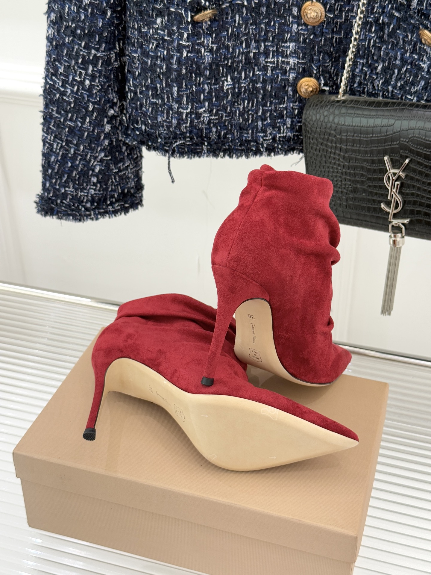 這款鞋子是AAAAA 1:1 質量(非常棒). 使用了和原版一模一樣的材料. 商標部分也保持了和Gianvito Rossi一樣. 圖片拍攝是實物鞋子拍攝, 您所收到的實物保證和我們圖片一模一樣.