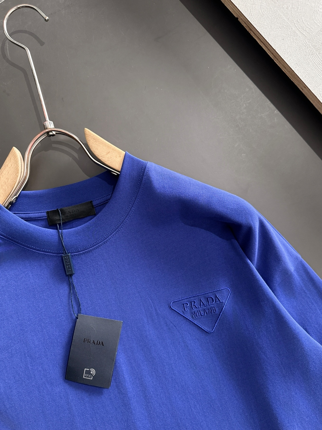 這款衣服是AAAAA 1:1 質量(非常棒). 使用了和原版一模一樣的材料. 商標部分也保持了和普拉達/Prada一樣. 圖片拍攝是實物衣服拍攝, 您所收到的實物保證和我們圖片一模一樣.