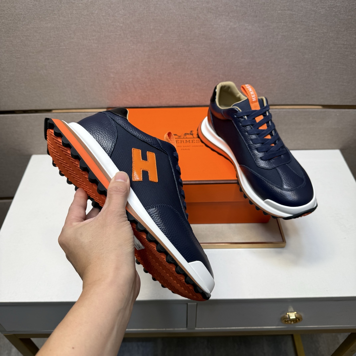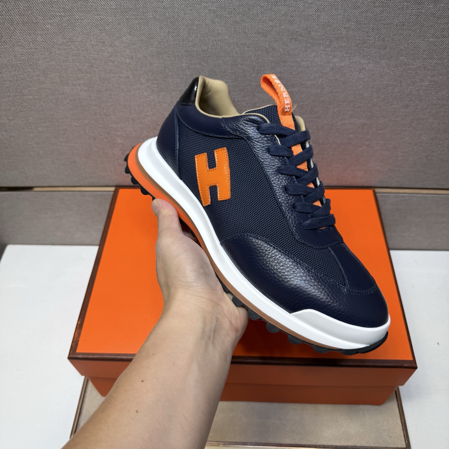 這款鞋子是AAAAA 1:1 質量(非常棒). 使用了和原版一模一樣的材料. 商標部分也保持了和愛馬仕/Hermes一樣. 圖片拍攝是實物鞋子拍攝, 您所收到的實物保證和我們圖片一模一樣.