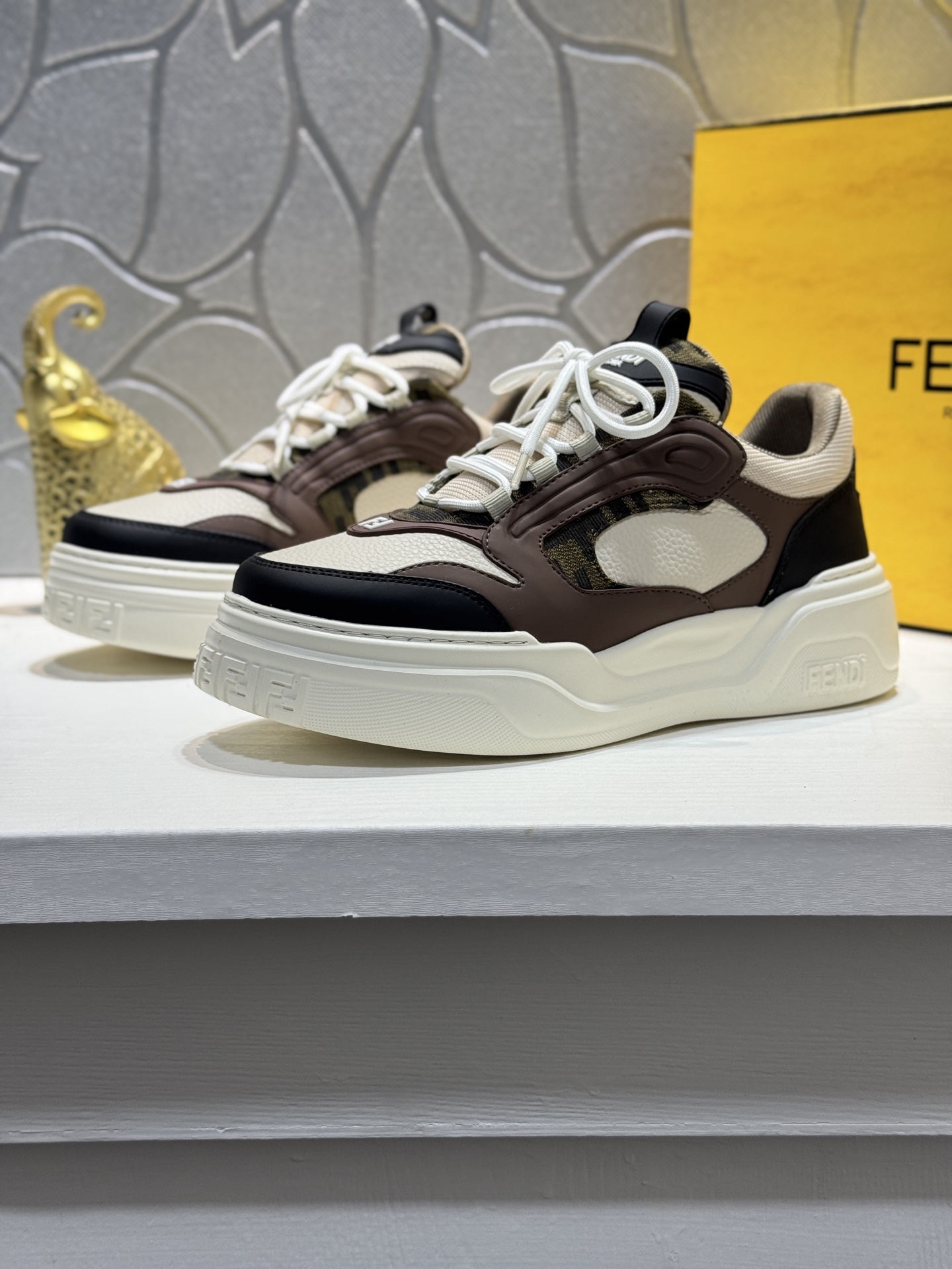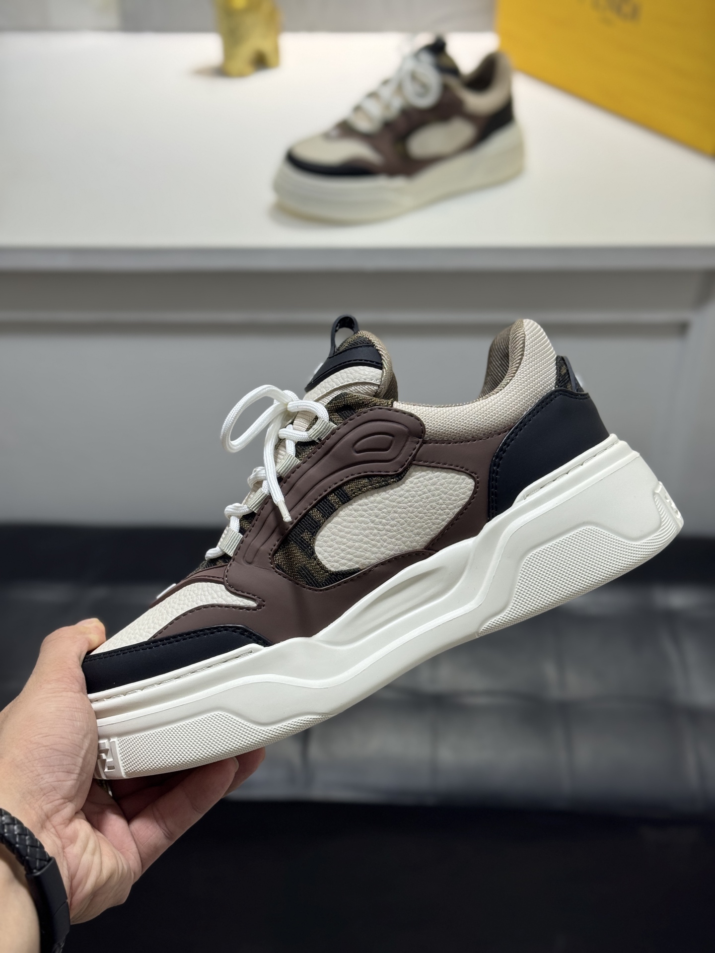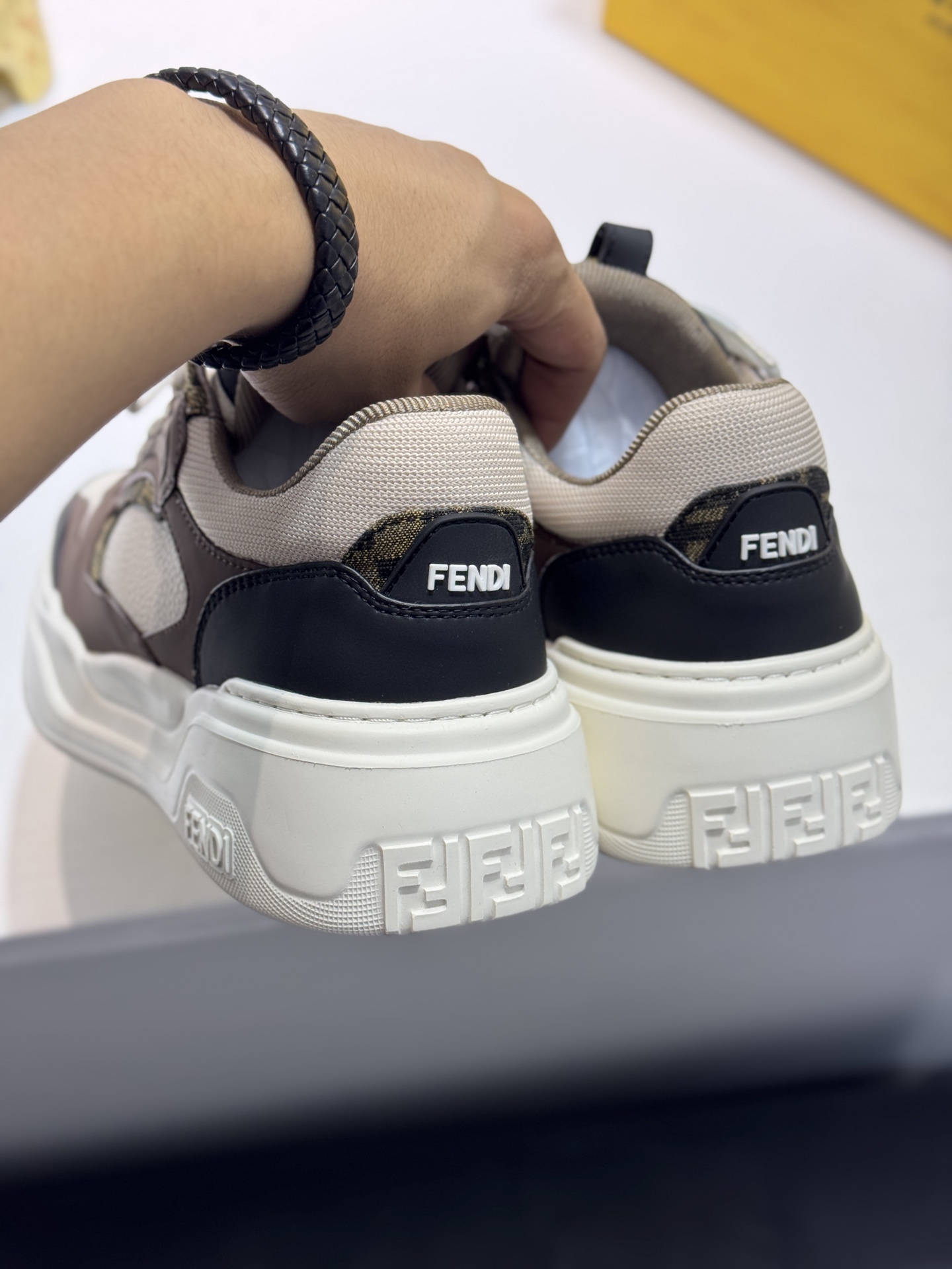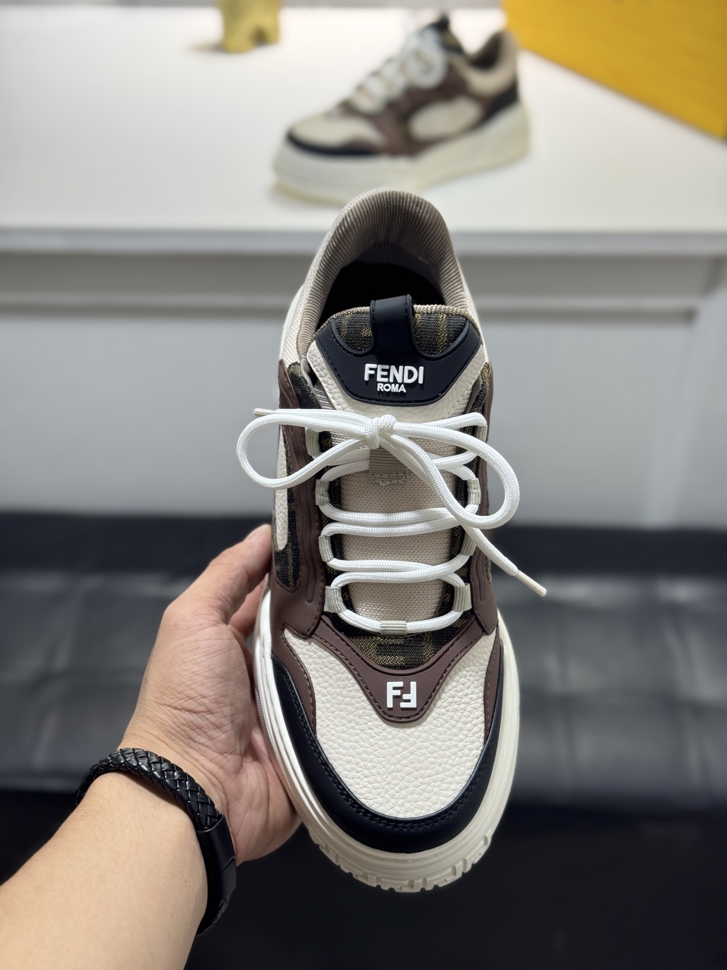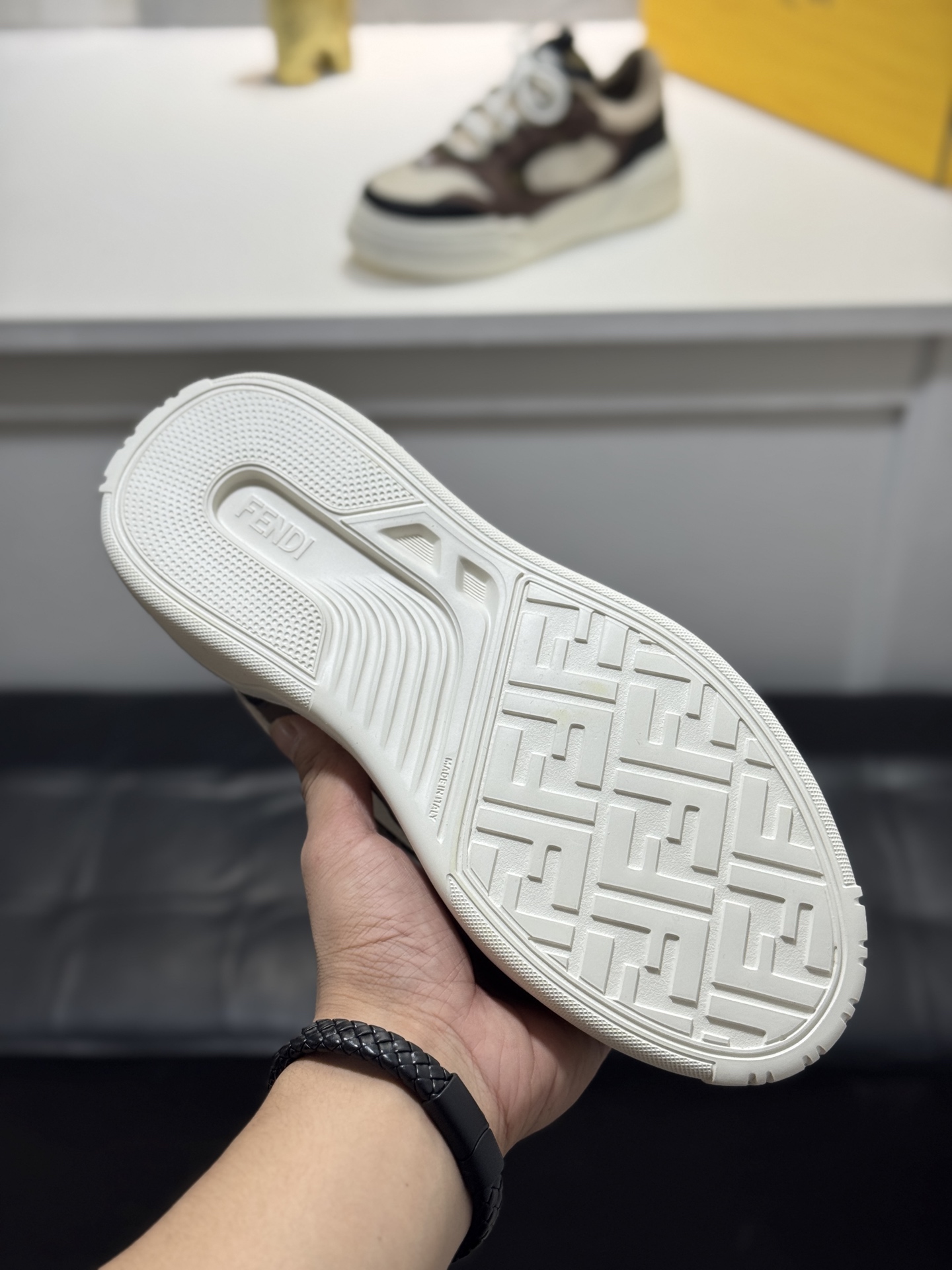 這款鞋子是AAAAA 1:1 質量(非常棒). 使用了和原版一模一樣的材料. 商標部分也保持了和芬迪/Fendi一樣. 圖片拍攝是實物鞋子拍攝, 您所收到的實物保證和我們圖片一模一樣.
