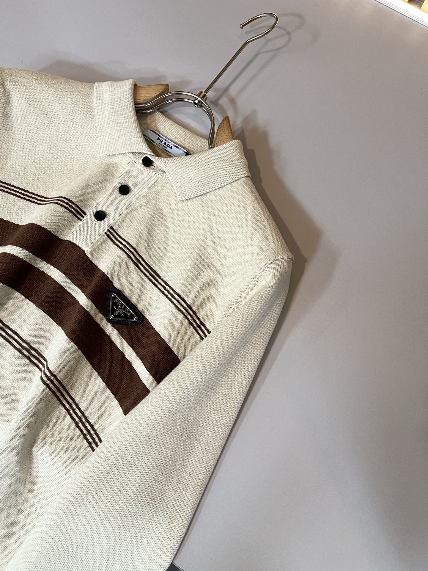 這款衣服是AAAAA 1:1 質量(非常棒). 使用了和原版一模一樣的材料. 商標部分也保持了和普拉達/Prada一樣. 圖片拍攝是實物衣服拍攝, 您所收到的實物保證和我們圖片一模一樣.