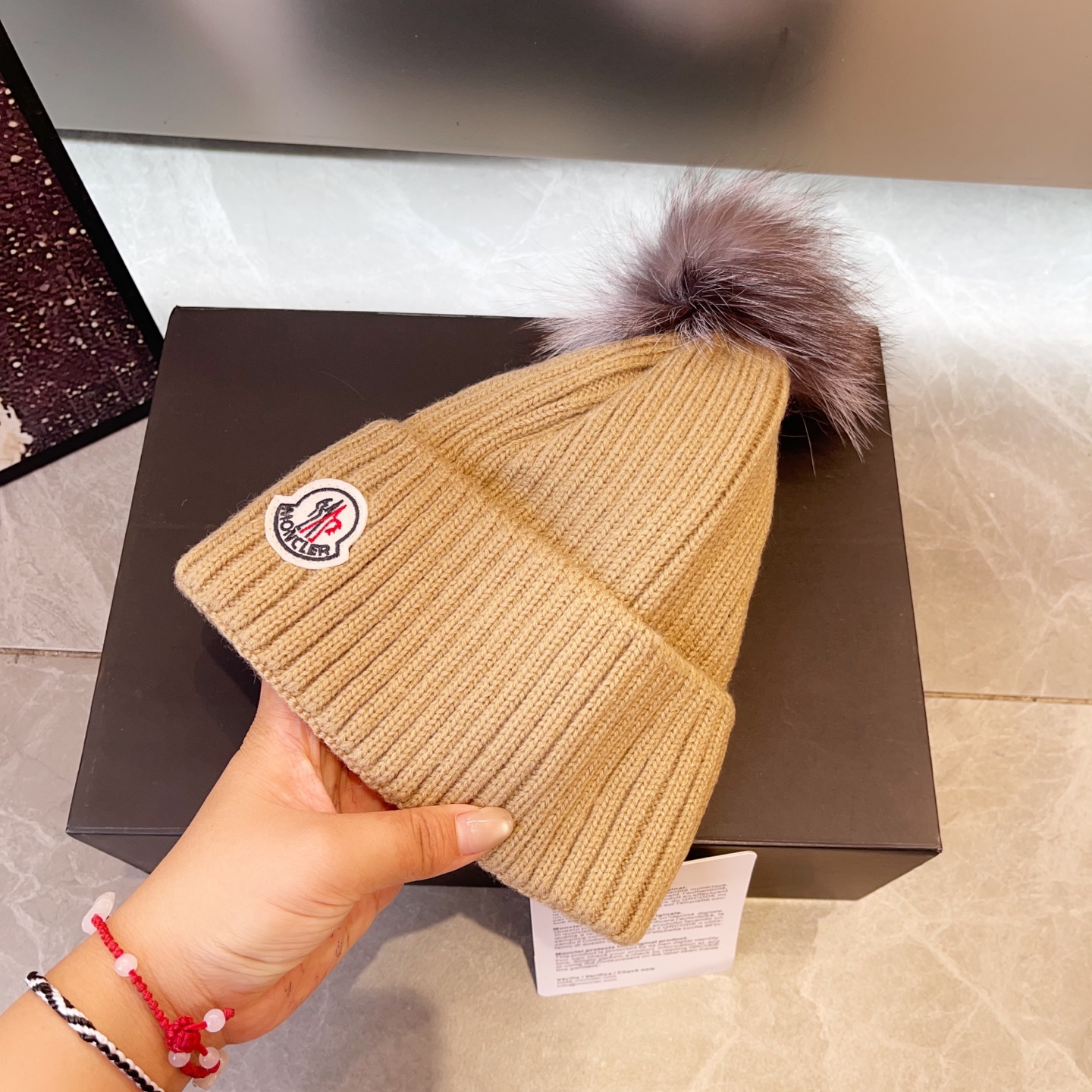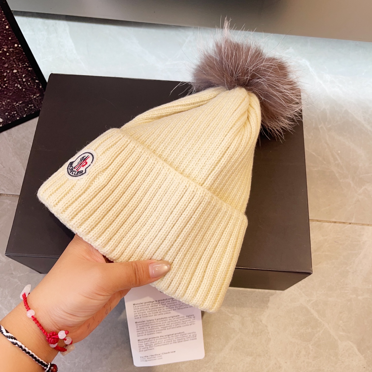 這款帽子是AAAAA 1:1 質量(非常棒). 使用了和原版一模一樣的材料. 商標部分也保持了和moncler一樣. 圖片拍攝是實物帽子拍攝, 您所收到的實物保證和我們圖片一模一樣.