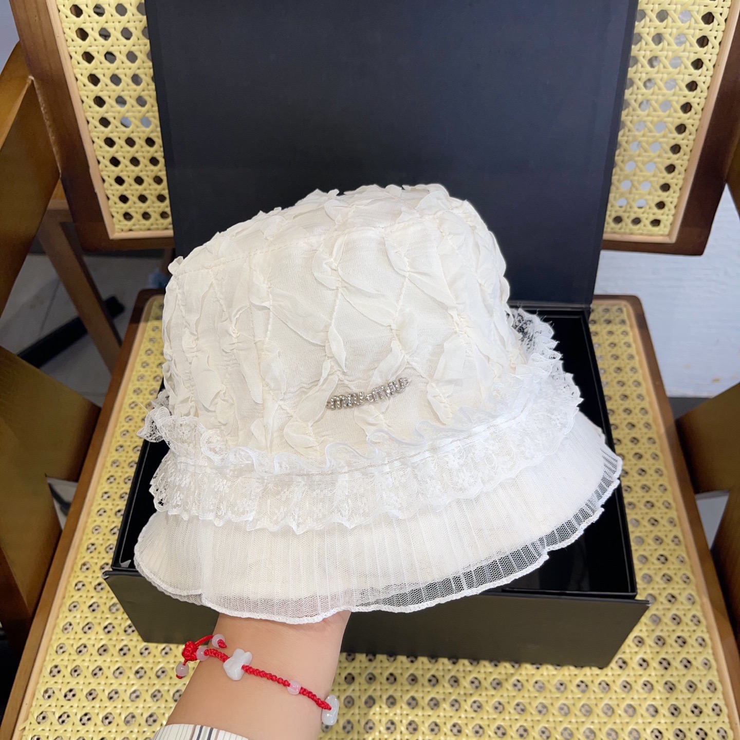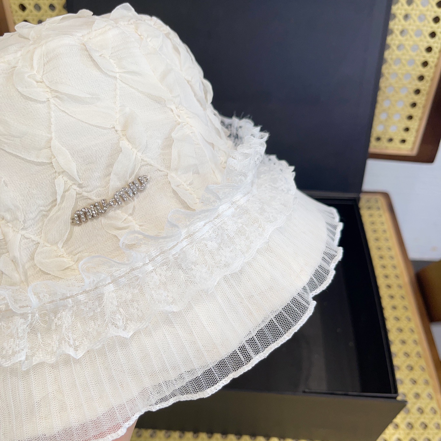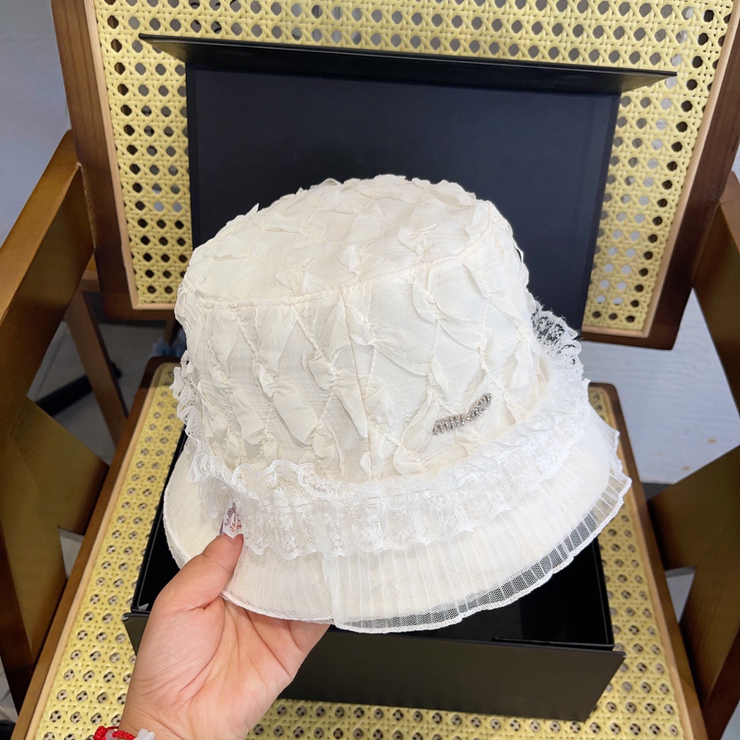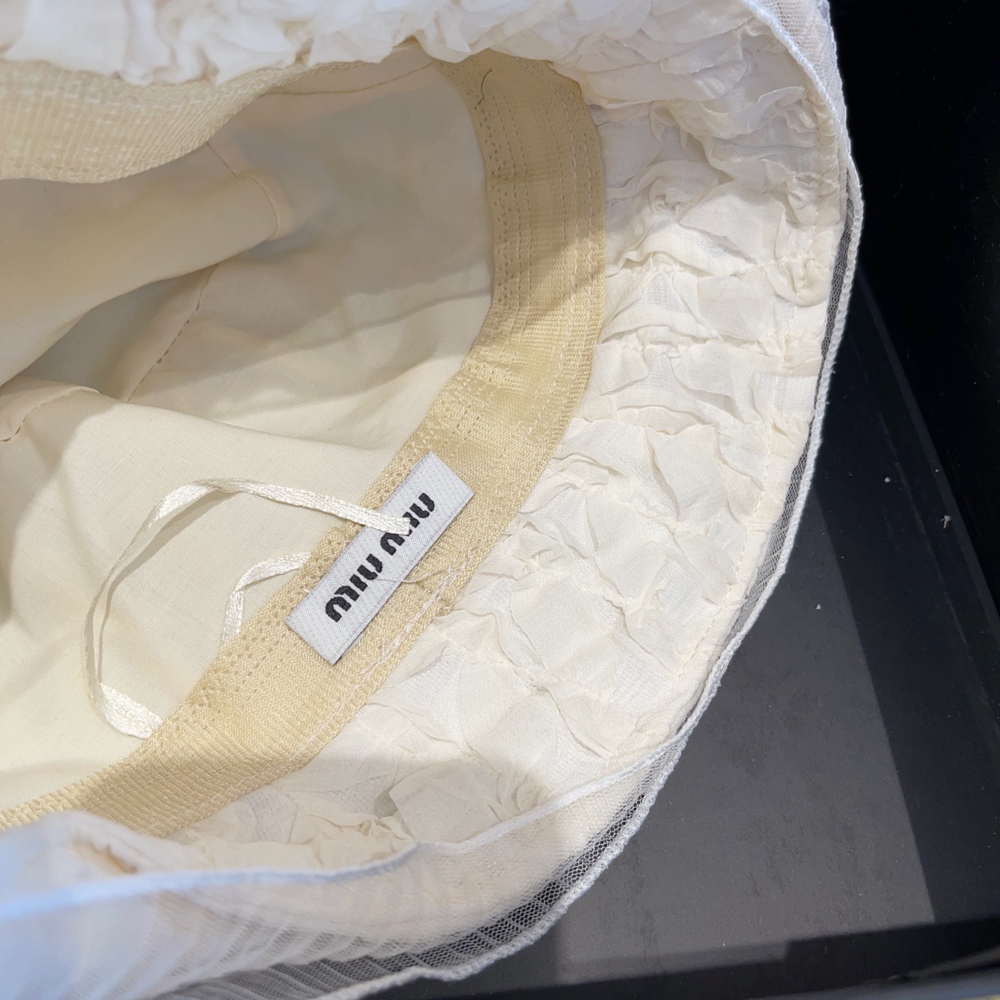 這款帽子是AAAAA 1:1 質量(非常棒). 使用了和原版一模一樣的材料. 商標部分也保持了和繆繆/Miu Miu一樣. 圖片拍攝是實物帽子拍攝, 您所收到的實物保證和我們圖片一模一樣.