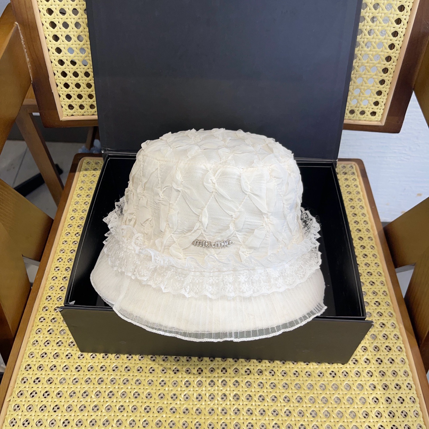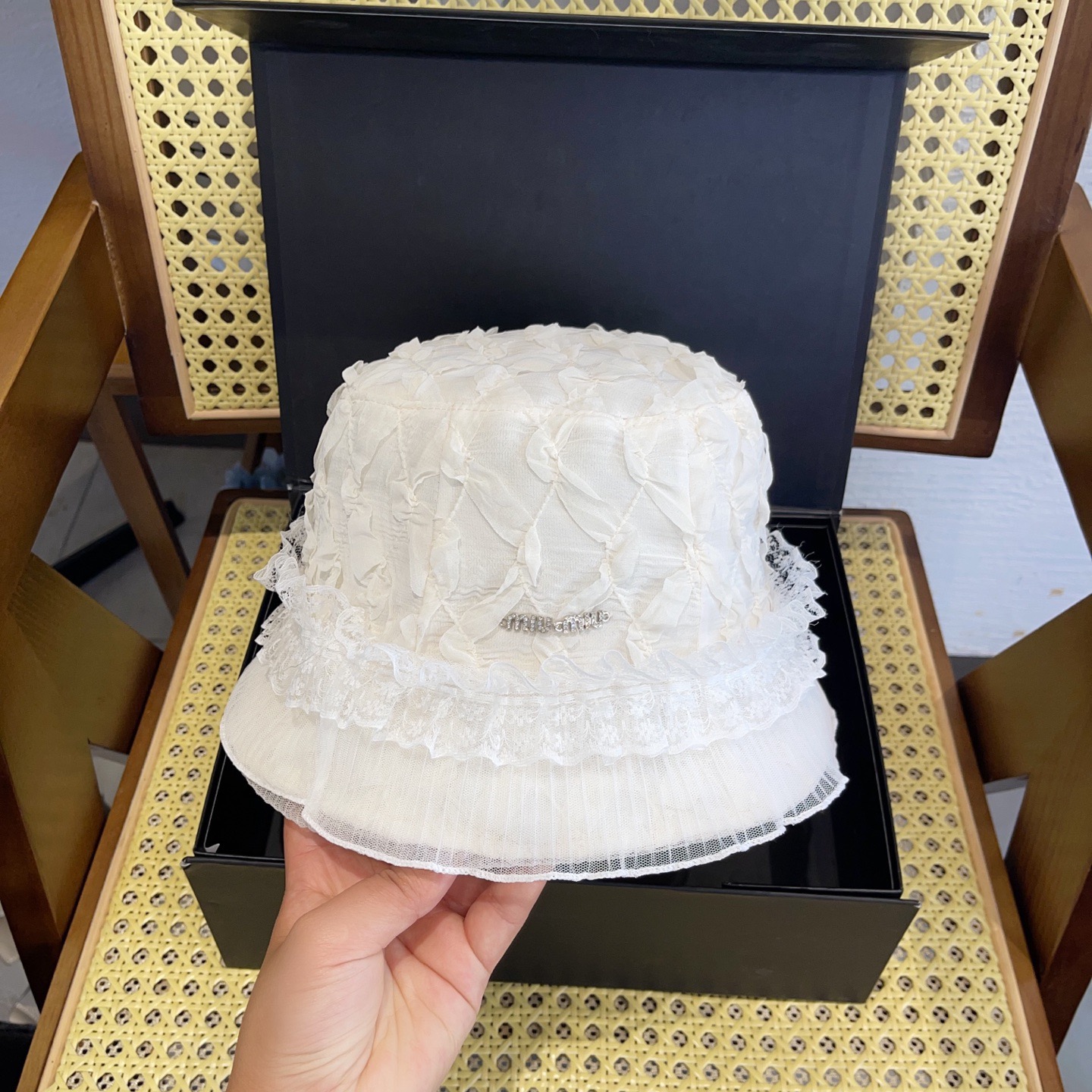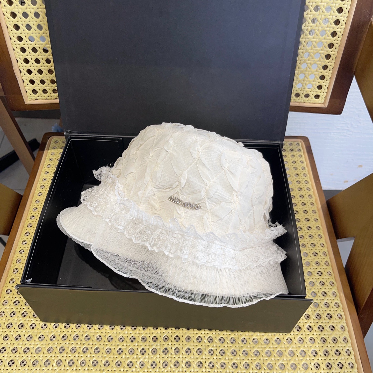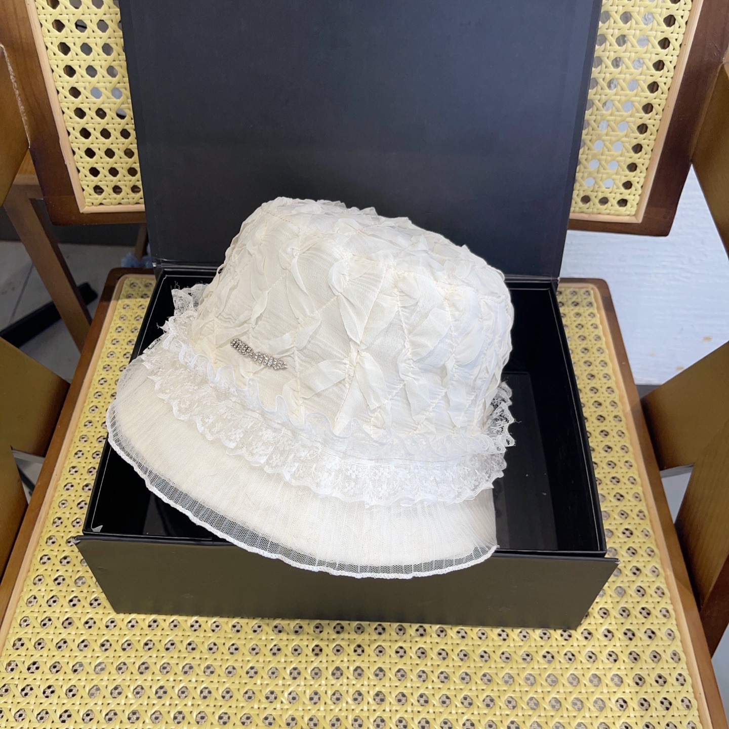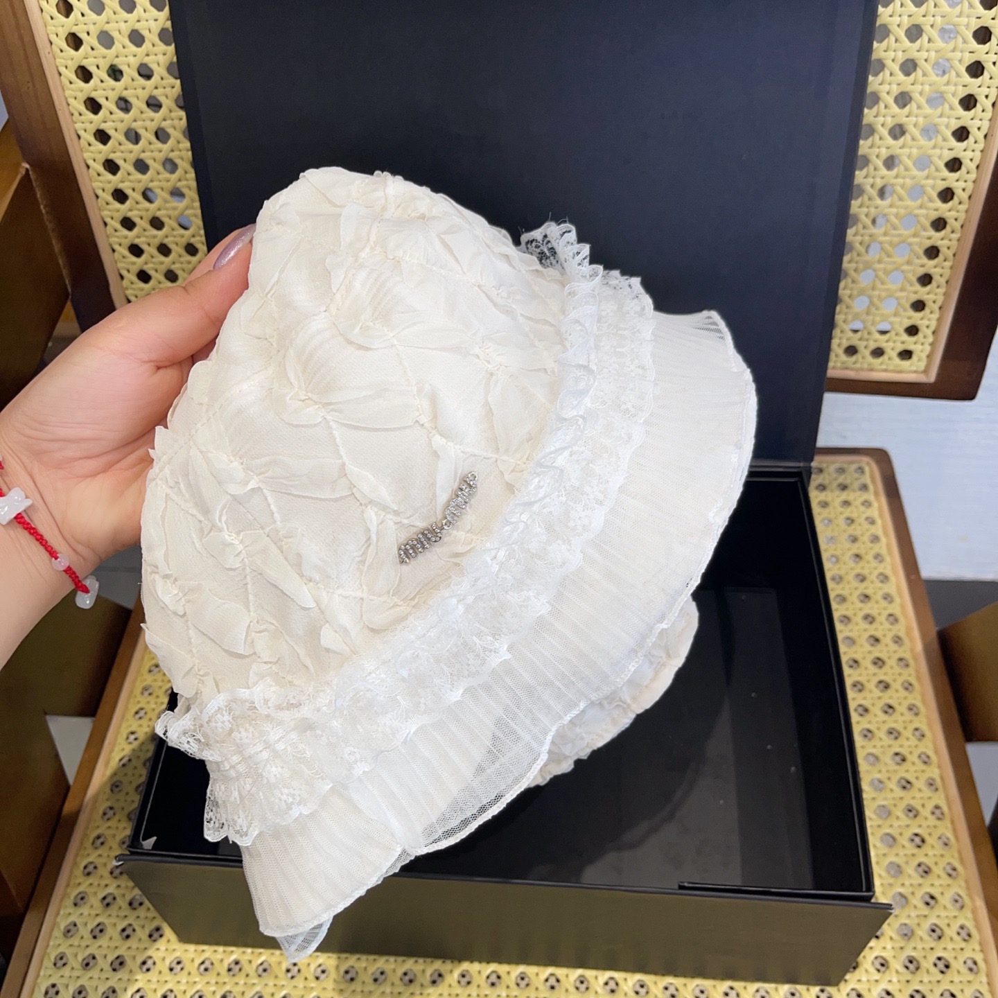 這款帽子是AAAAA 1:1 質量(非常棒). 使用了和原版一模一樣的材料. 商標部分也保持了和繆繆/Miu Miu一樣. 圖片拍攝是實物帽子拍攝, 您所收到的實物保證和我們圖片一模一樣.