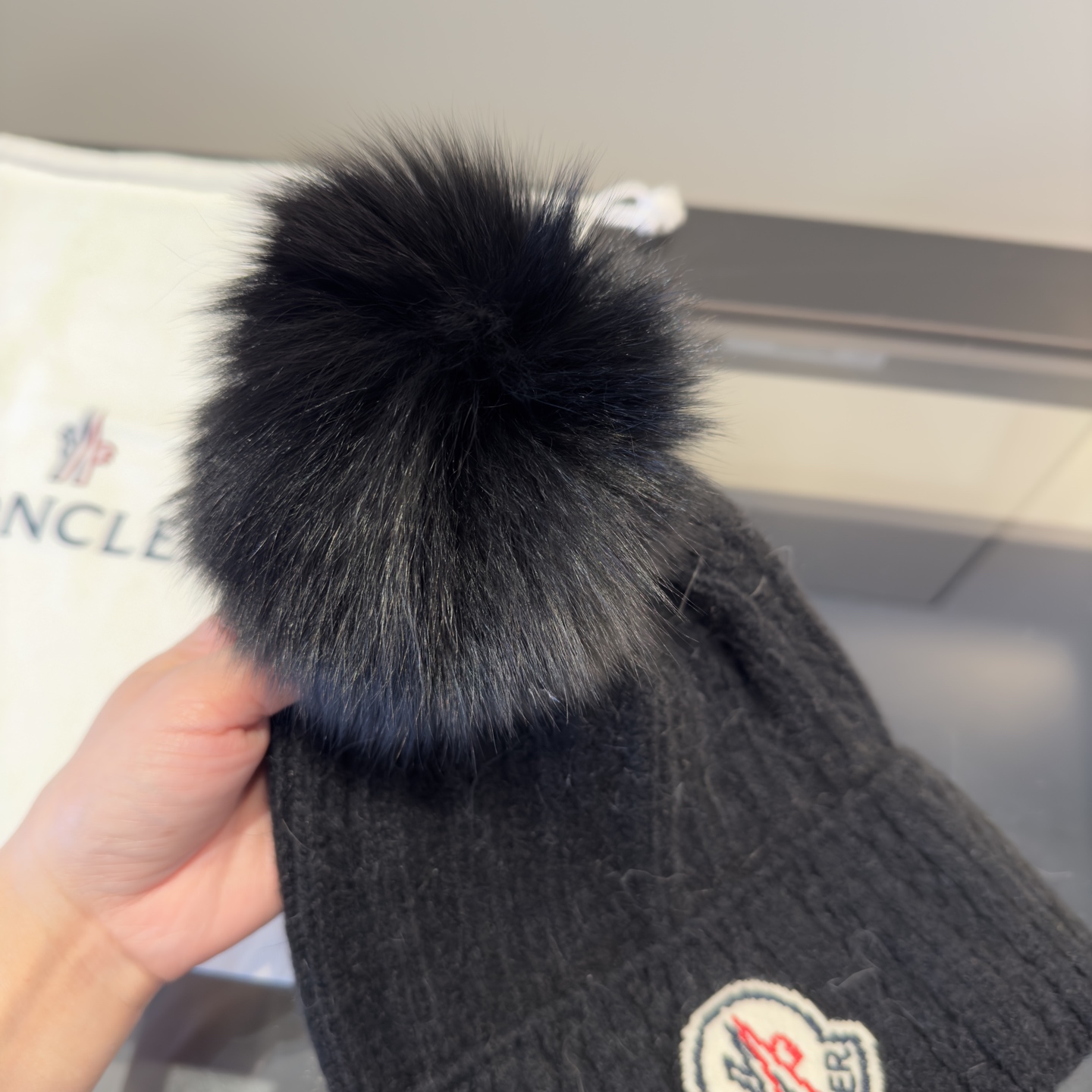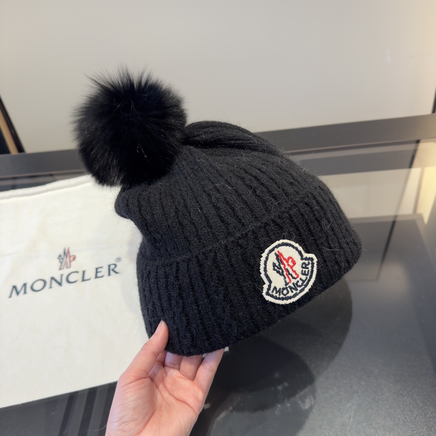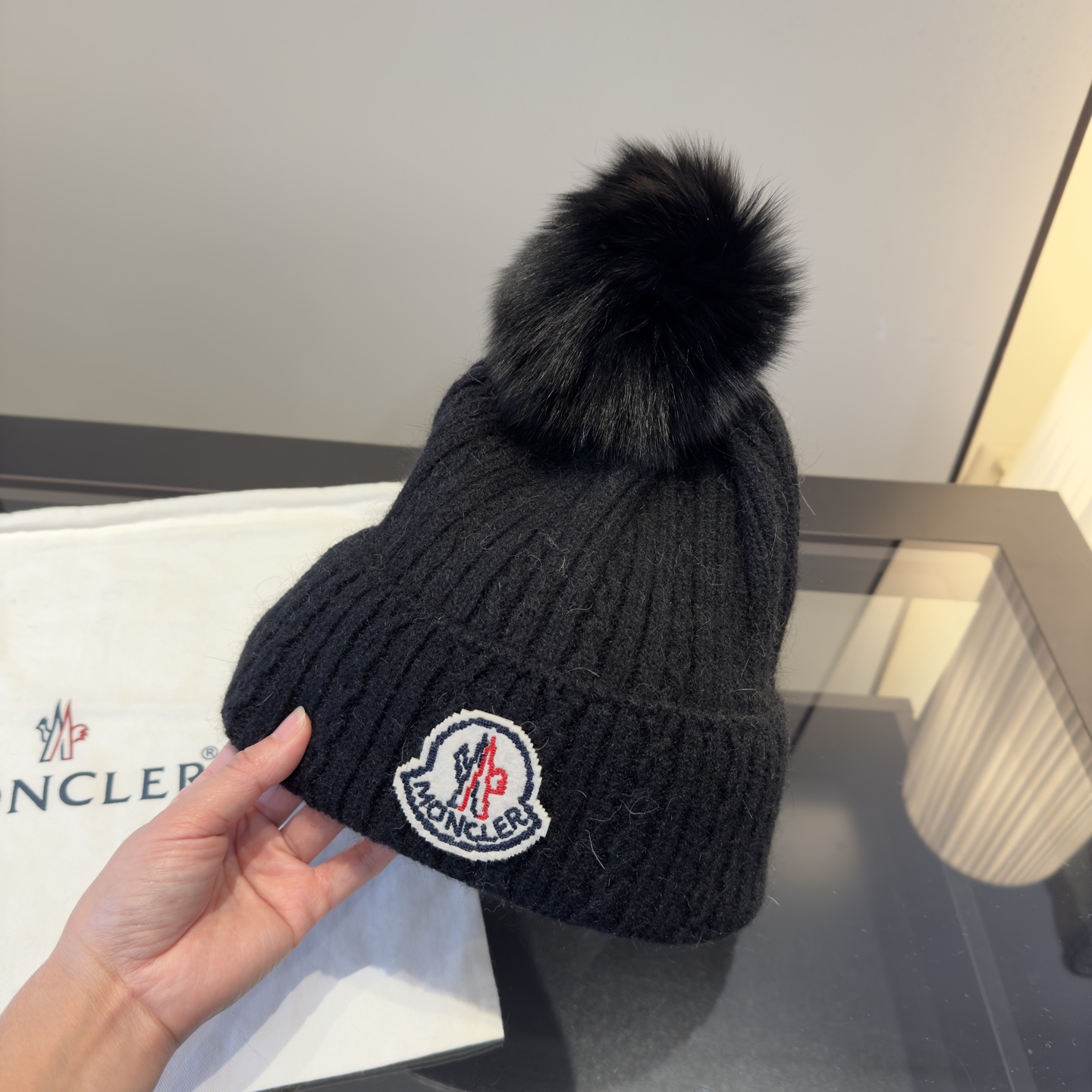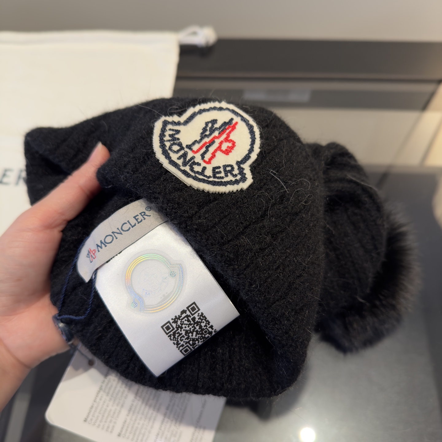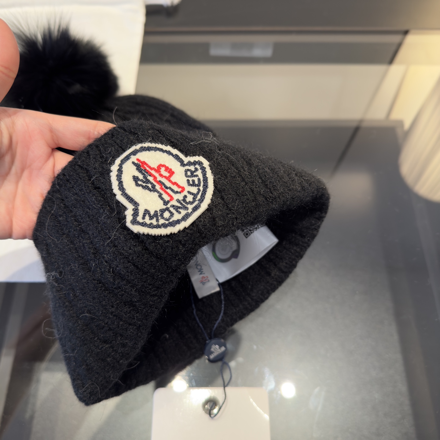 這款帽子是AAAAA 1:1 質量(非常棒). 使用了和原版一模一樣的材料. 商標部分也保持了和moncler一樣. 圖片拍攝是實物帽子拍攝, 您所收到的實物保證和我們圖片一模一樣.