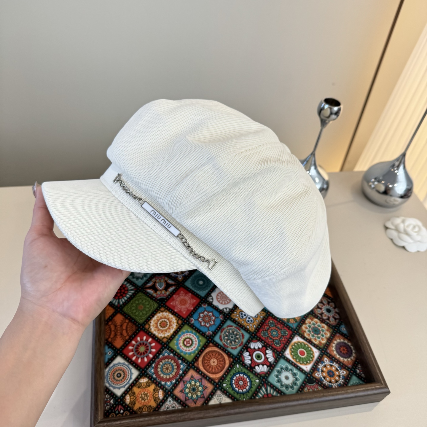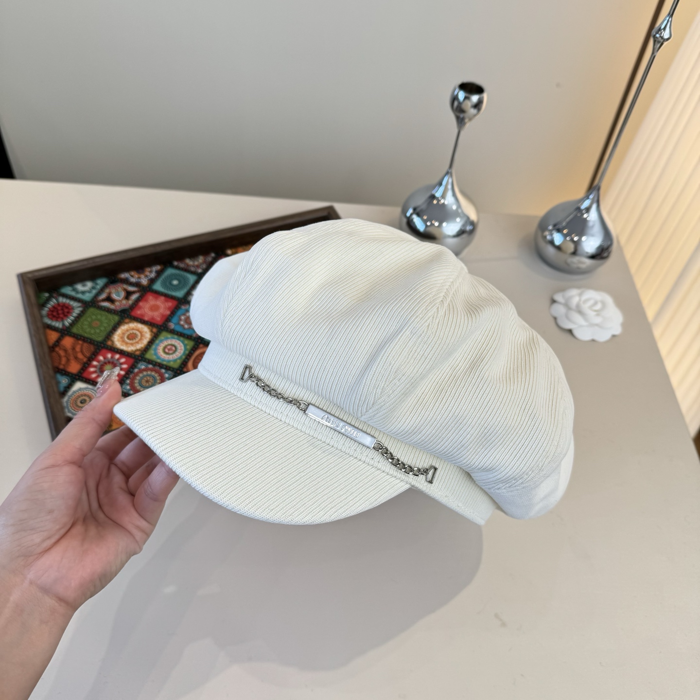 這款帽子是AAAAA 1:1 質量(非常棒). 使用了和原版一模一樣的材料. 商標部分也保持了和繆繆/Miu Miu一樣. 圖片拍攝是實物帽子拍攝, 您所收到的實物保證和我們圖片一模一樣.