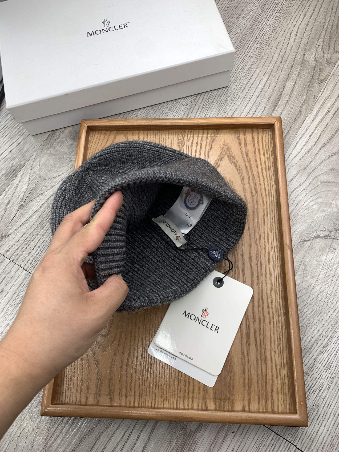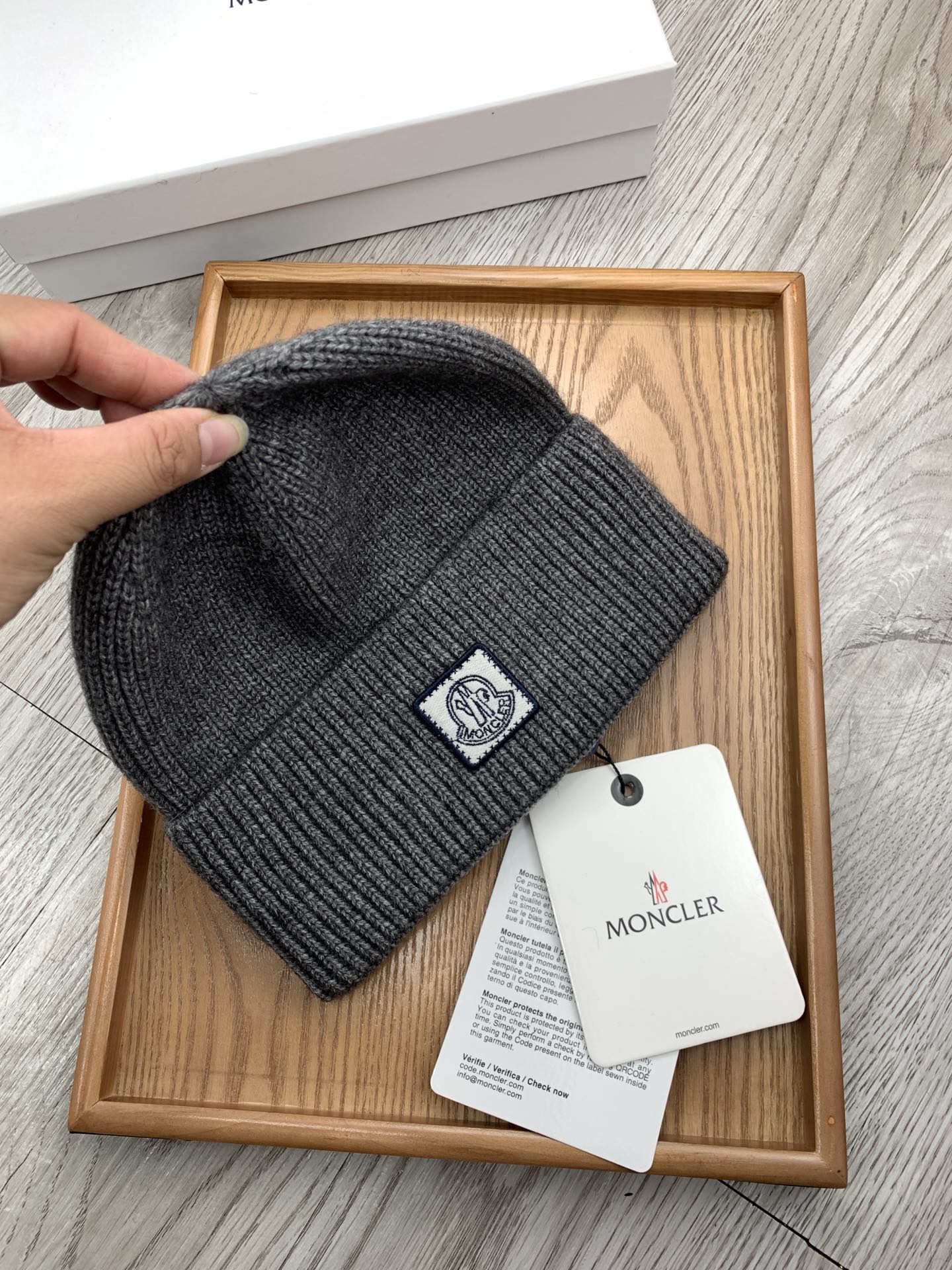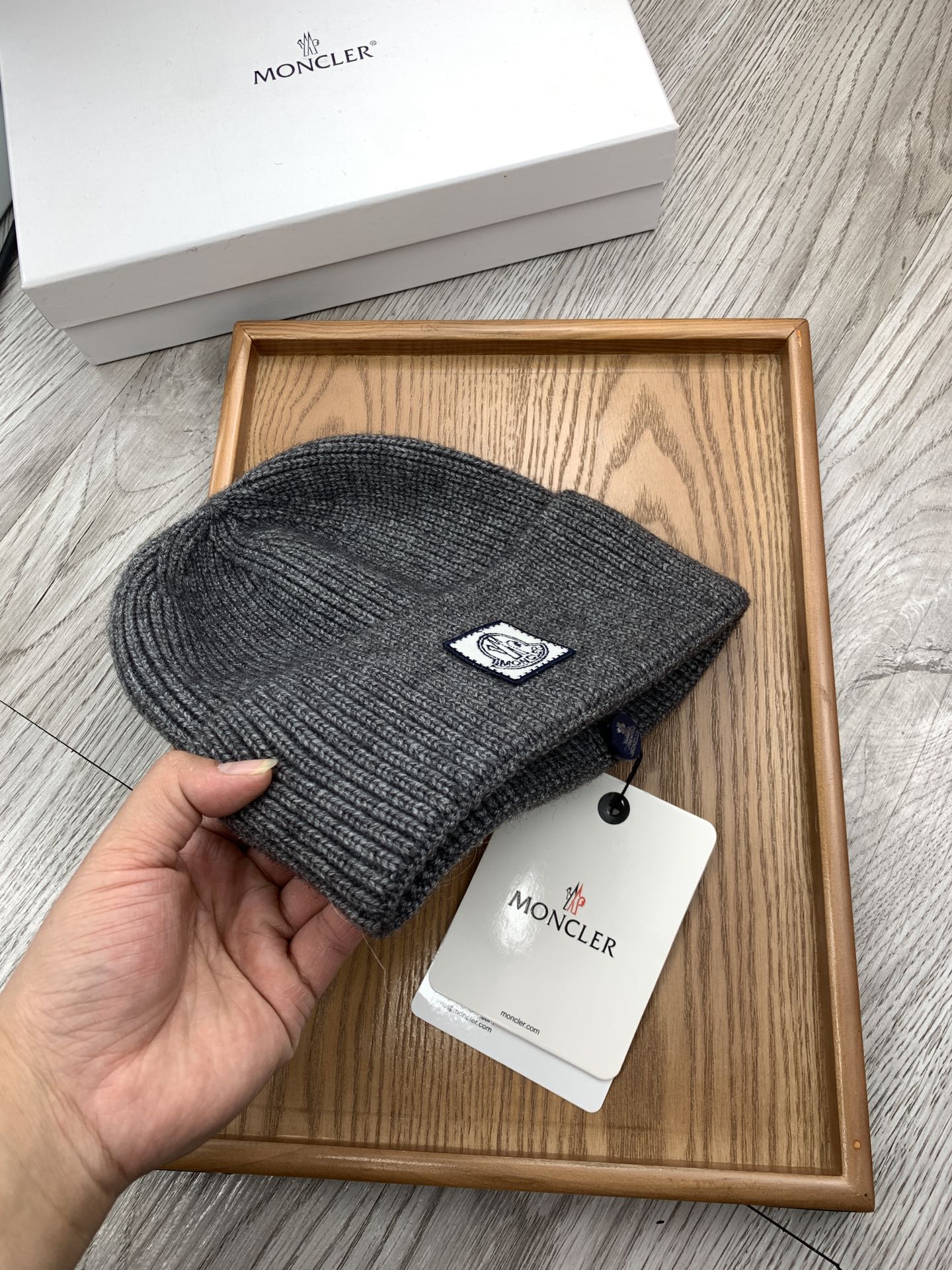 這款帽子是AAAAA 1:1 質量(非常棒). 使用了和原版一模一樣的材料. 商標部分也保持了和moncler一樣. 圖片拍攝是實物帽子拍攝, 您所收到的實物保證和我們圖片一模一樣.
