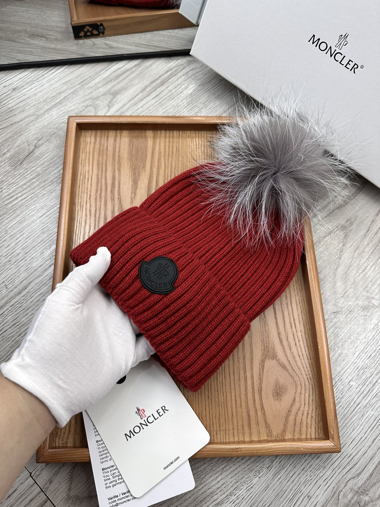 這款帽子是AAAAA 1:1 質量(非常棒). 使用了和原版一模一樣的材料. 商標部分也保持了和moncler一樣. 圖片拍攝是實物帽子拍攝, 您所收到的實物保證和我們圖片一模一樣.