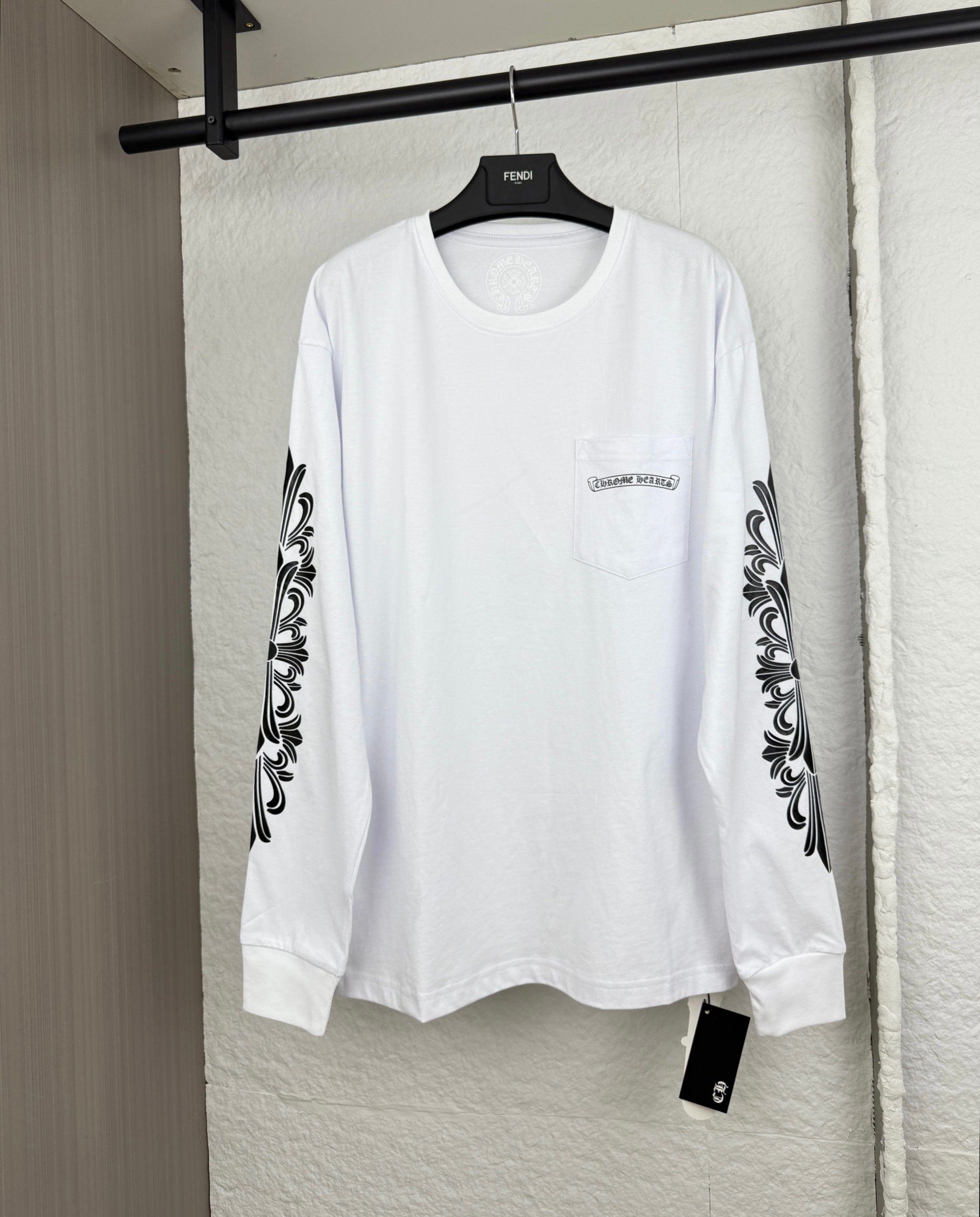 這款衣服是AAAAA 1:1 質量(非常棒). 使用了和原版一模一樣的材料. 商標部分也保持了和鉻心/Chrome Hearts一樣. 圖片拍攝是實物衣服拍攝, 您所收到的實物保證和我們圖片一模一樣.