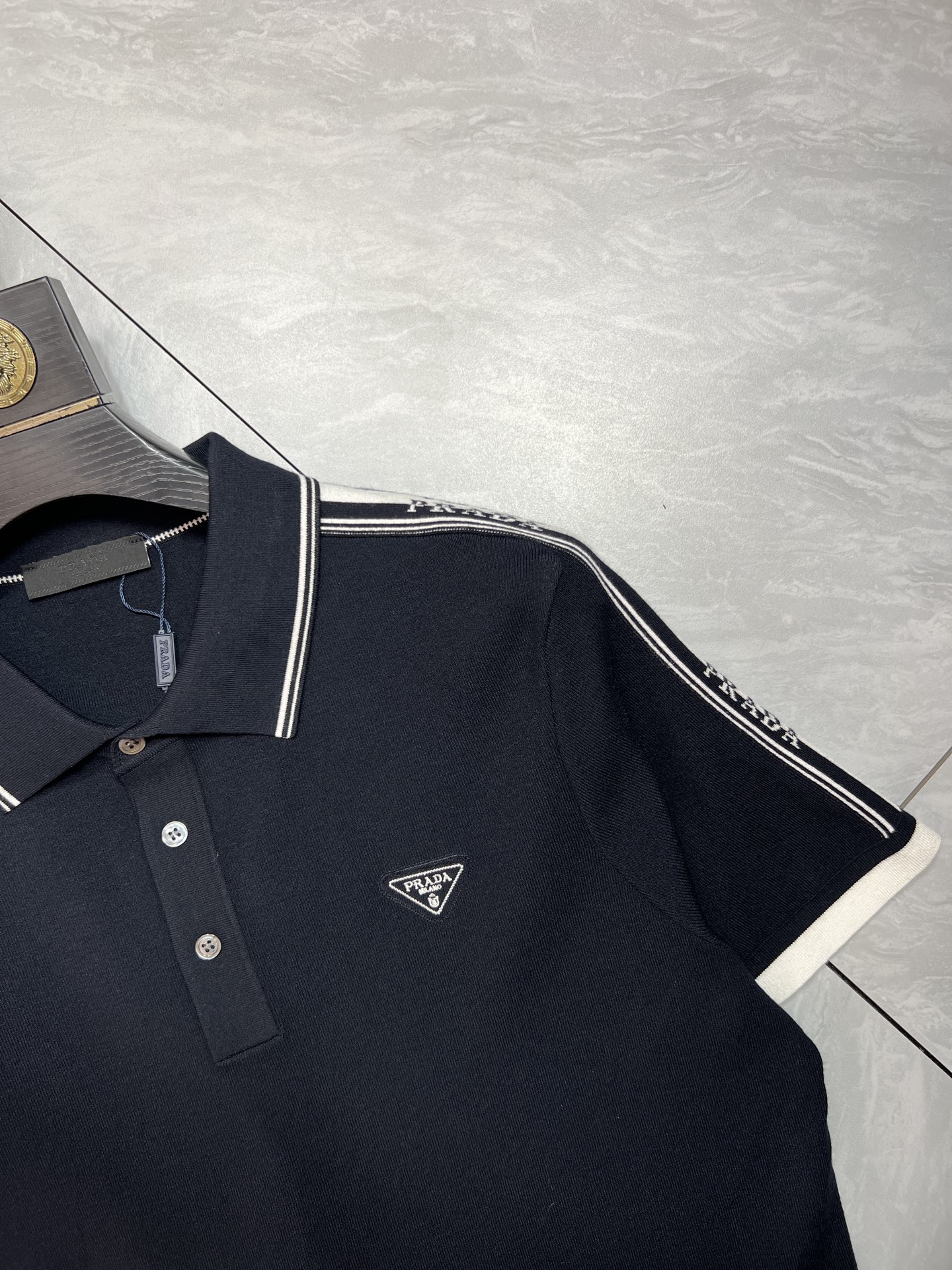 這款衣服是AAAAA 1:1 質量(非常棒). 使用了和原版一模一樣的材料. 商標部分也保持了和普拉達/Prada一樣. 圖片拍攝是實物衣服拍攝, 您所收到的實物保證和我們圖片一模一樣.