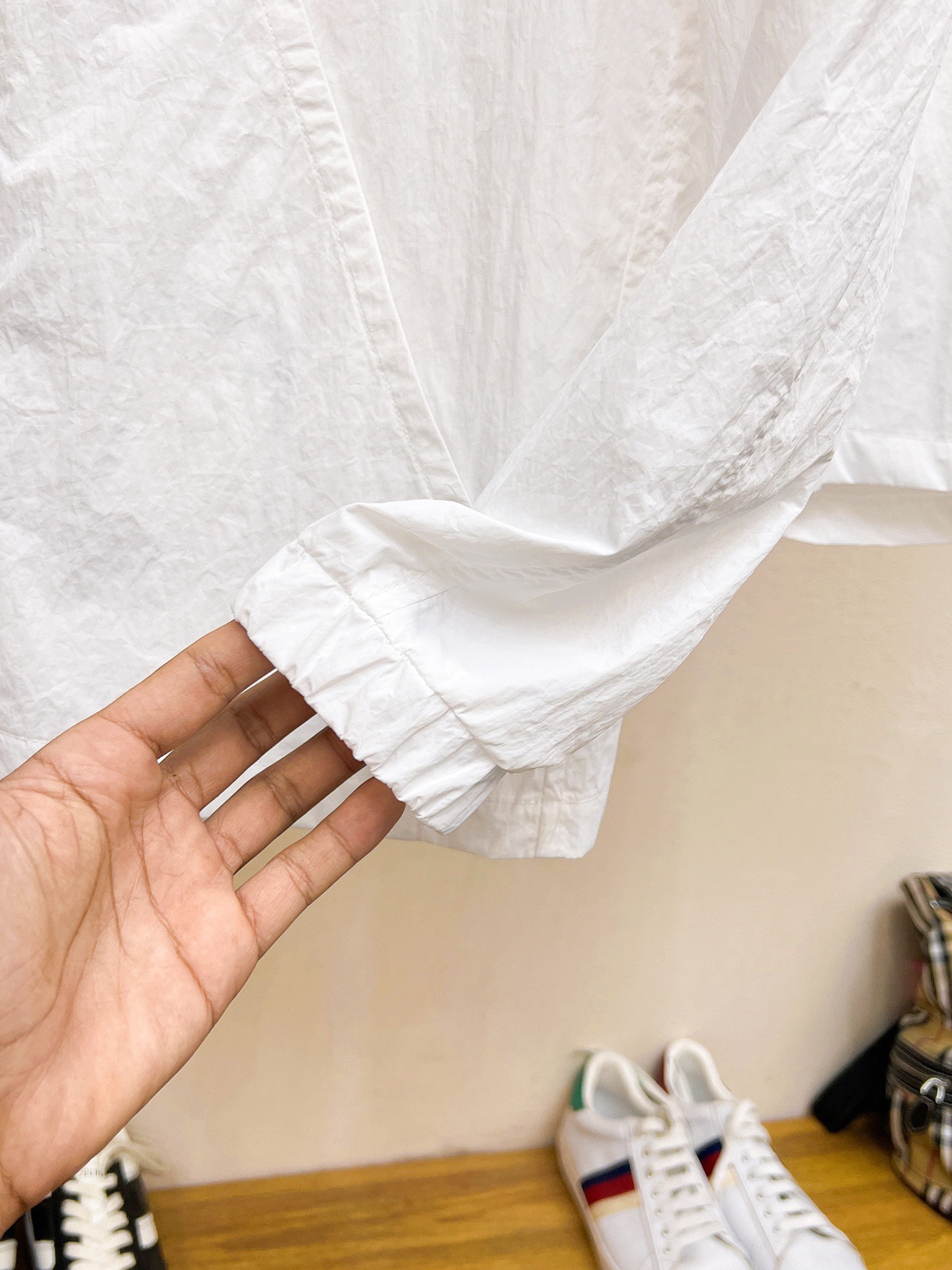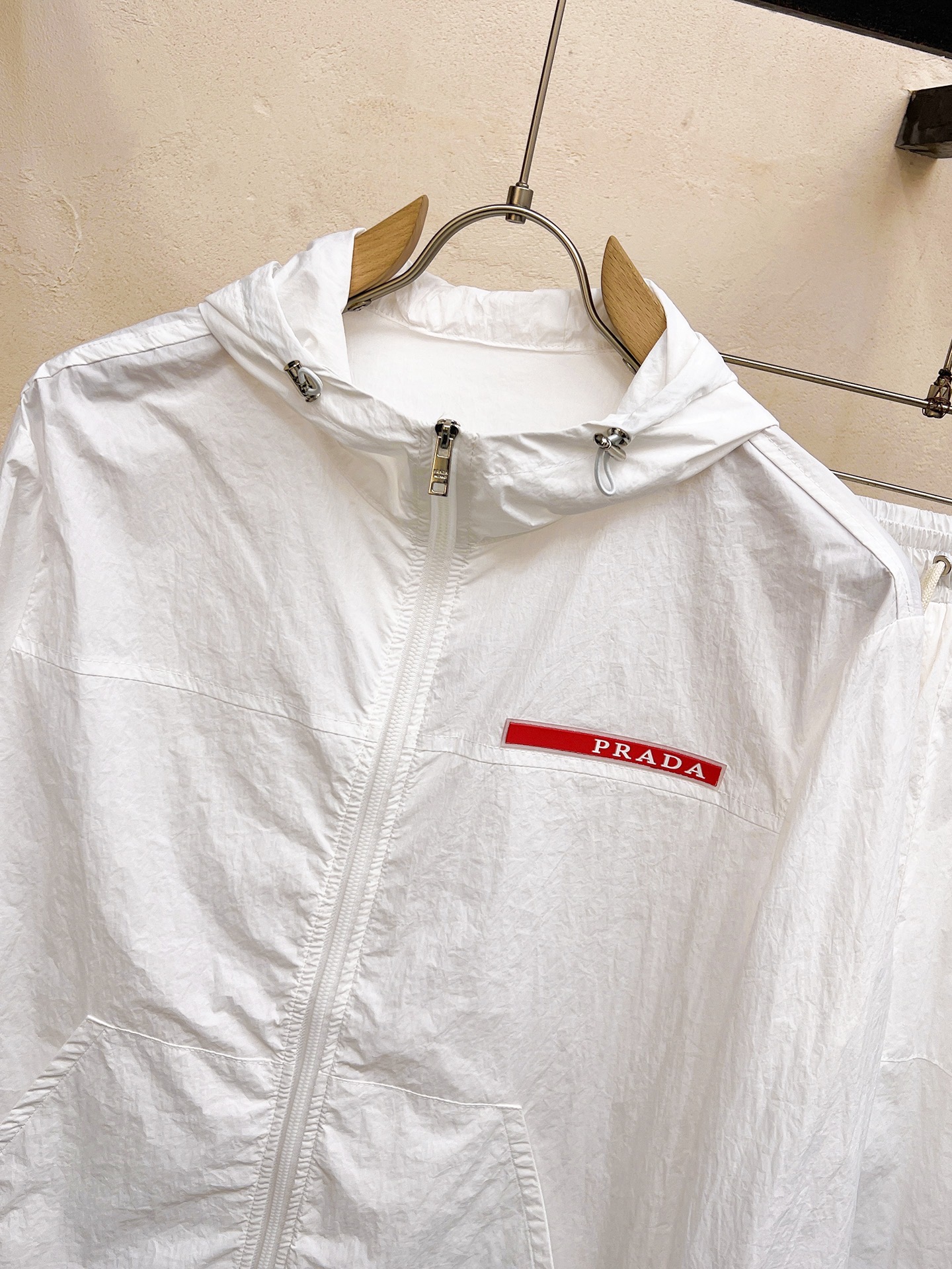 這款衣服是AAAAA 1:1 質量(非常棒). 使用了和原版一模一樣的材料. 商標部分也保持了和普拉達/Prada一樣. 圖片拍攝是實物衣服拍攝, 您所收到的實物保證和我們圖片一模一樣.