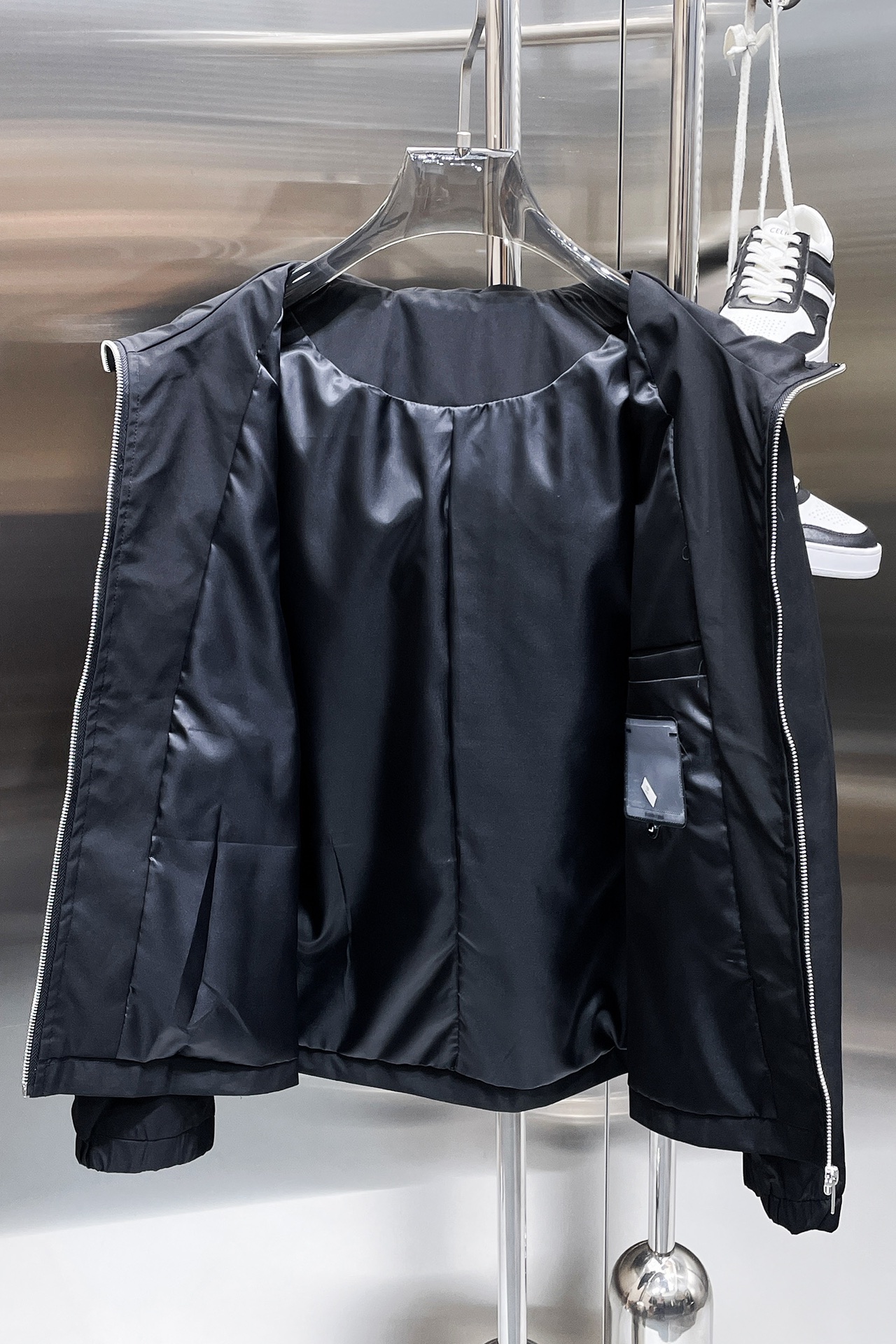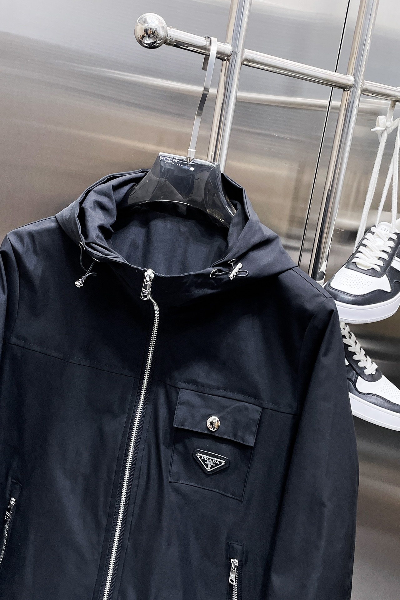 這款衣服是AAAAA 1:1 質量(非常棒). 使用了和原版一模一樣的材料. 商標部分也保持了和普拉達/Prada一樣. 圖片拍攝是實物衣服拍攝, 您所收到的實物保證和我們圖片一模一樣.