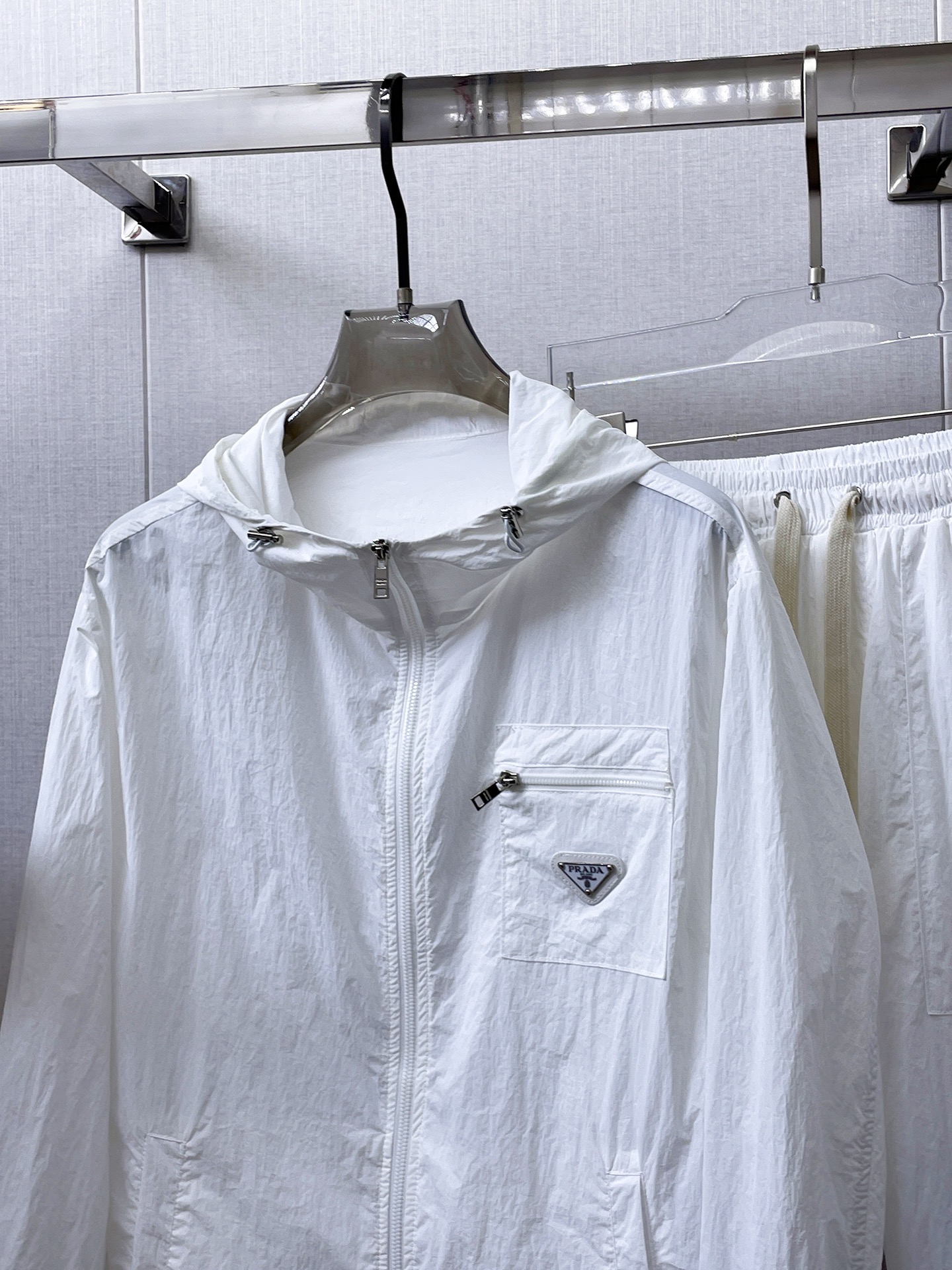 這款衣服是AAAAA 1:1 質量(非常棒). 使用了和原版一模一樣的材料. 商標部分也保持了和普拉達/Prada一樣. 圖片拍攝是實物衣服拍攝, 您所收到的實物保證和我們圖片一模一樣.