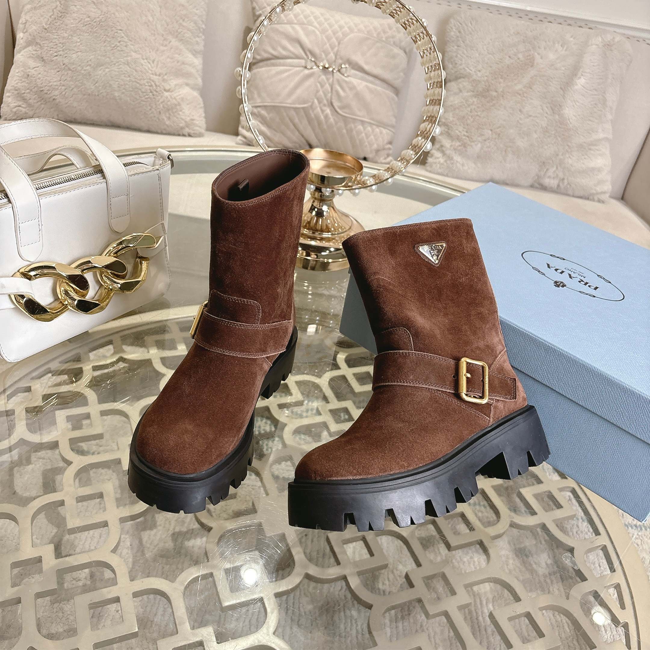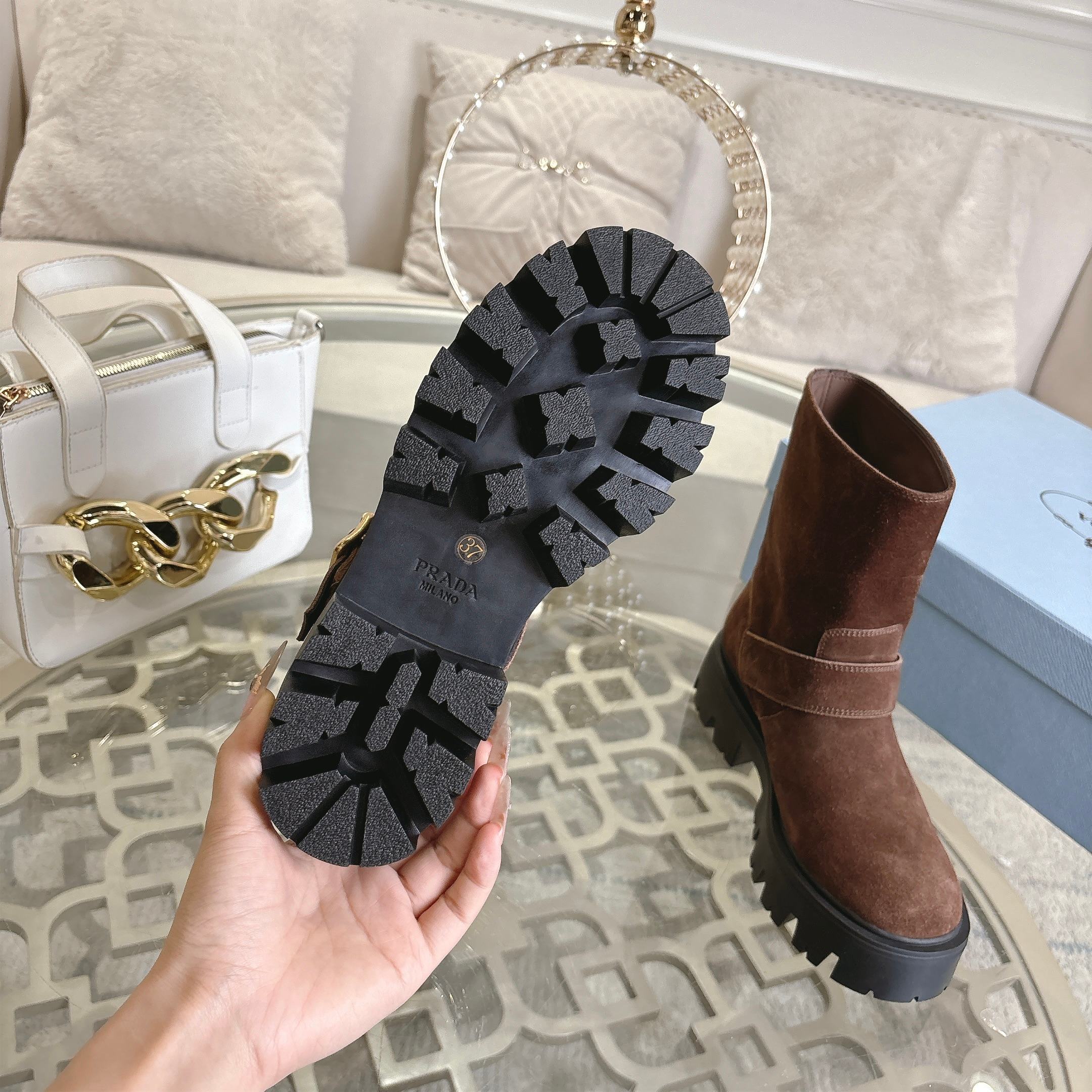 這款鞋子是AAAAA 1:1 質量(非常棒). 使用了和原版一模一樣的材料. 商標部分也保持了和普拉達/Prada一樣. 圖片拍攝是實物鞋子拍攝, 您所收到的實物保證和我們圖片一模一樣.