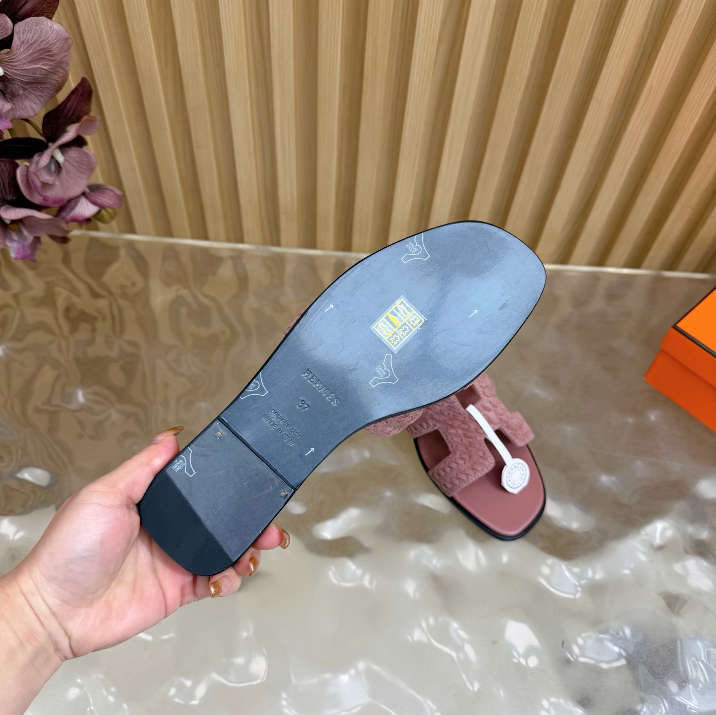 這款鞋子是AAAAA 1:1 質量(非常棒). 使用了和原版一模一樣的材料. 商標部分也保持了和愛馬仕/Hermes一樣. 圖片拍攝是實物鞋子拍攝, 您所收到的實物保證和我們圖片一模一樣.