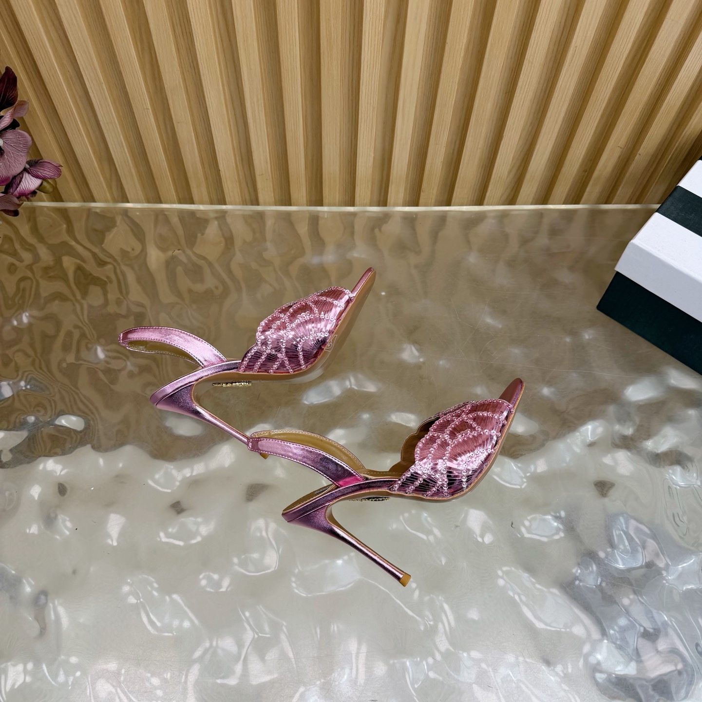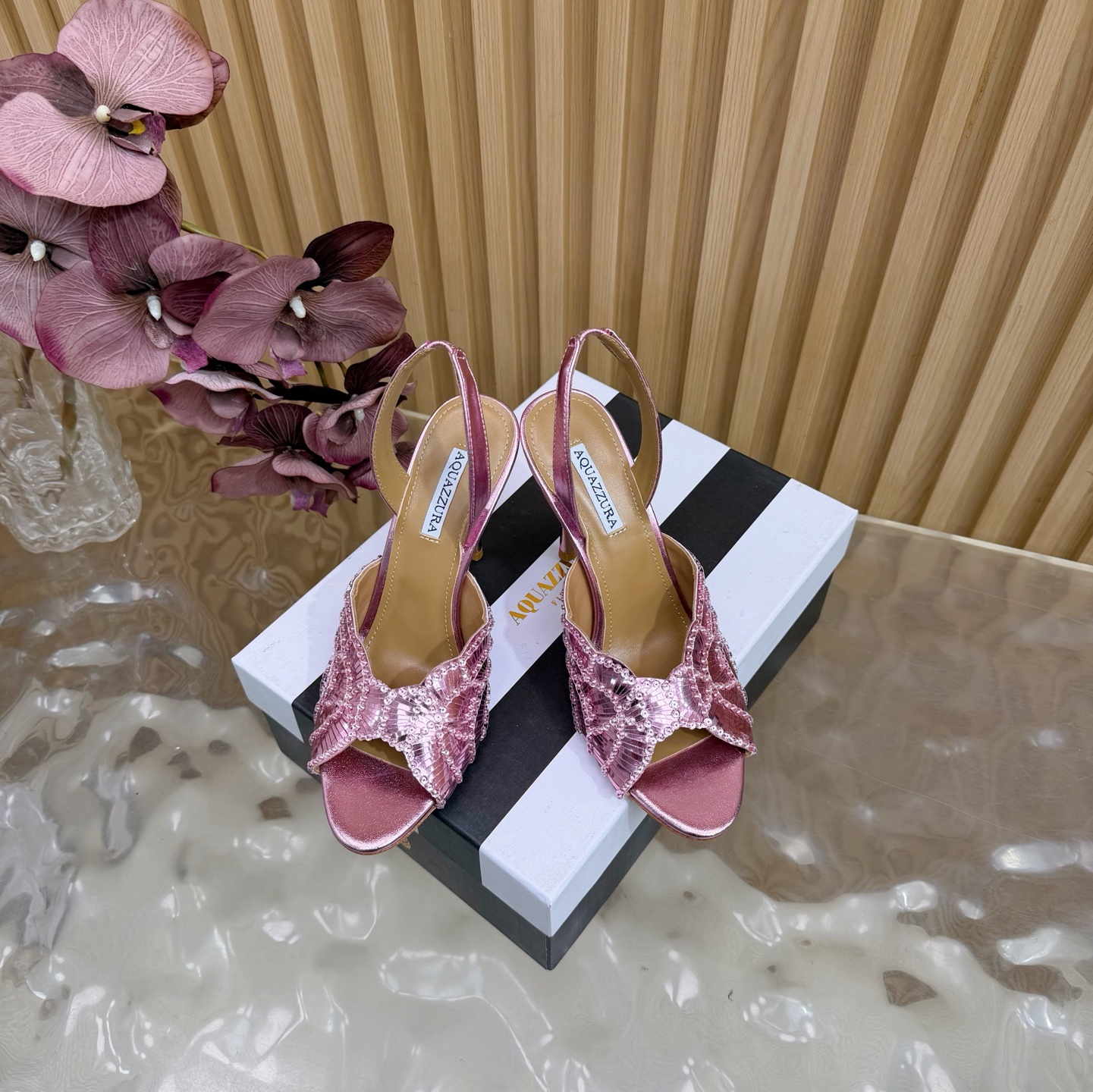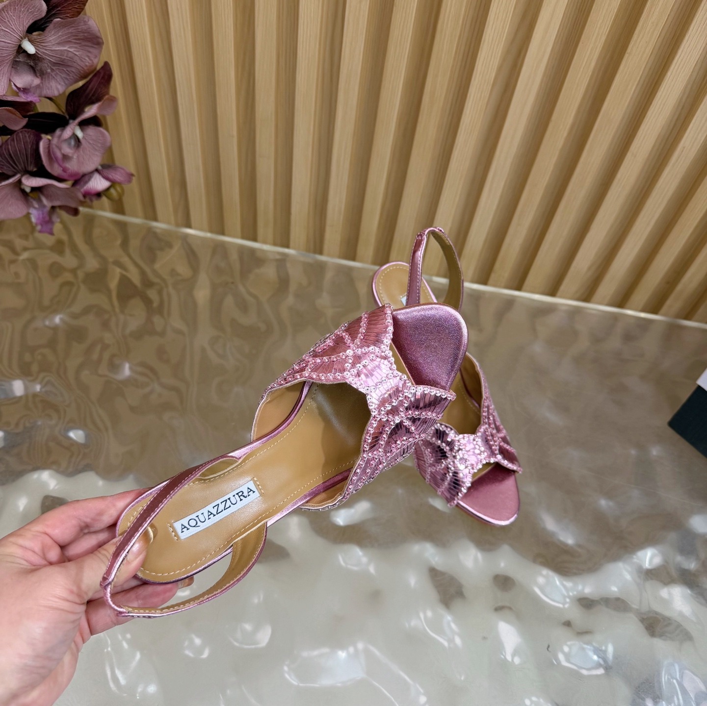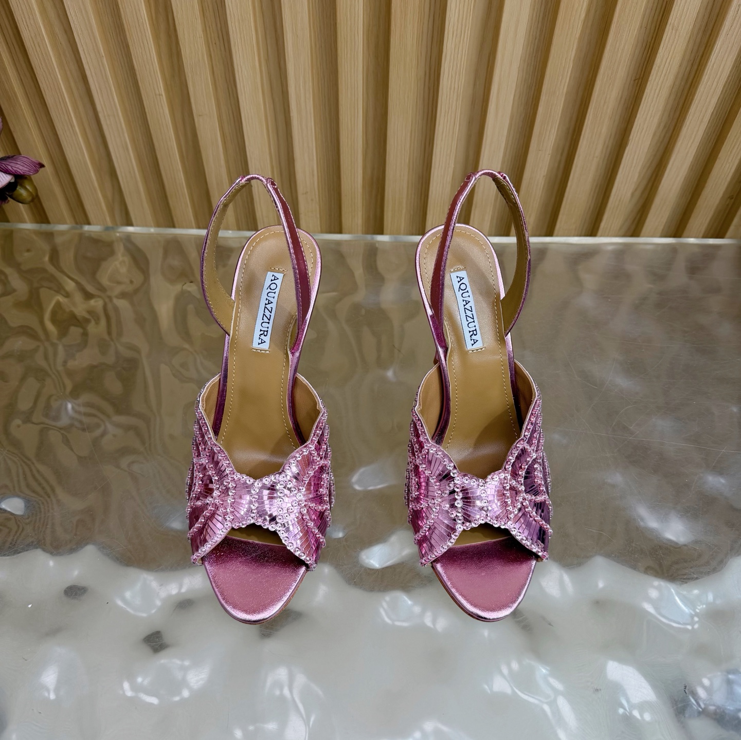 這款鞋子是AAAAA 1:1 質量(非常棒). 使用了和原版一模一樣的材料. 商標部分也保持了和Aquazzura一樣. 圖片拍攝是實物鞋子拍攝, 您所收到的實物保證和我們圖片一模一樣.