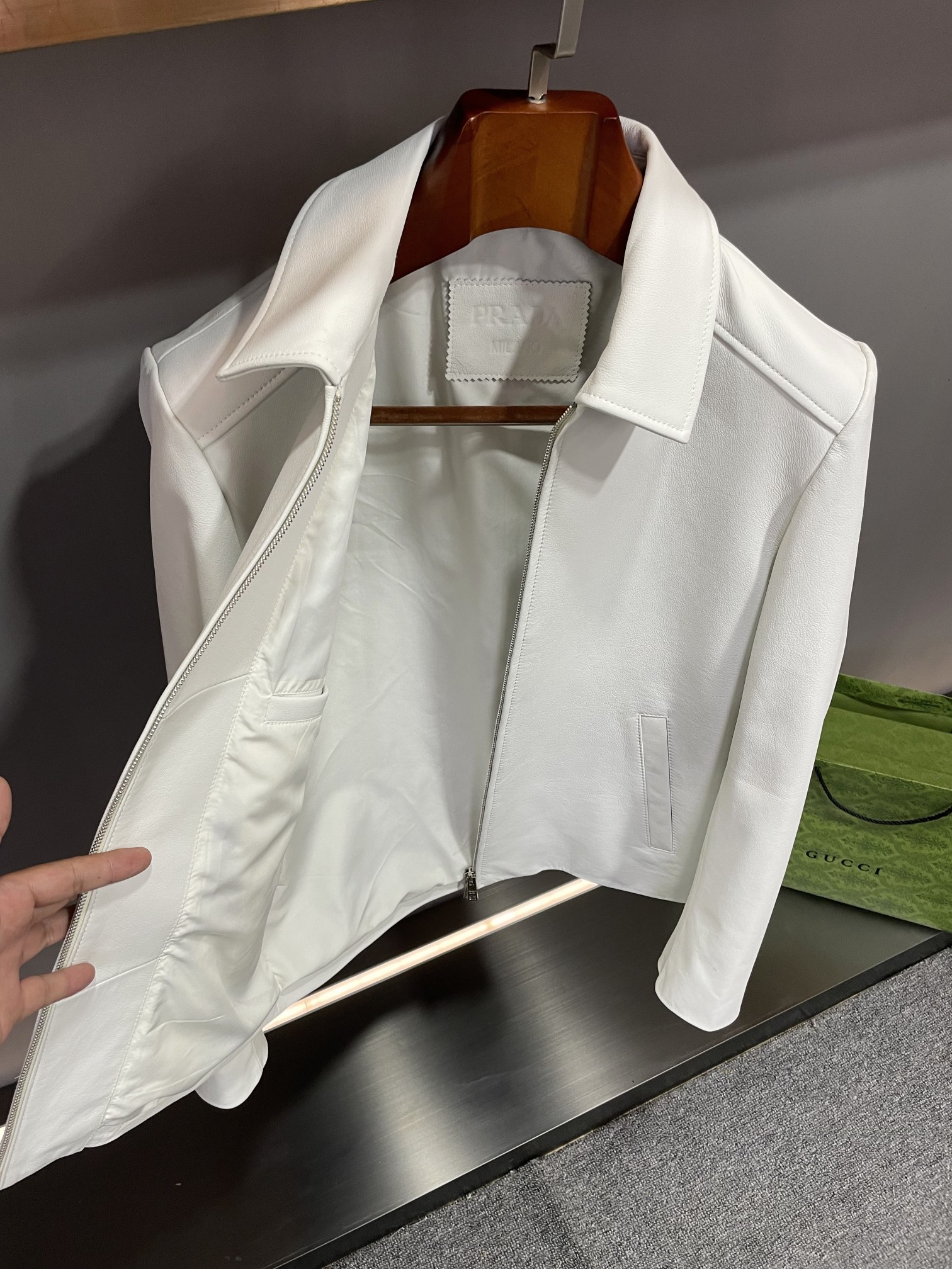 這款衣服是AAAAA 1:1 質量(非常棒). 使用了和原版一模一樣的材料. 商標部分也保持了和普拉達/Prada一樣. 圖片拍攝是實物衣服拍攝, 您所收到的實物保證和我們圖片一模一樣.