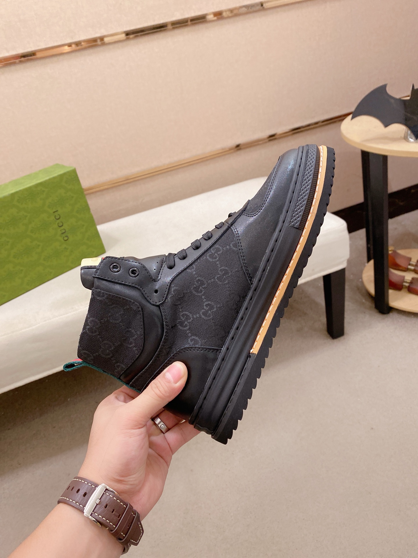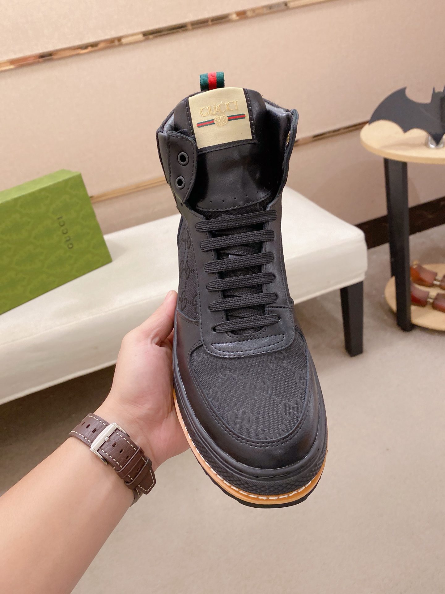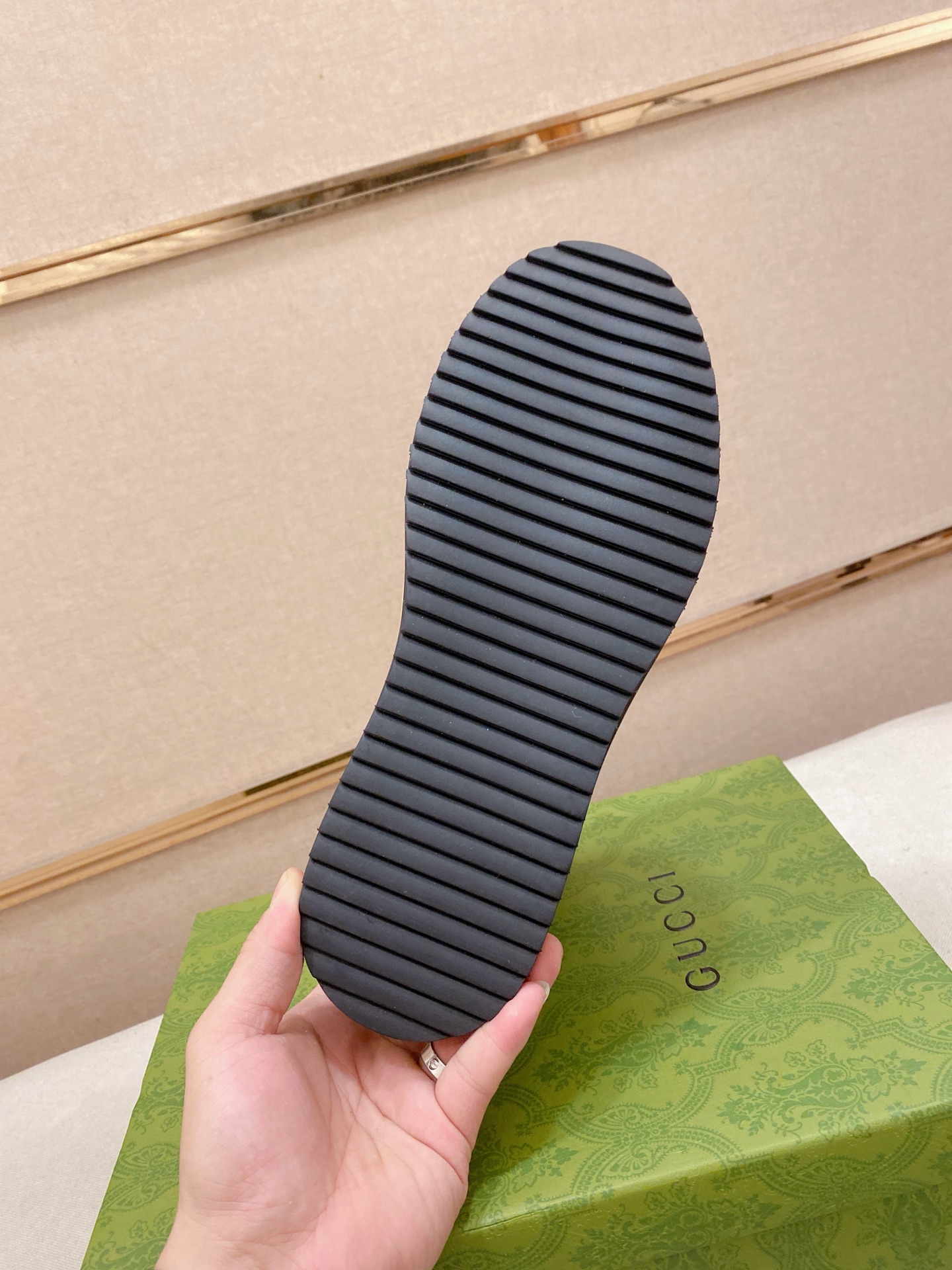 這款鞋子是AAAAA 1:1 質量(非常棒). 使用了和原版一模一樣的材料. 商標部分也保持了和古奇/Gucci一樣. 圖片拍攝是實物鞋子拍攝, 您所收到的實物保證和我們圖片一模一樣.